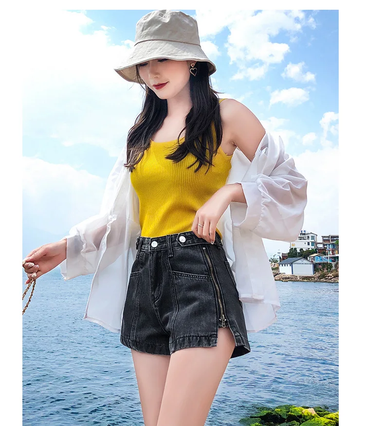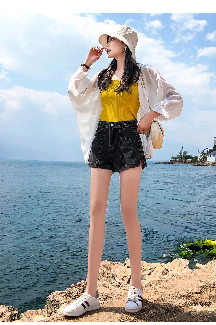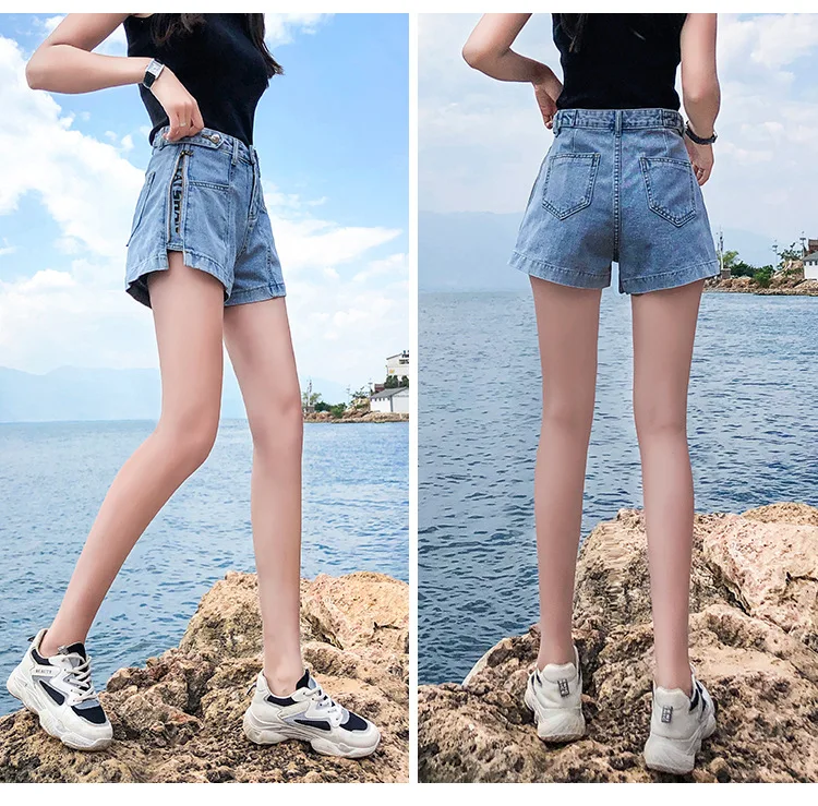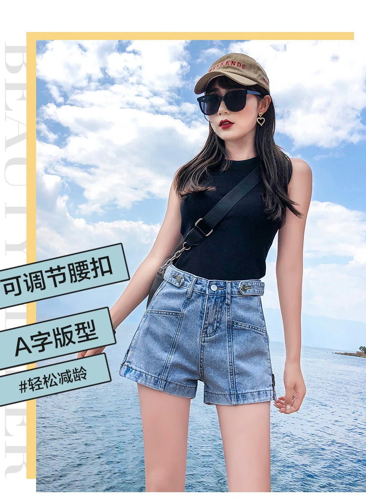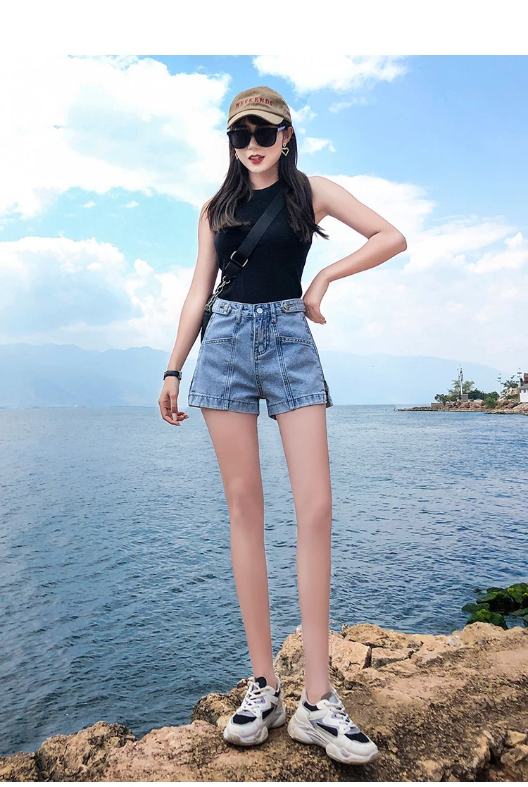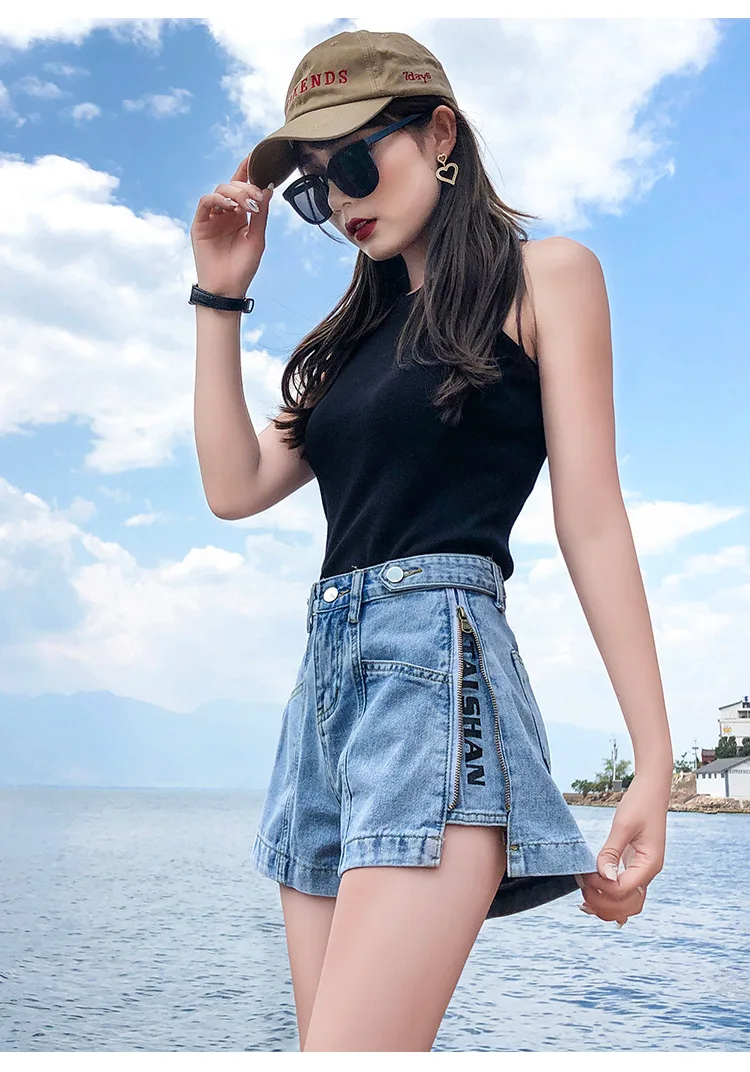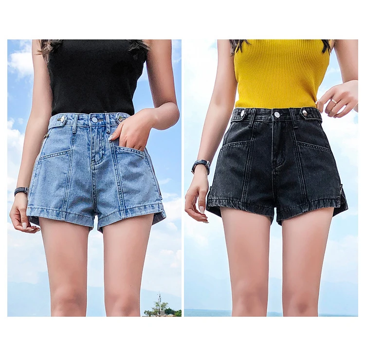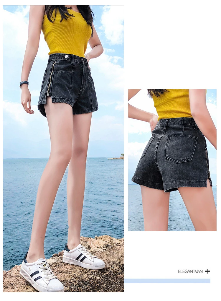 S-5XL Women’s Denim Shorts Fashion Vintage High Waist Blue Wide Leg Female Side Zipper Caual Summer Ladies Shorts Jeans