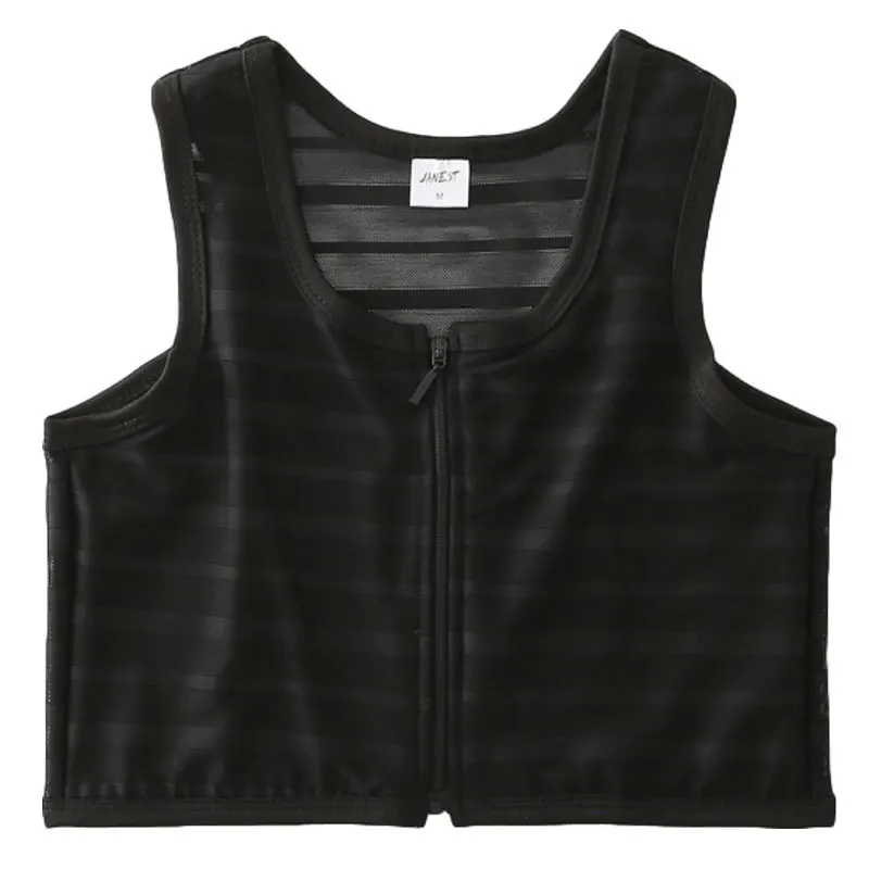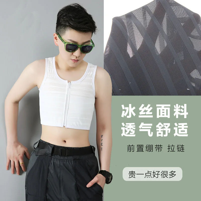 Fabric with ice silk ,comfortable and breathable.Front bandage,enhance flat chest effect, zipper closured ,easy to wear .