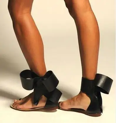 Sandalia feminina summer gladiator flat sandals big bow ankle strap low heels open toe black red party luxury shoes woman 2022