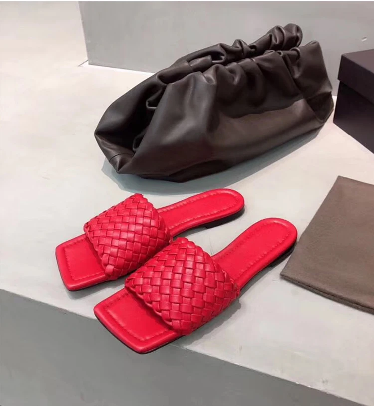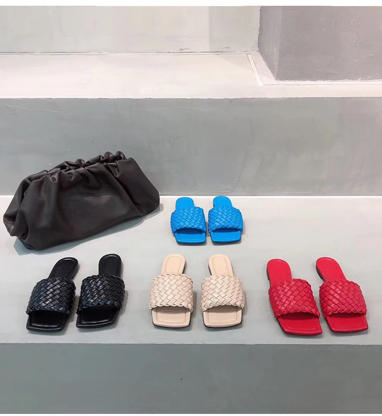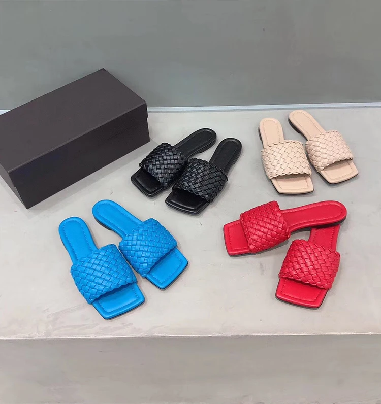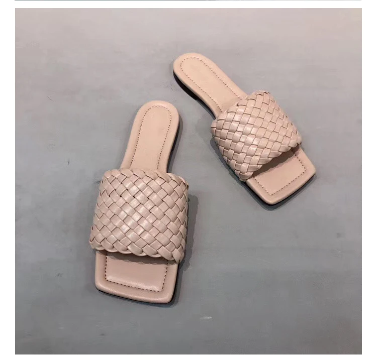 Sandalias Mujer 2021 Outdoor Women Flats kitten Retro Beach Slides Weave Luxury Shoes Women Summer Casual Ladies Shoes