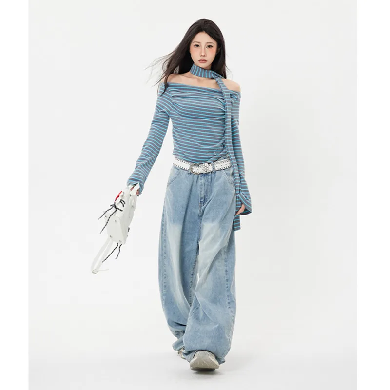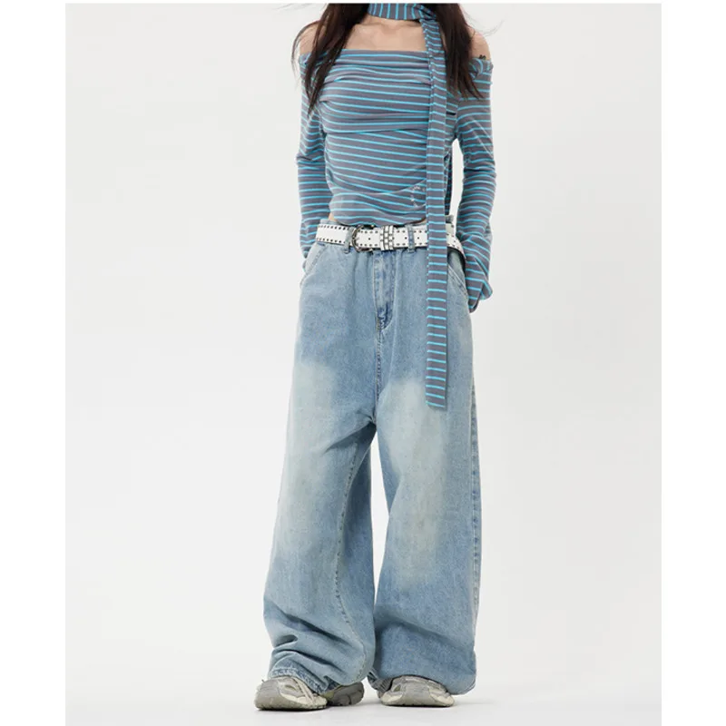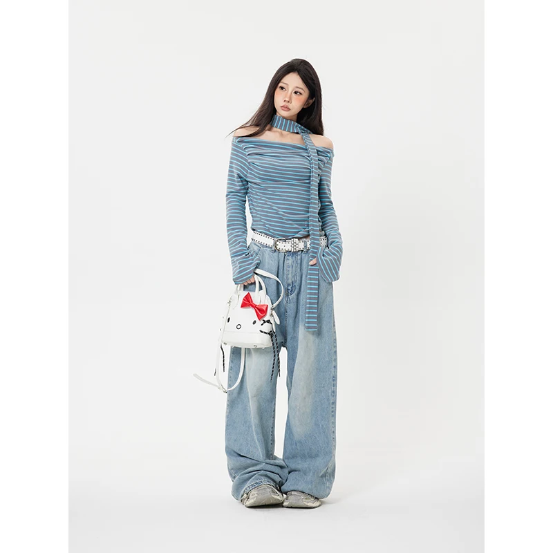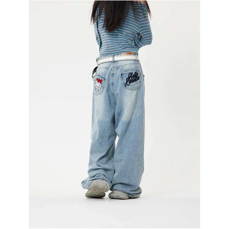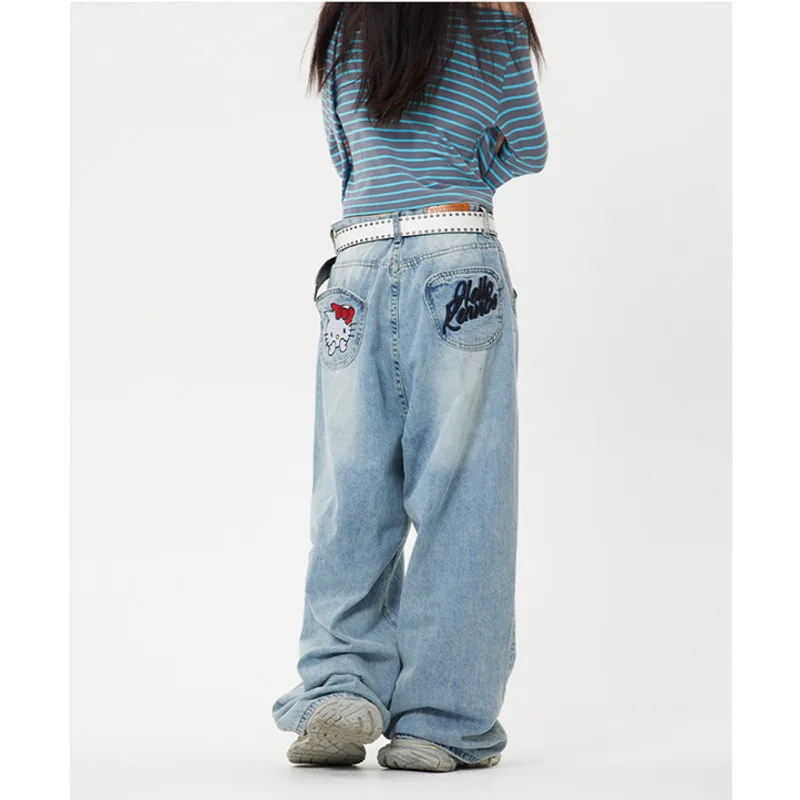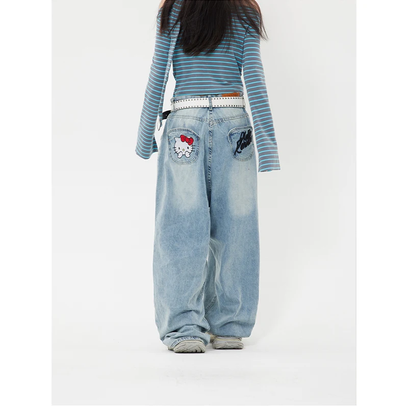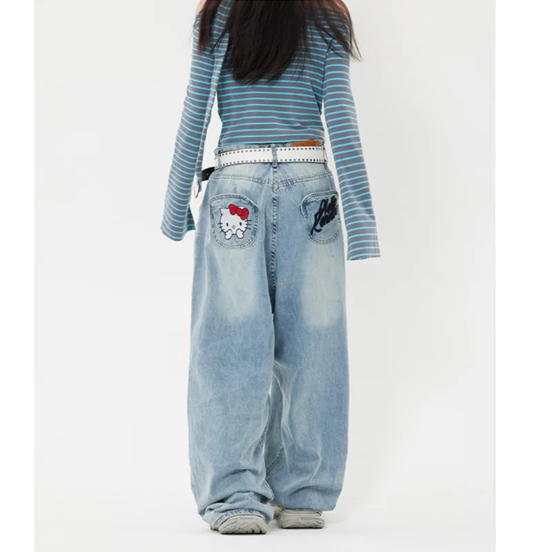 Sanrio Hello Kitty Y2k Baggy Jeans High Waist Wide Leg Pants Women American Street Retro Femme Hello Kitty Stuff Y2k Clothes
