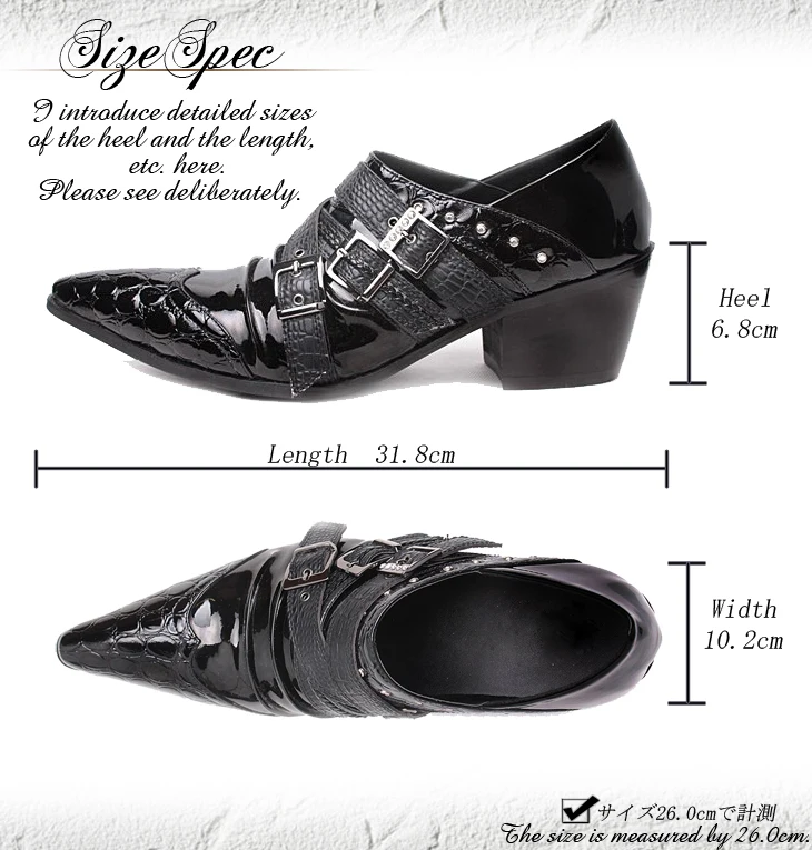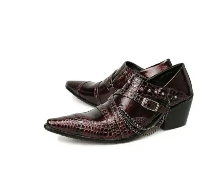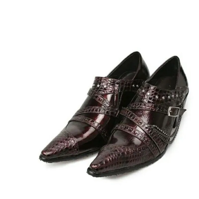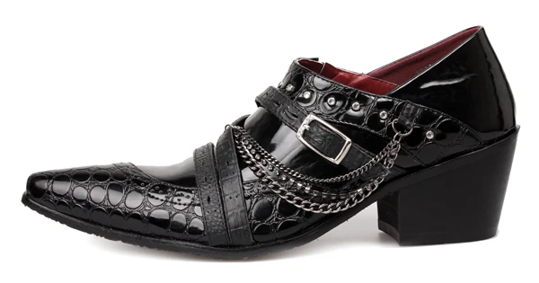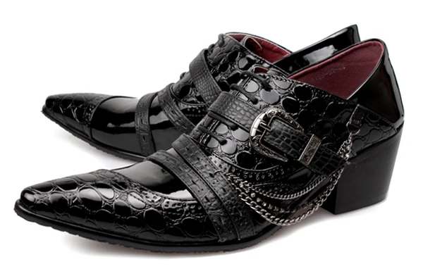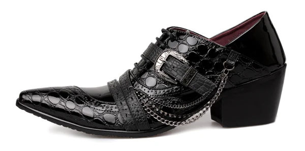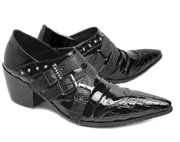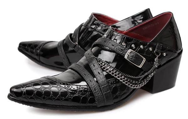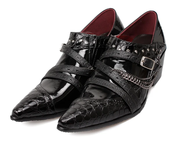 Sapato social hidden high heel shoes for men black spiked loafers oxford genuine leather crocodile buckle strap shoes male