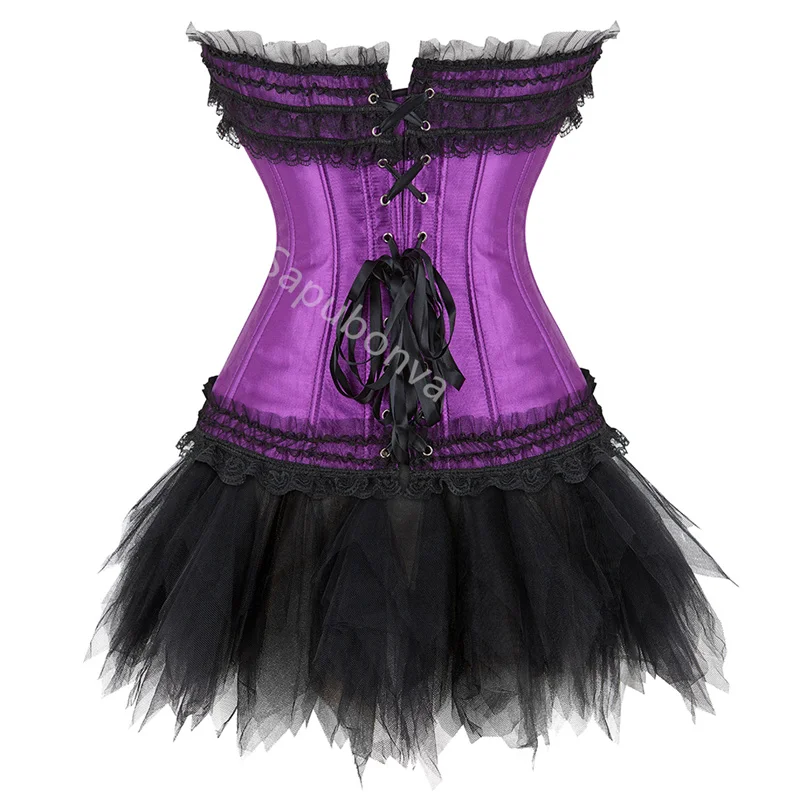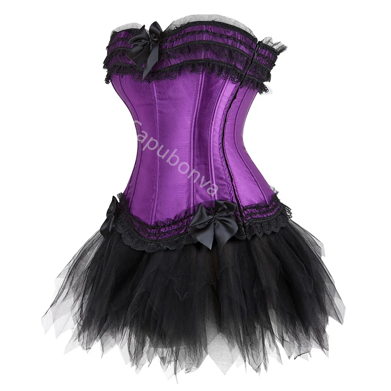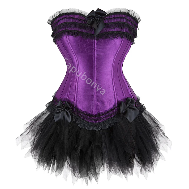 victorian corset dress gothic sexy burlesque exotic tutu skirt corset party long corset overbust bustier black purple plus size 6xl