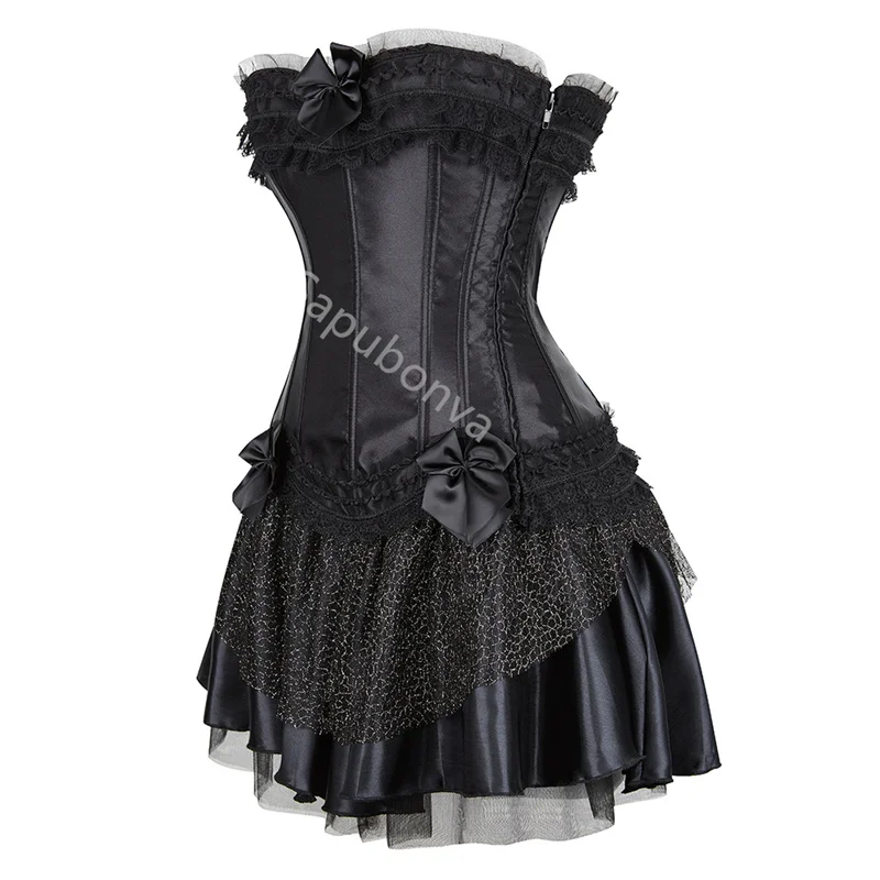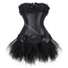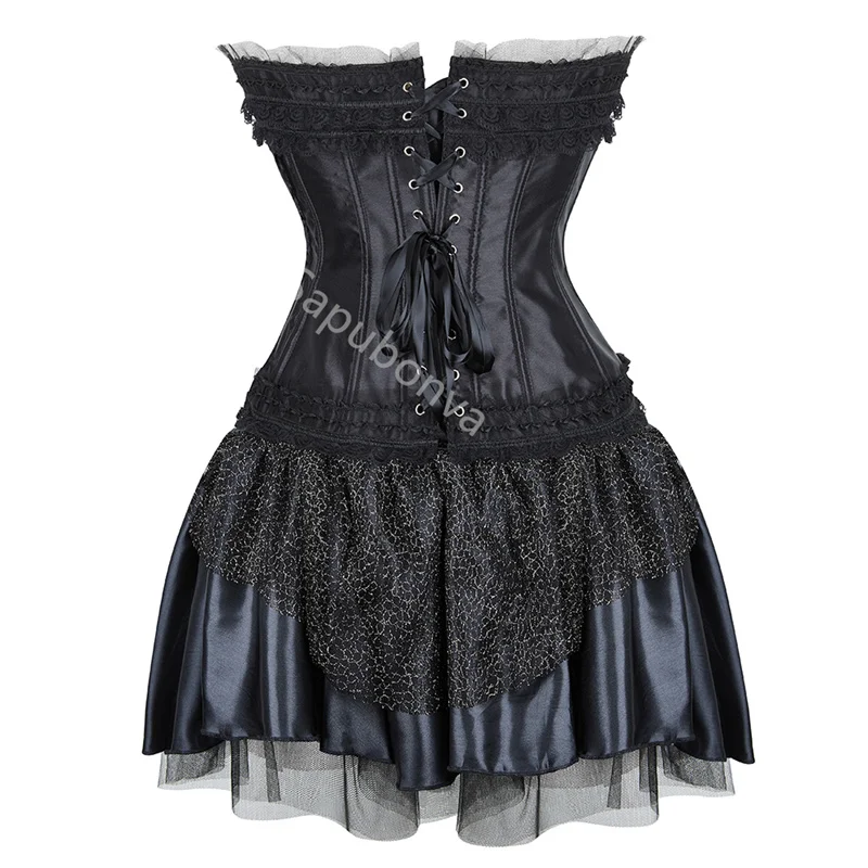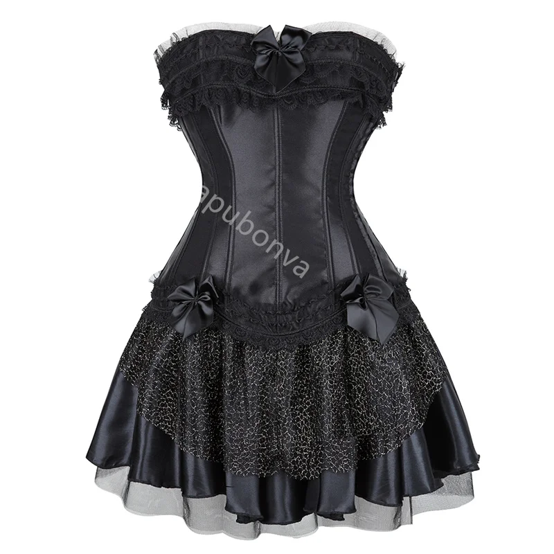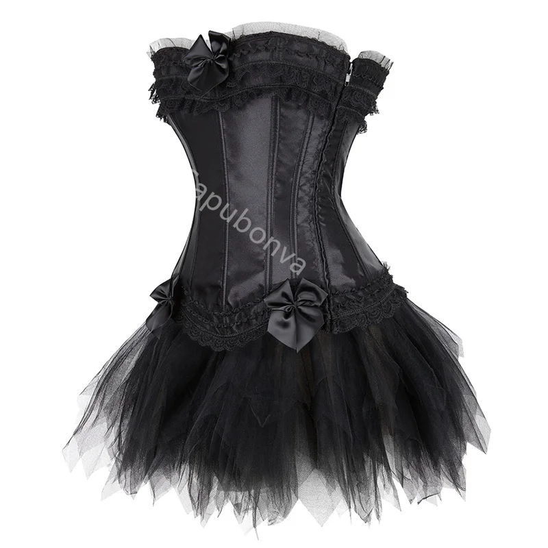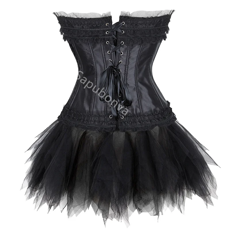 Sapubonva Black Corset Dress Plus Size Sexy Overbust Bustier Tutu Skirt Victorian Burlesque Gothic Exotic Lingerie Halloween
