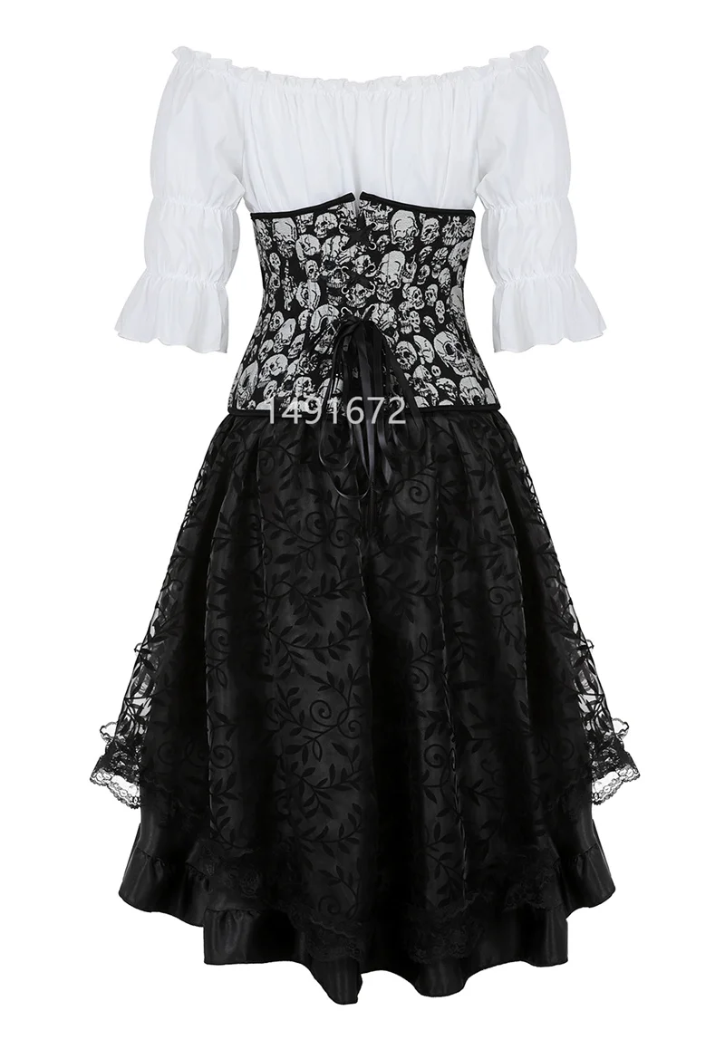 Sapubonva Corset Dress BustierTop and Skirt Set Tutu 3 Pcs Corselet Victorian Women Sexy Retro Plus Size Costume Burlesque Black