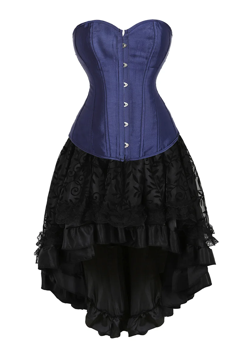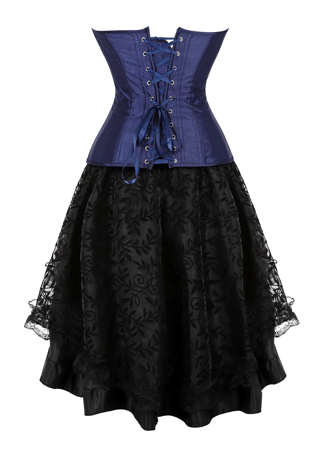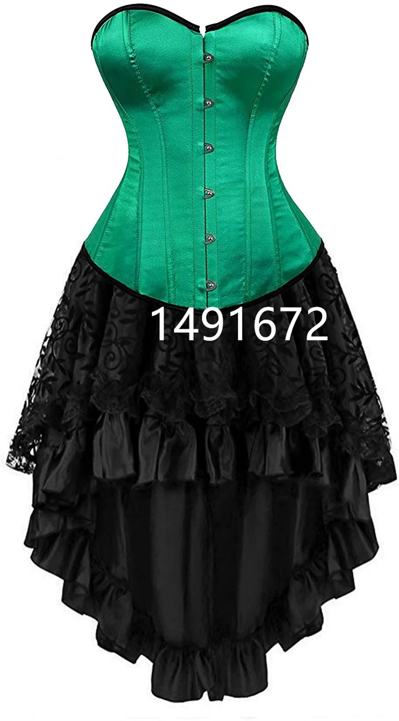 Sapubonva Corset Dress for Women Sexy Plus Size Costume Overbust Burlesque Corset Top and Skirt Set Tutu Corselet Victorian