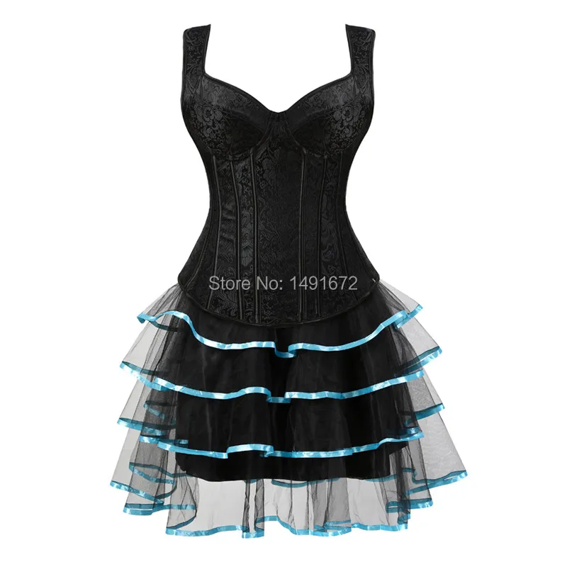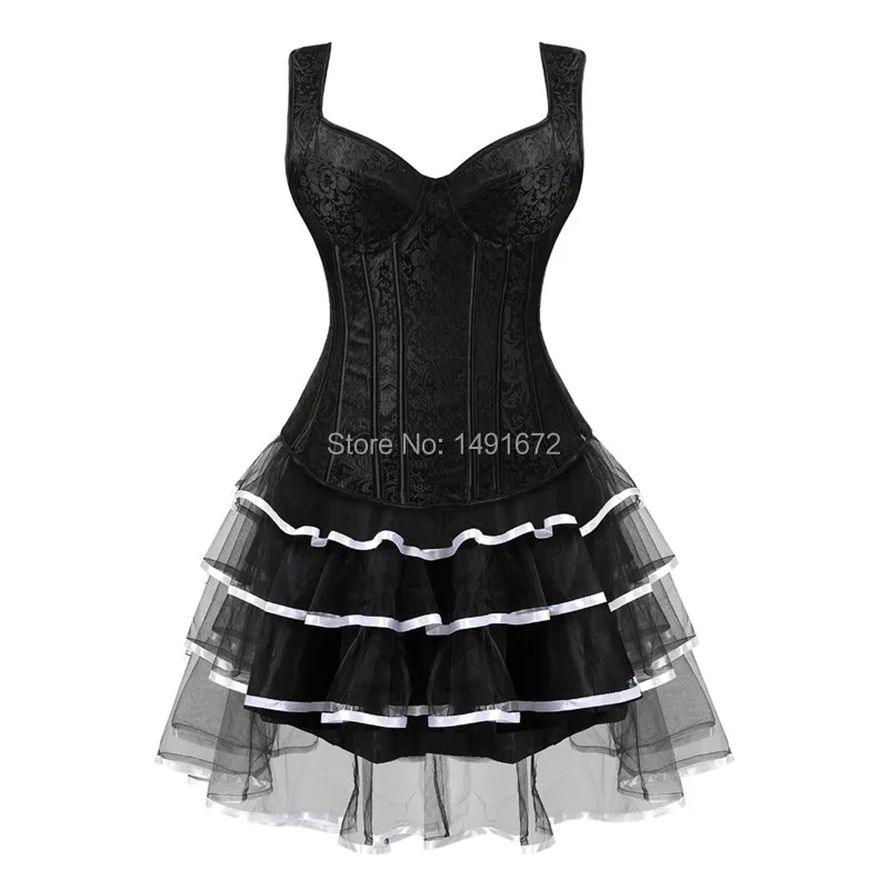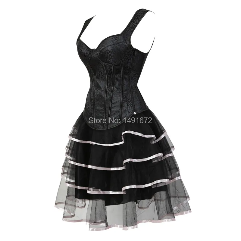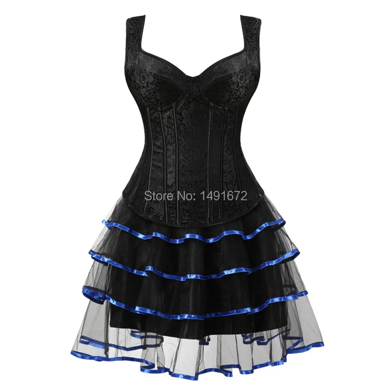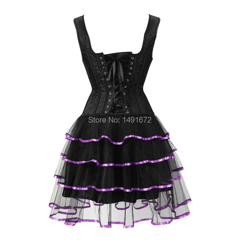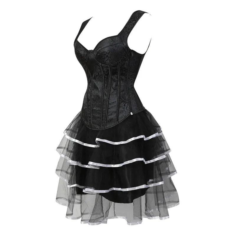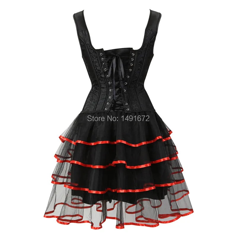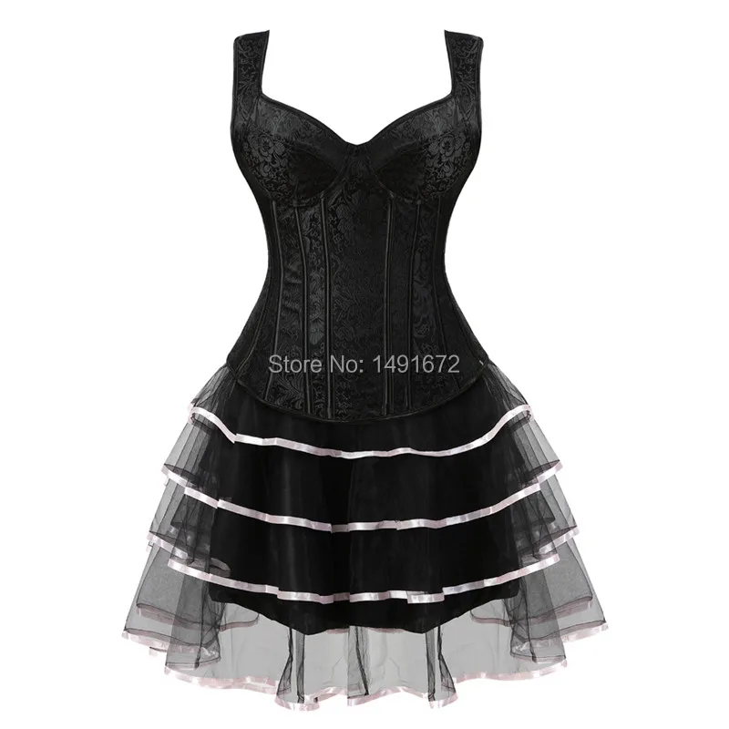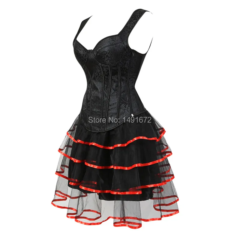 Sapubonva corset dresses sexy plus size gothic brocade tutu skrits overbust corset bustier with straps zip costume gowns vintage