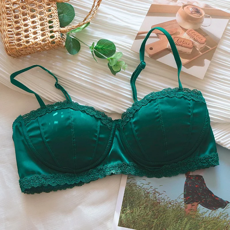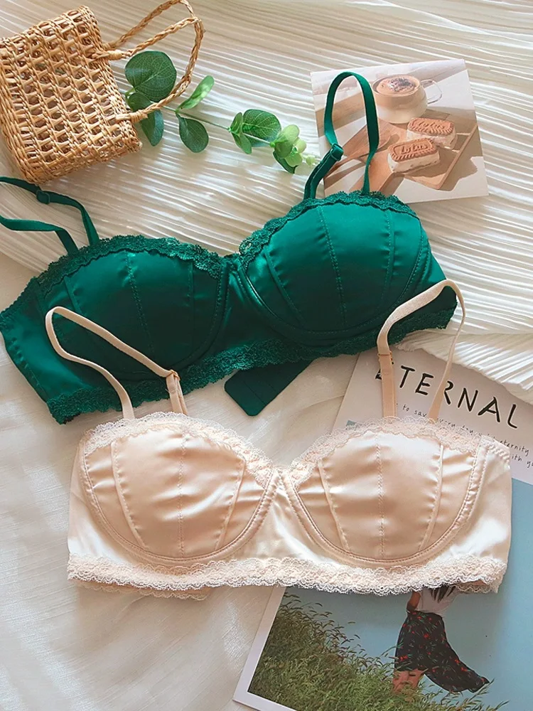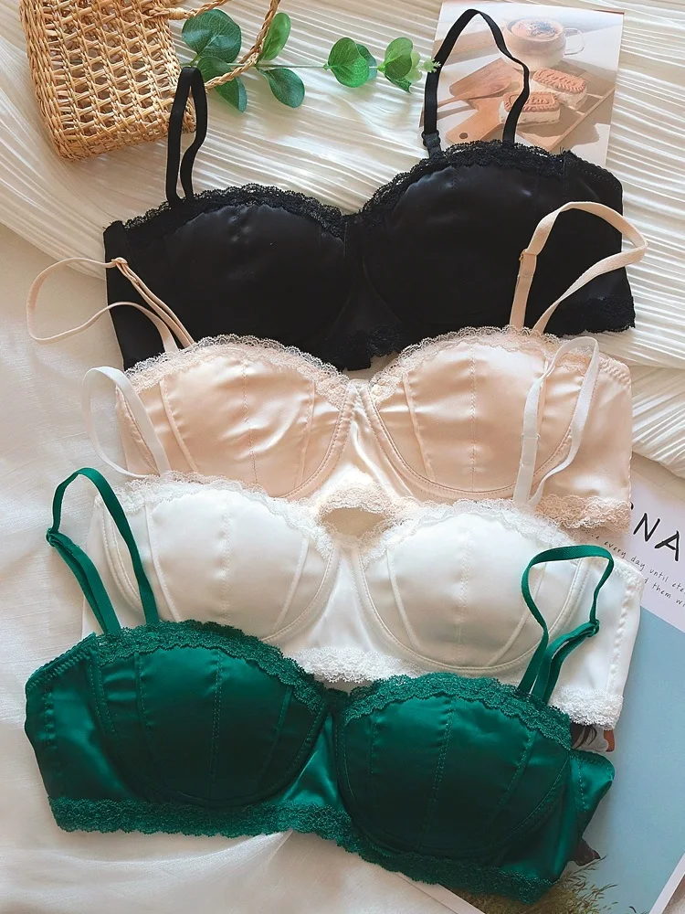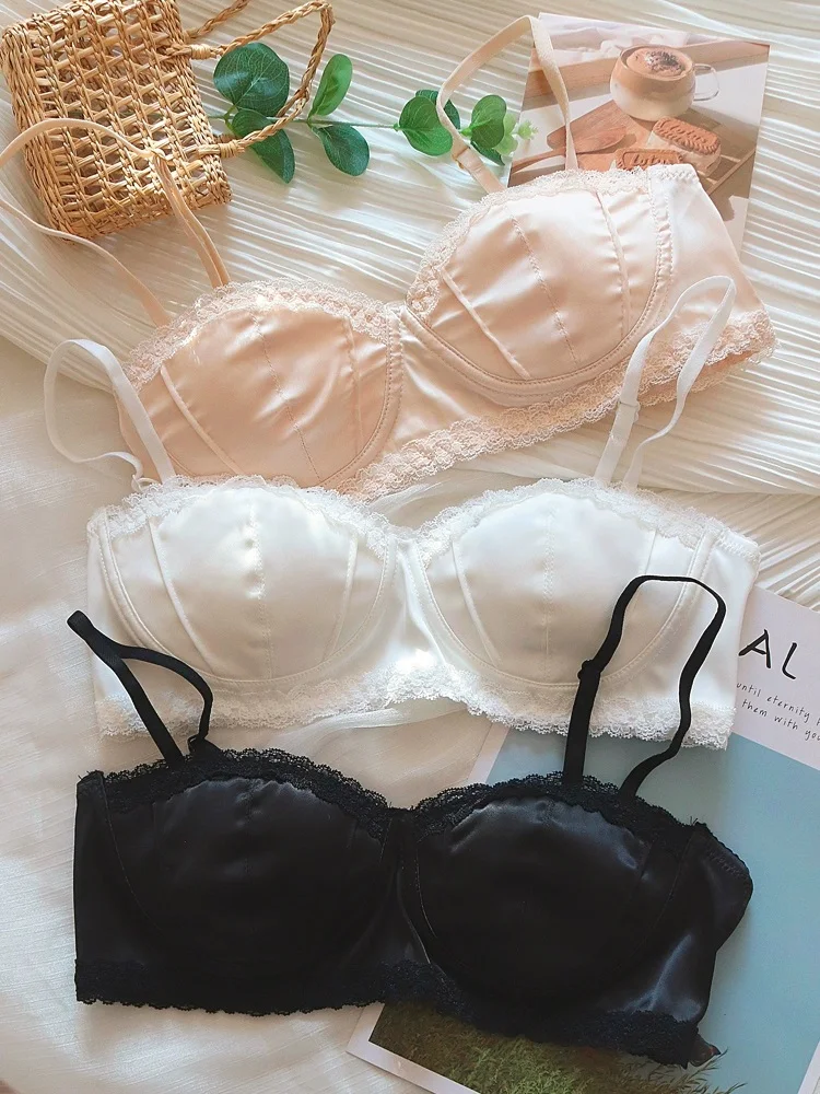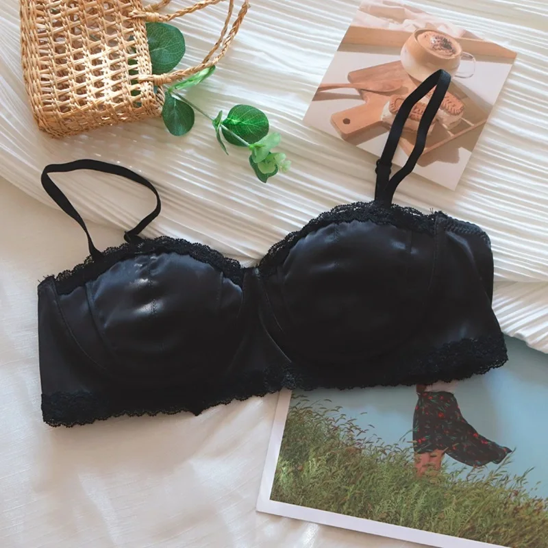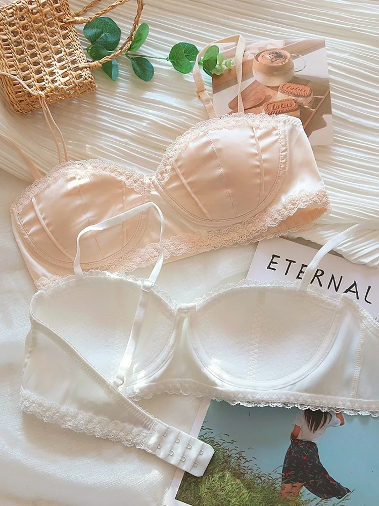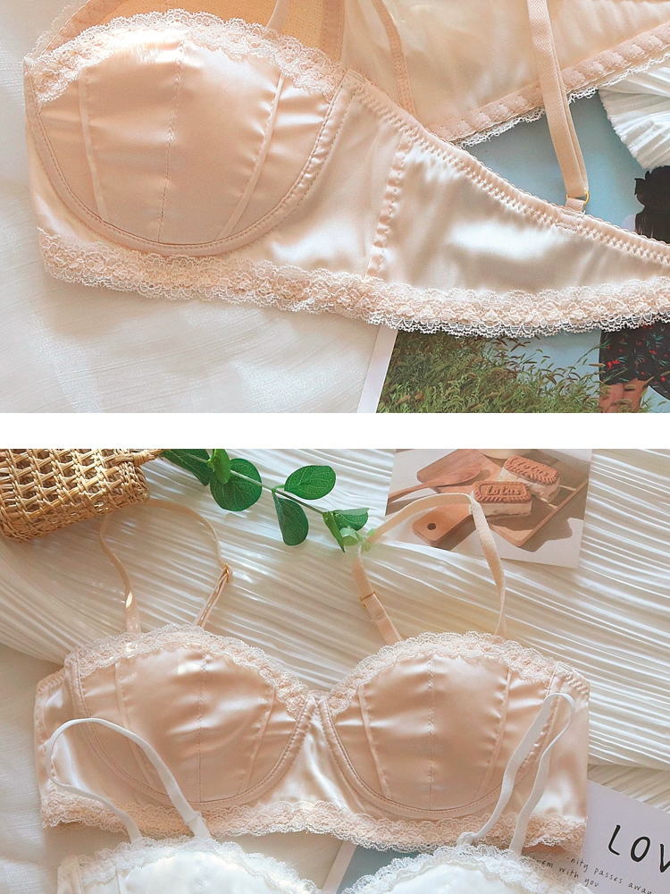 Satin bra girls without steel ring braletties small chest comfortable micro gathering summer thin lingerie