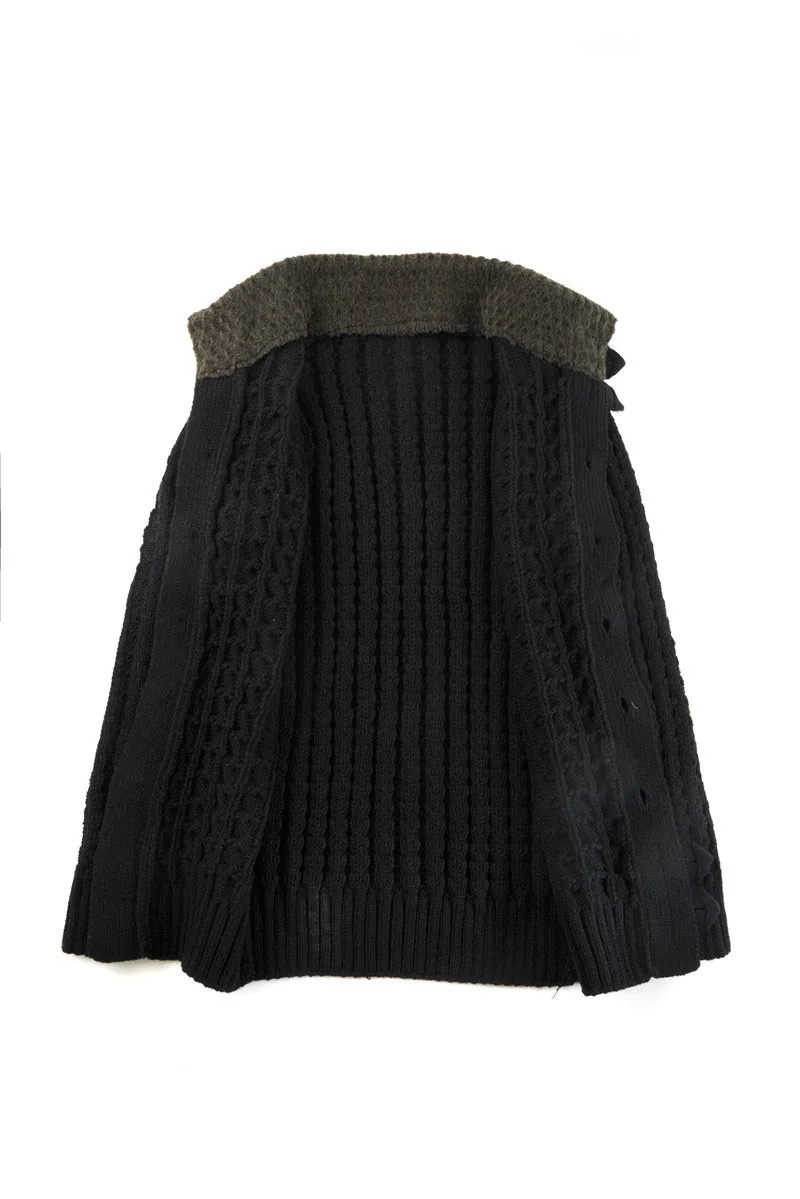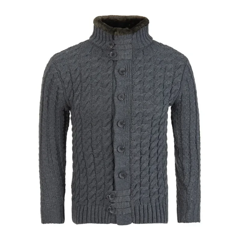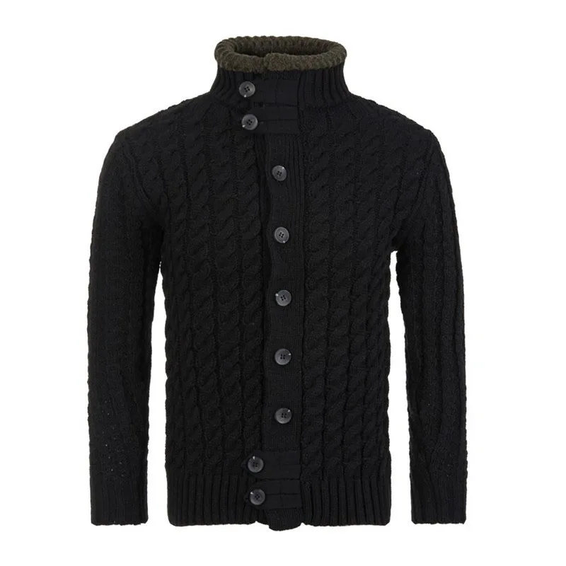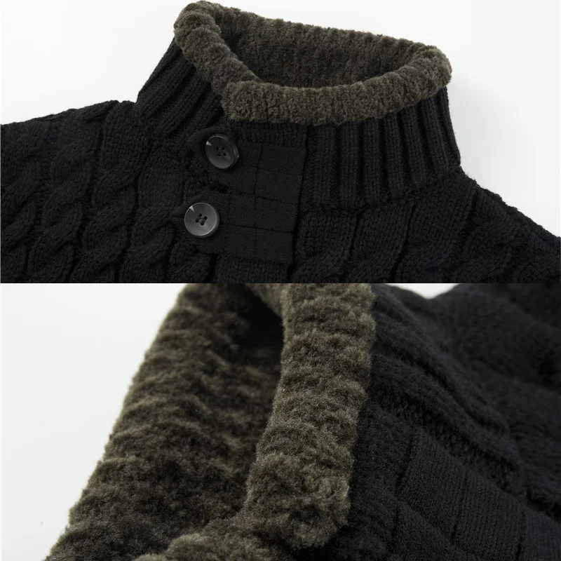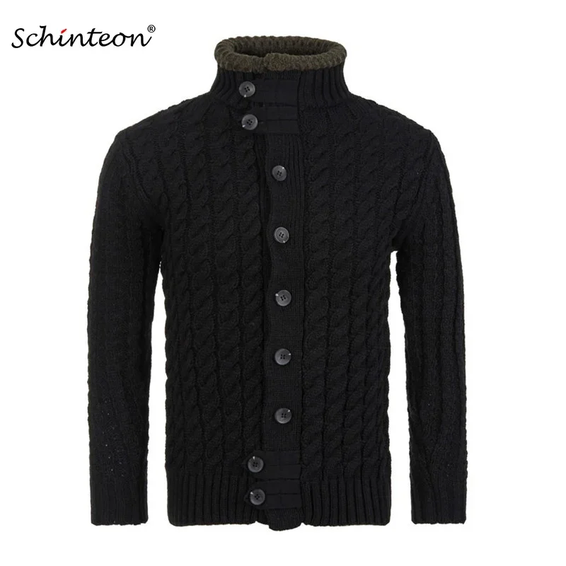 Schinteon Plus Size Men Sweater Cardigan Jacket Knitted Casual Coat Patchwork Stand Collar Warm Thick Warm Outwear Knitwear