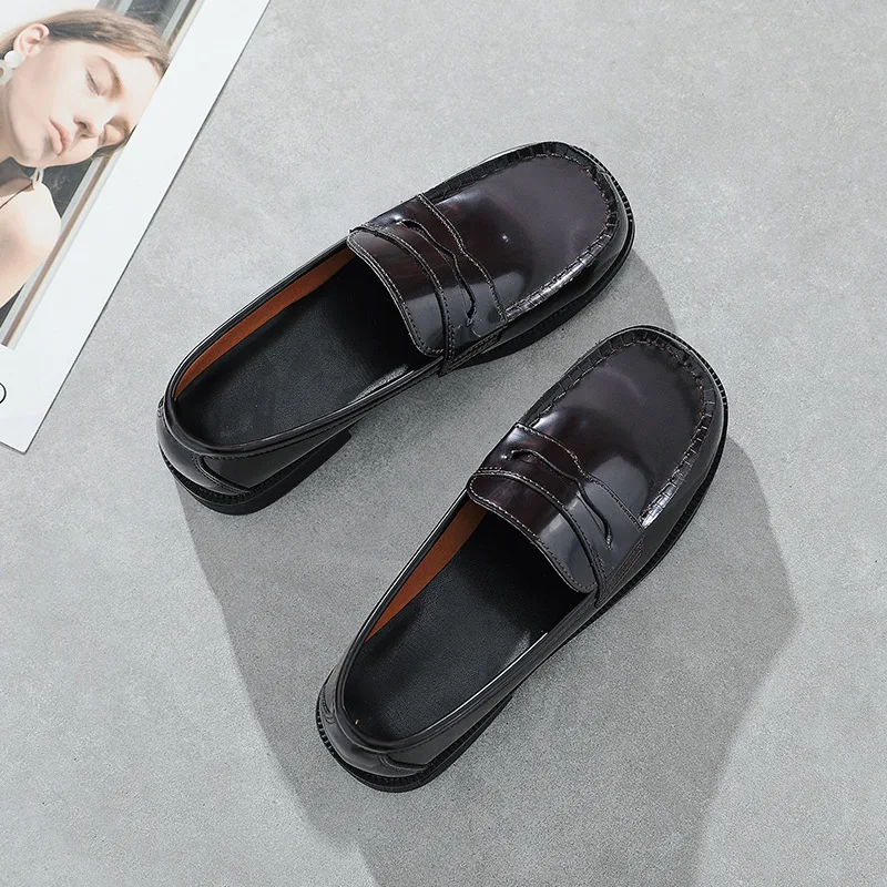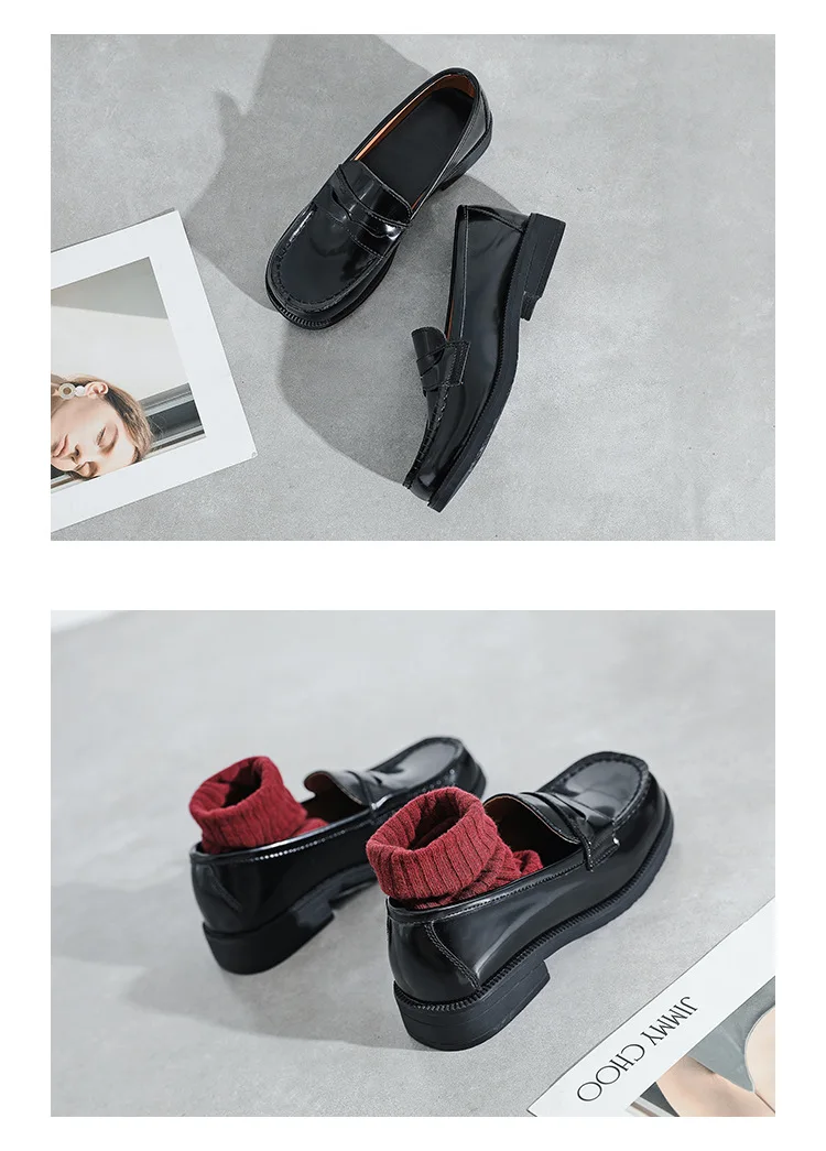 School College Uniform Shoes Plus Size 41 Female Genuine Leather Performance Shoes Real Leather Loafers