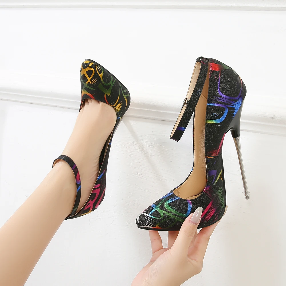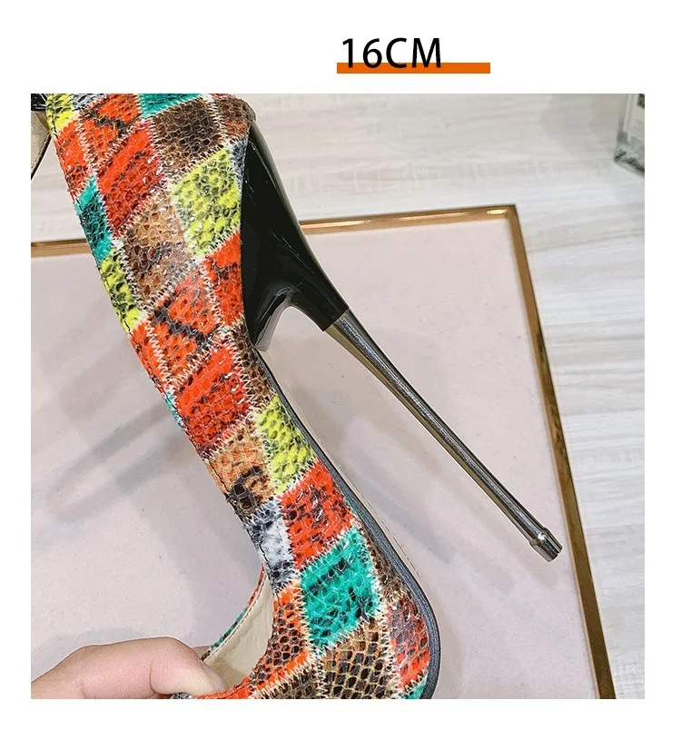 SDTRFT Ankle Strap zapatos Mujer 16cm Metal Thin High Heels Party Shoes Woman Pointed Toe Hollow out Girl’s Cosplay Fetish Pumps