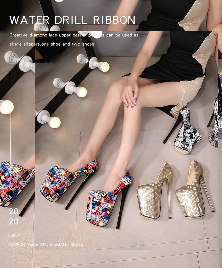 SDTRFT Pumps Ladies Platform woman 22cm Thin high heels zapatos mujer Stiletto Crossdresser Round Toe Dance shoes Plus:34-46 47
