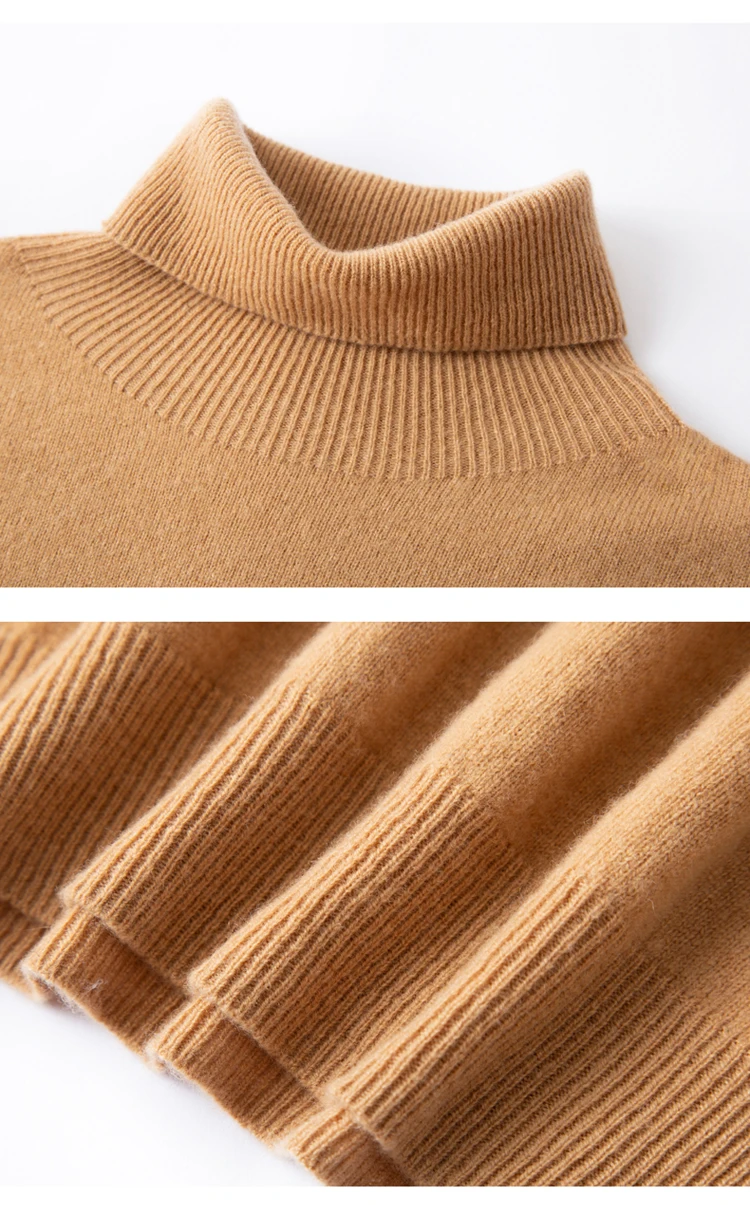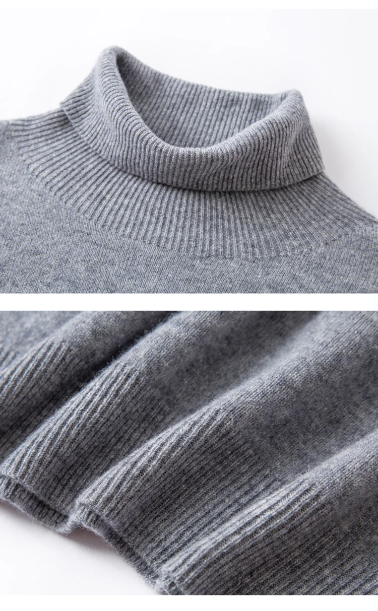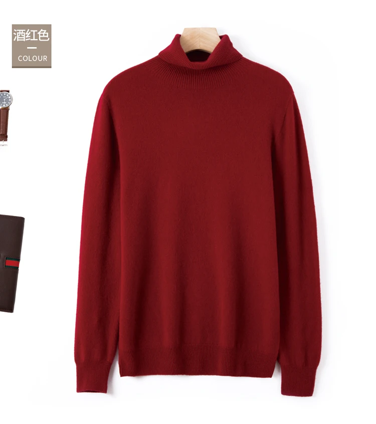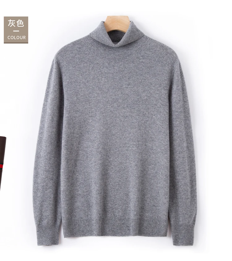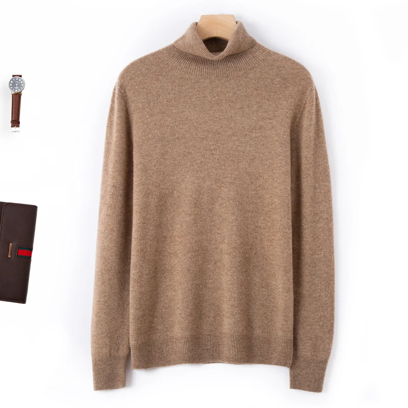 Seamless Cashmere Sweater Men’s Turtleneck Pullover Autumn / Winter Casual Knitted Pure Wool Tops Fashion One-Line Ready-to-Wear