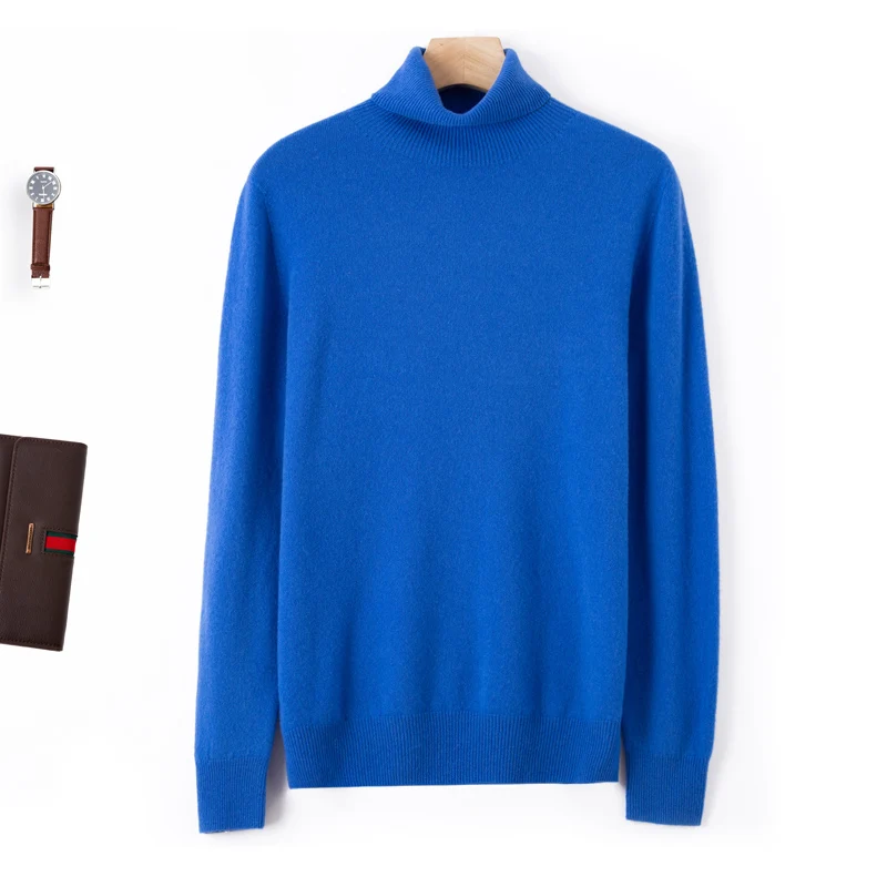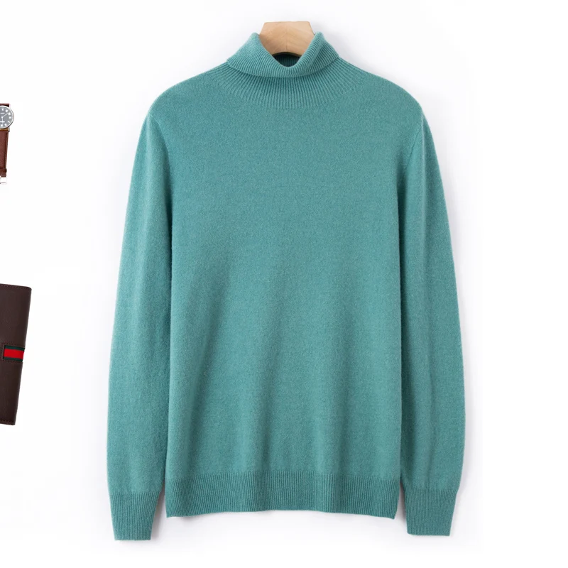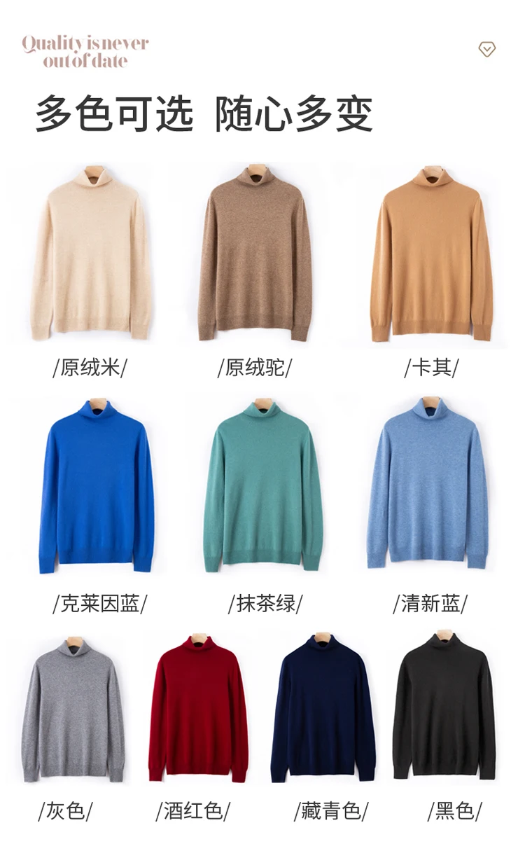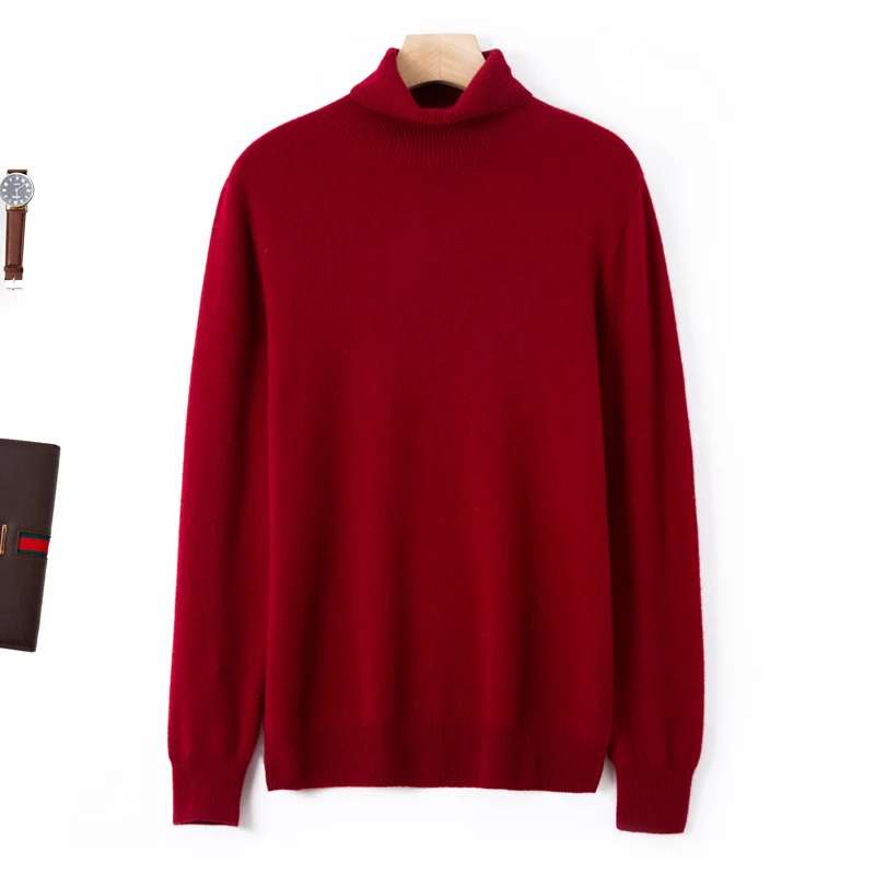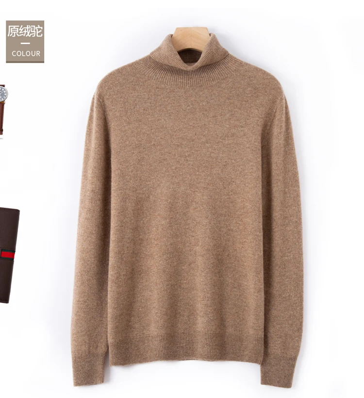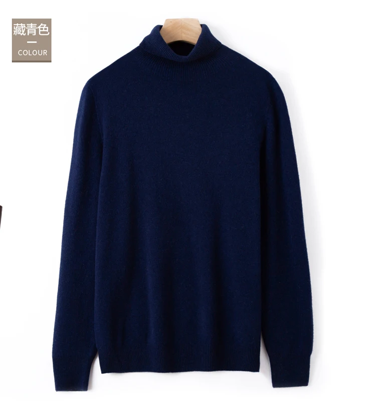 Seamless Cashmere Sweater Men’s Turtleneck Pullover Autumn / Winter Casual Knitted Pure Wool Tops Fashion One-Line Ready-to-Wear
