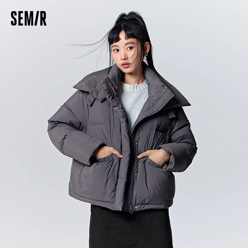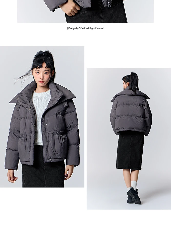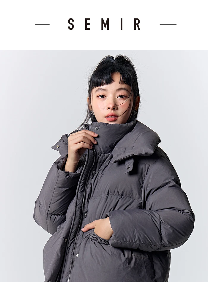 Semir Down Jacket Women Design Fashionable Versatile 2023 Winter New Gentle Solid Color Loose Stand Collar Jacket