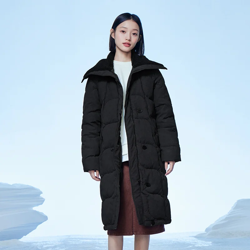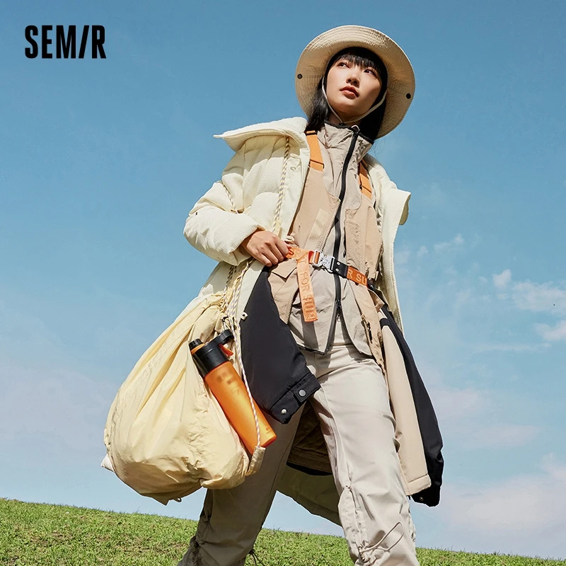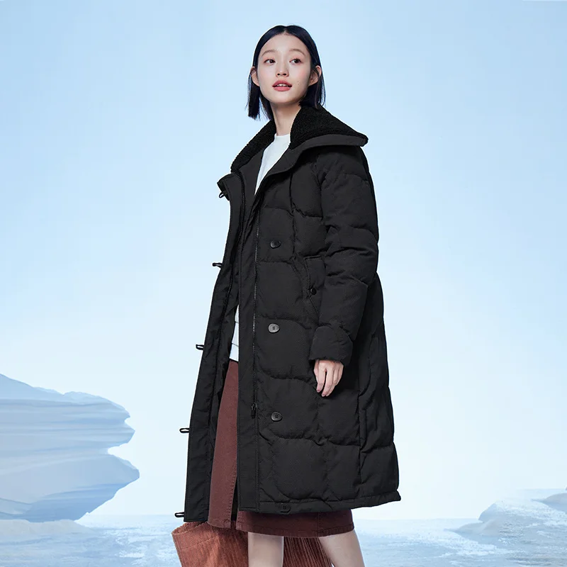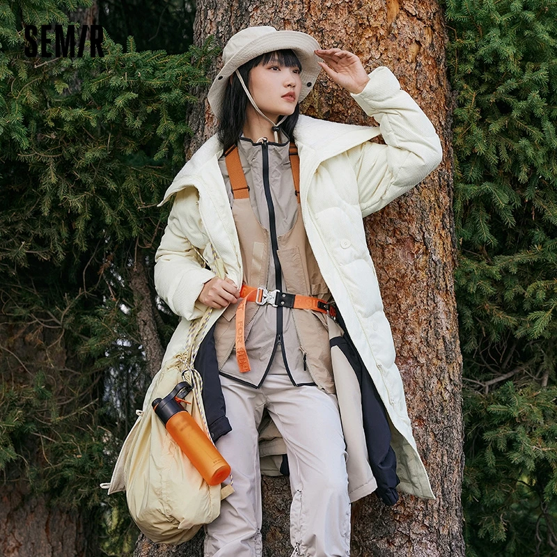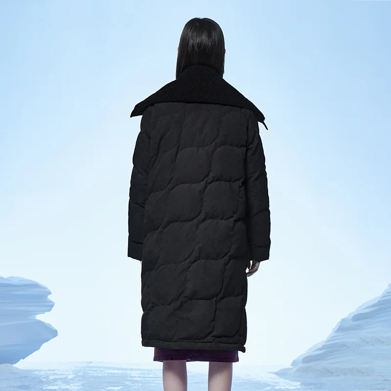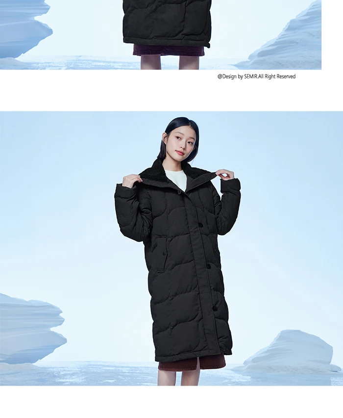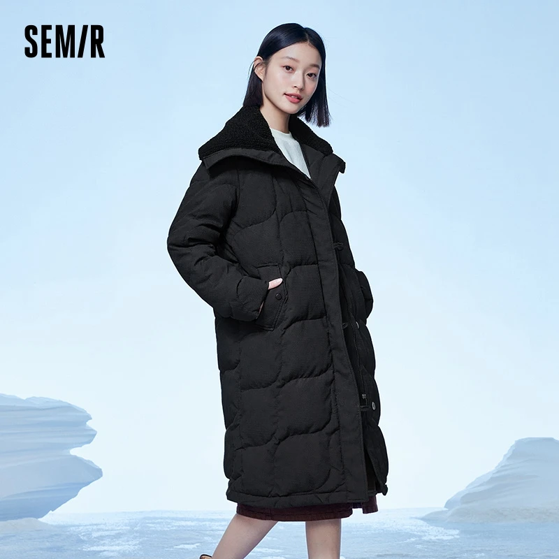 Semir Down Jacket Women Long Imitation Lamb Wool Large Lapel Warm 2023 Winter New Loose Textured Thick Coat