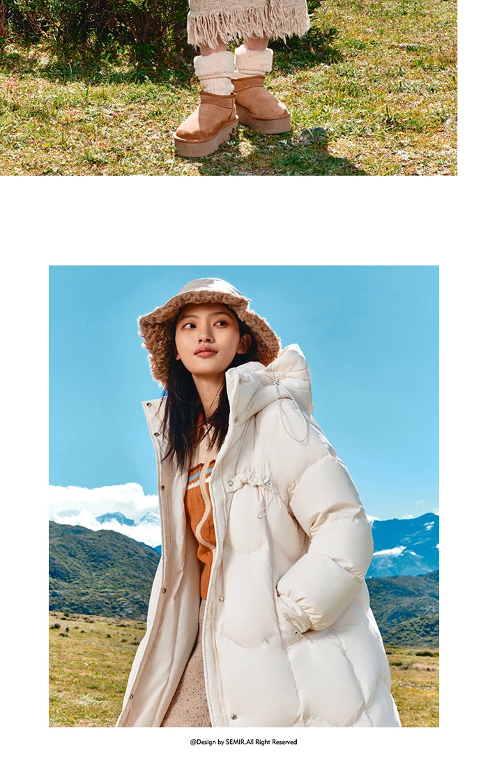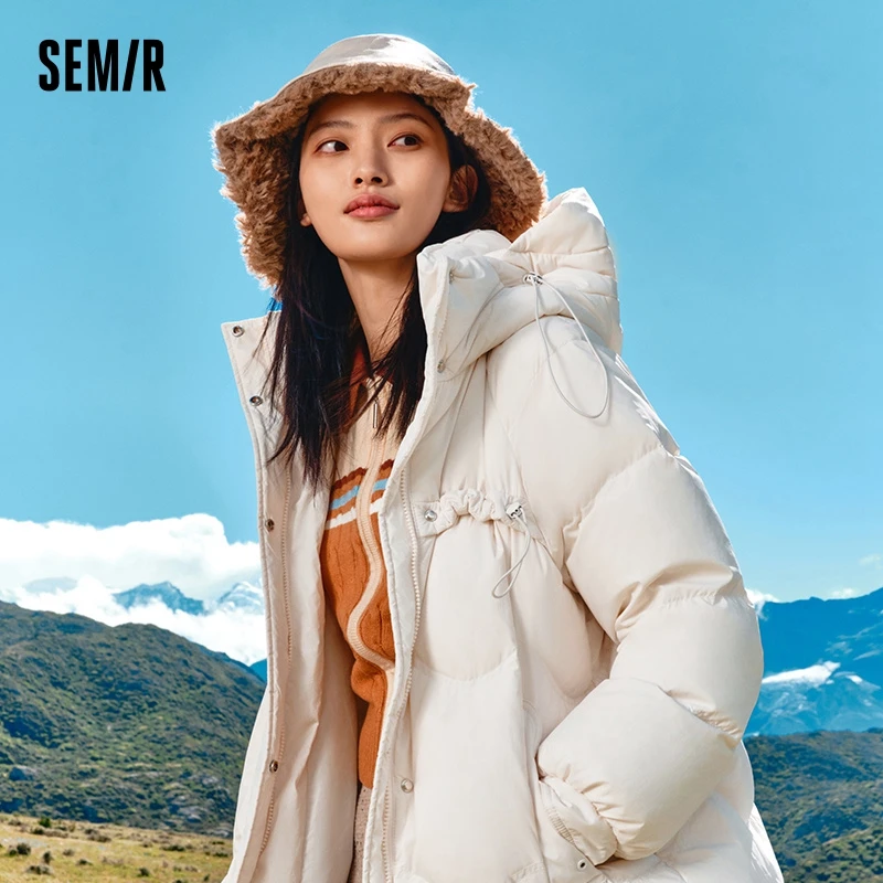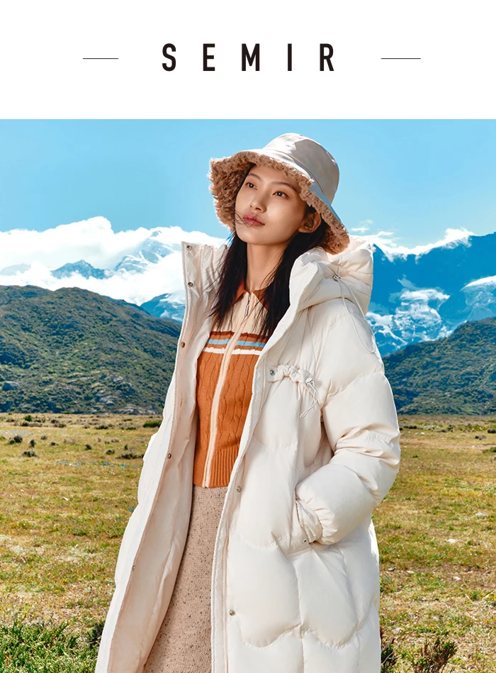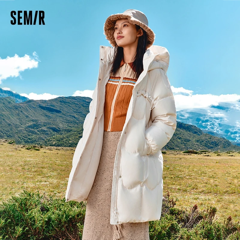 Semir Down Jacket Women Long Loose and Gentle Design 2023 New Winter Warm Hooded Textured Jacket