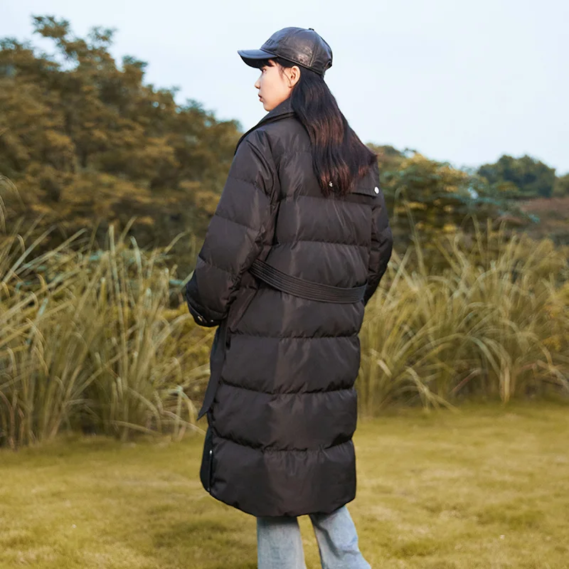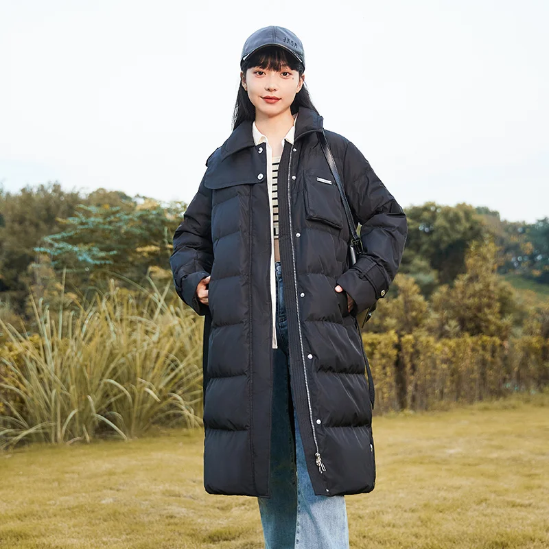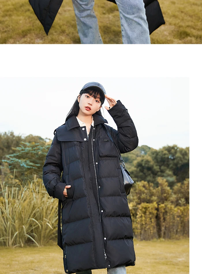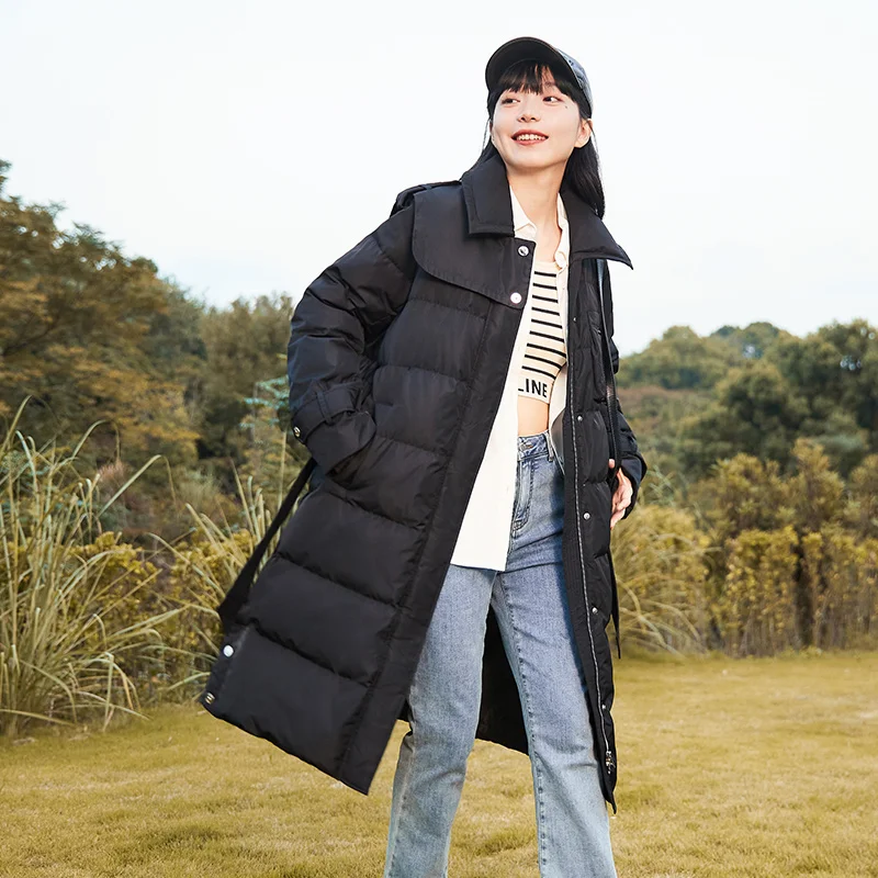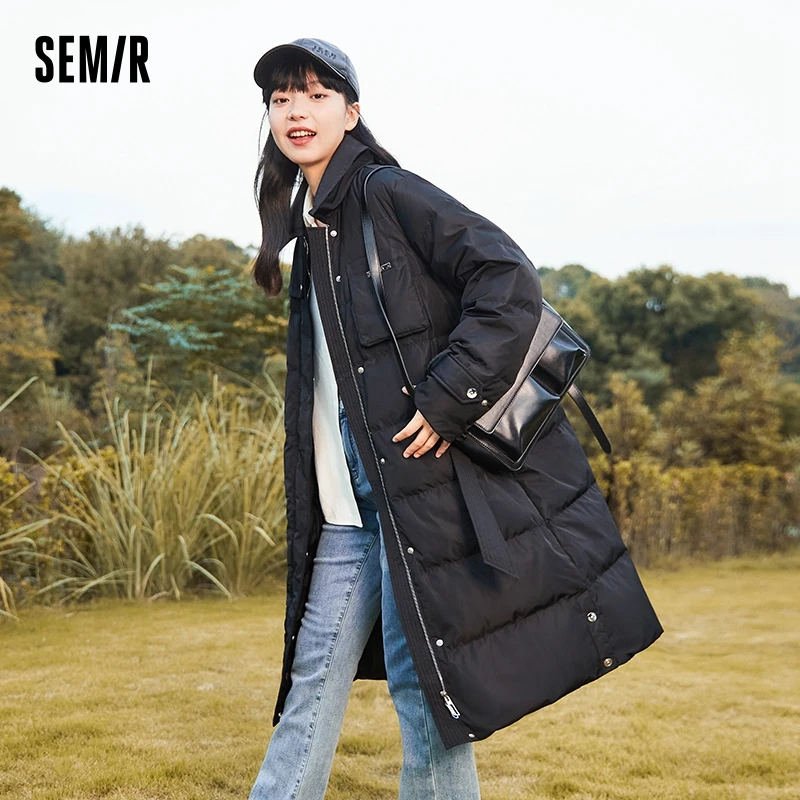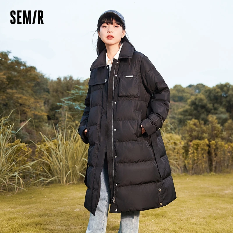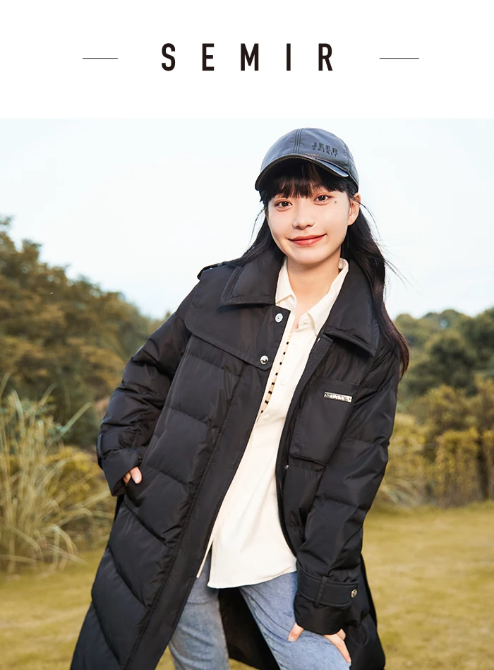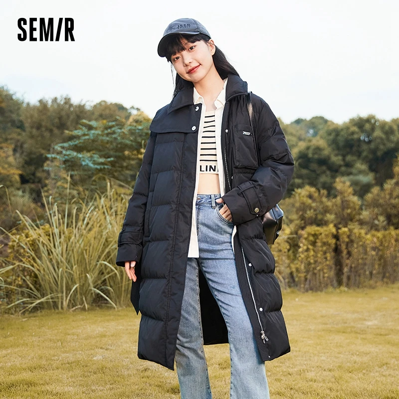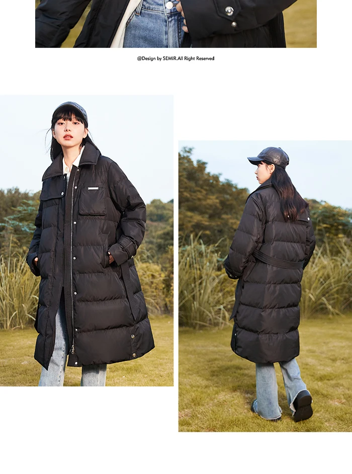 Semir Down Jacket Women Long Warm Lapel Two-Proof 2023 Winter New Loose Waist Thick Down Jacket
