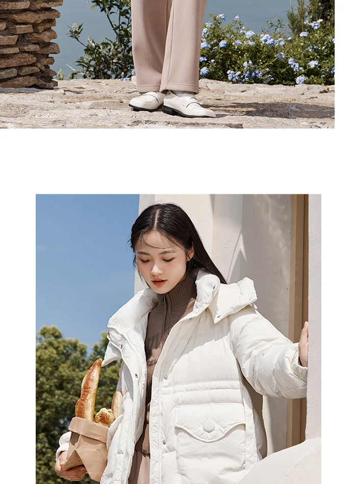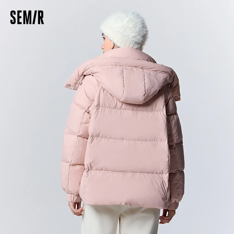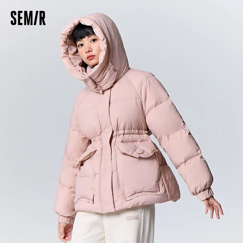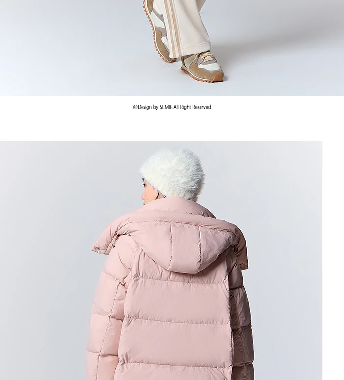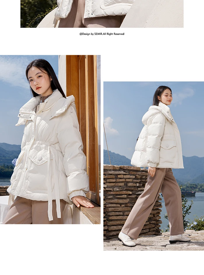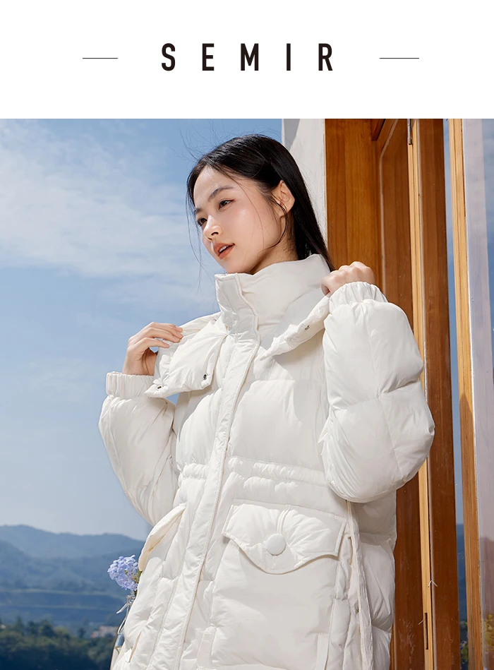 Semir Down Jacket Women Medium Long Loose Hooded Waist 2023 Winter New Textured Solid Color Down Jacket