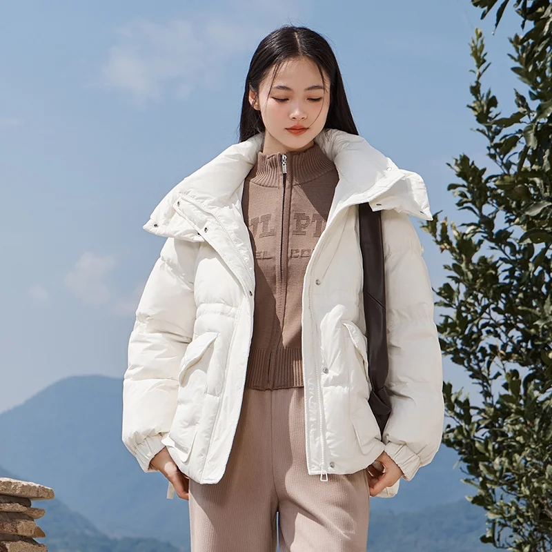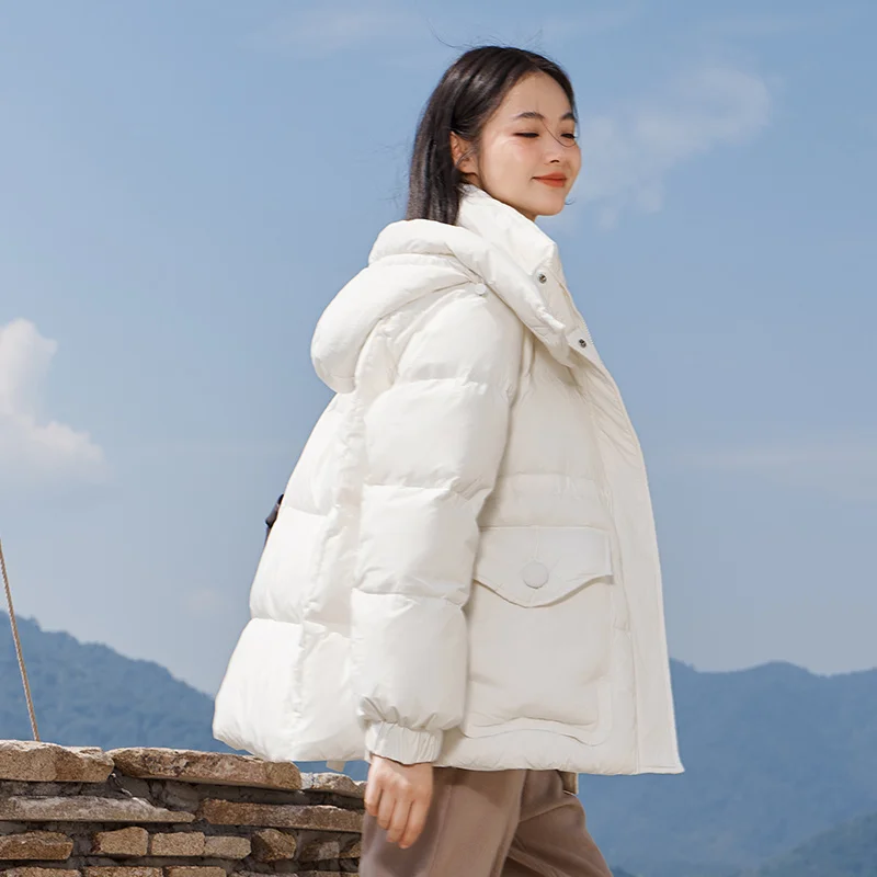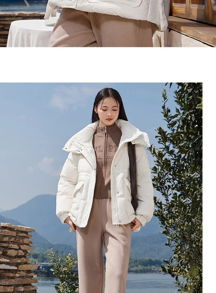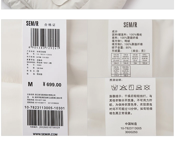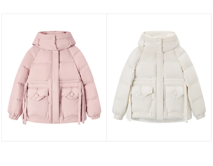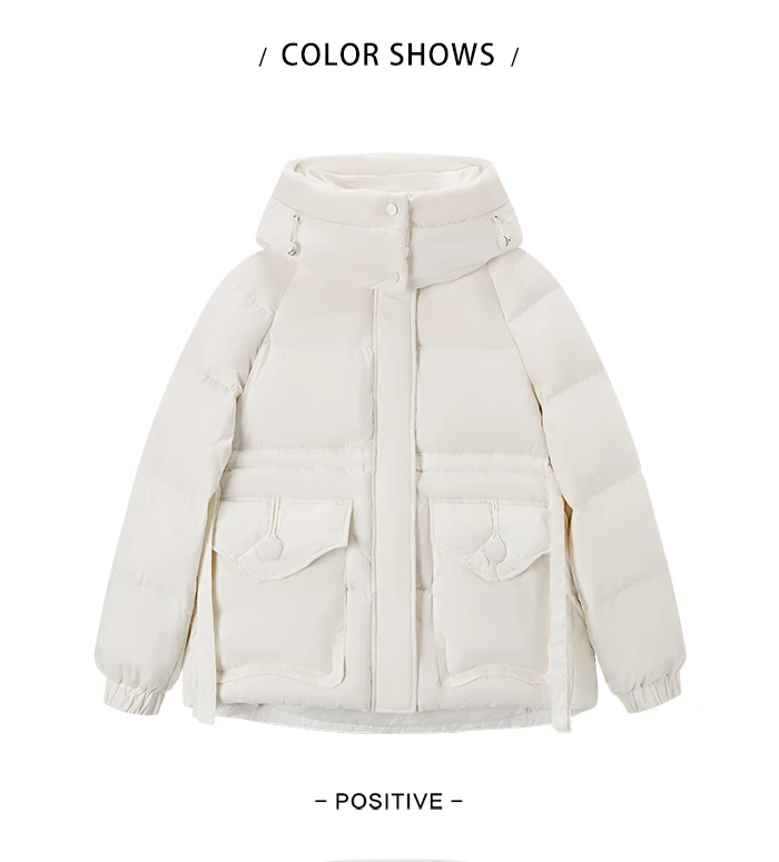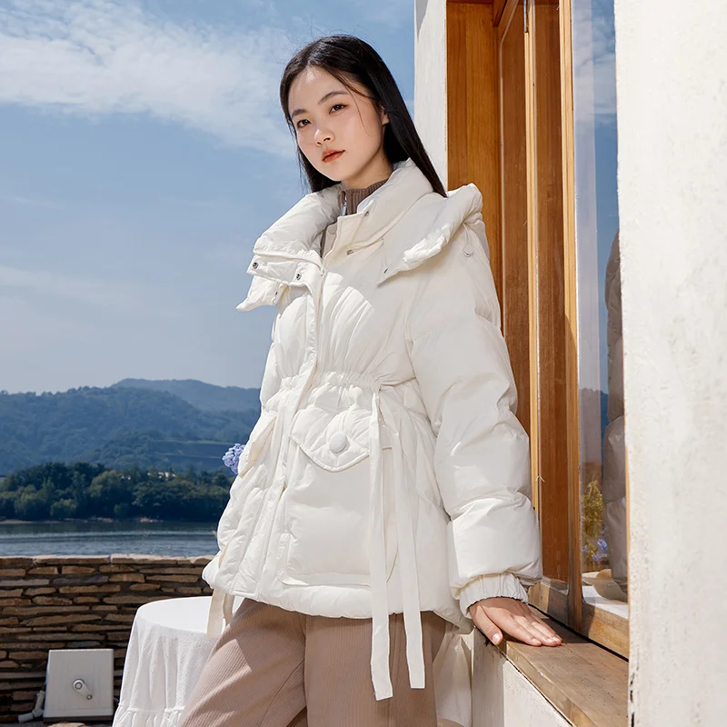 Semir Down Jacket Women Medium Long Loose Hooded Waist 2023 Winter New Textured Solid Color Down Jacket