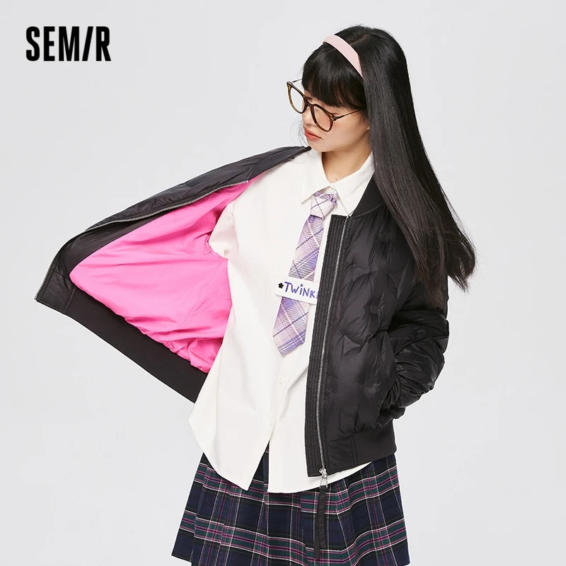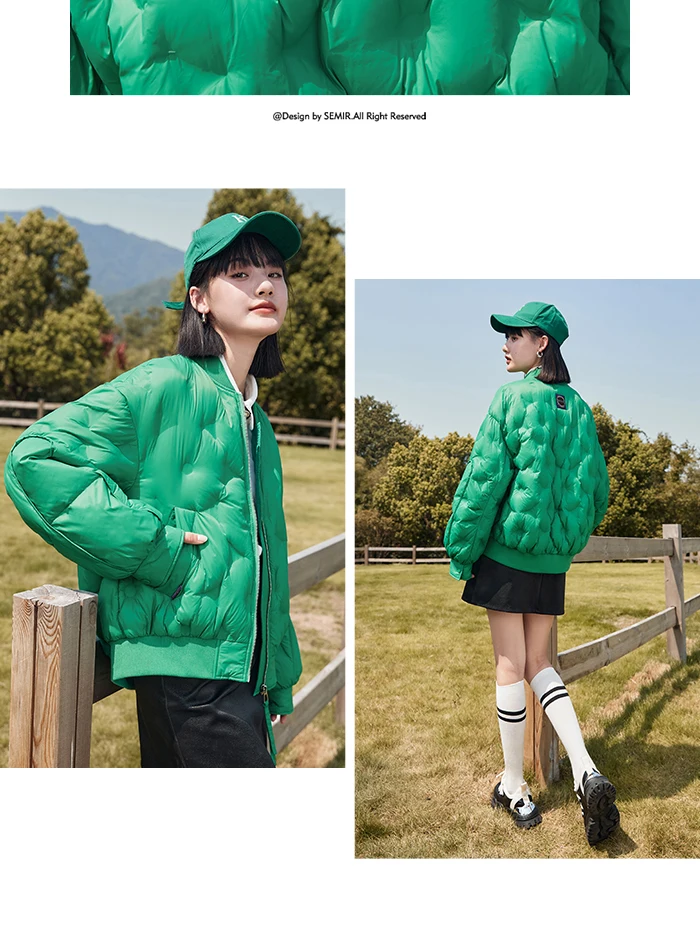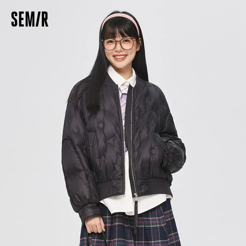 Semir Down Jacket Women Mid-Length Design Baseball Collar Loose 2022 Winter New Coat Retro Fashion