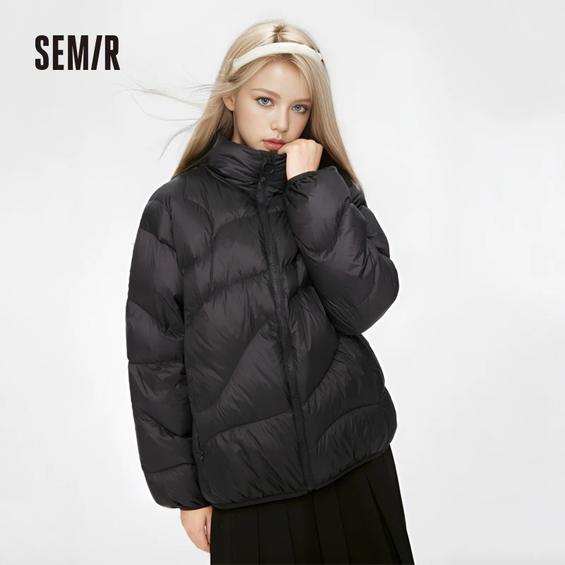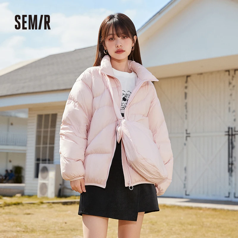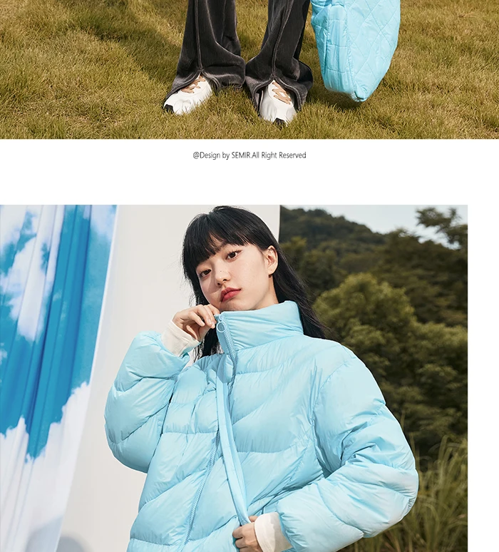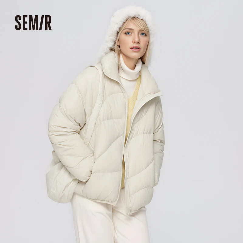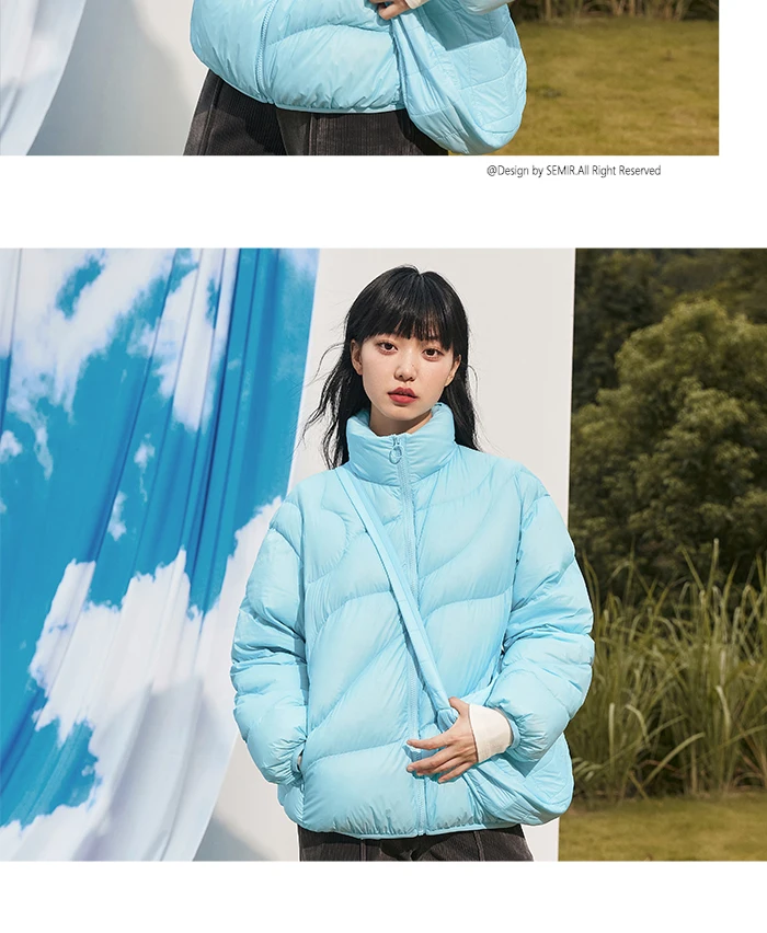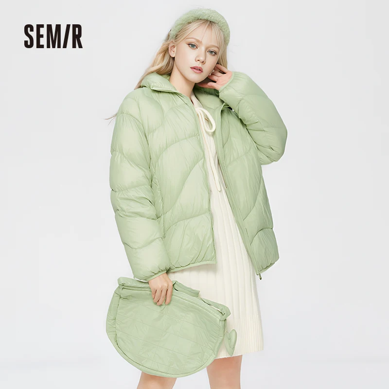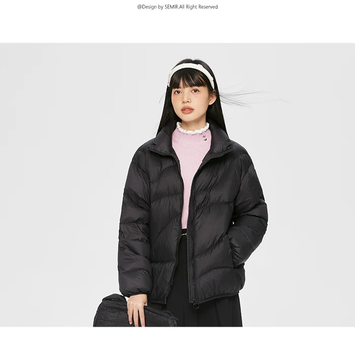Semir Down Jacket Women Solid Color Design Sense 2022 Winter New Three-Proof Loose Stand-Up Collar Coat Ladies All-Match