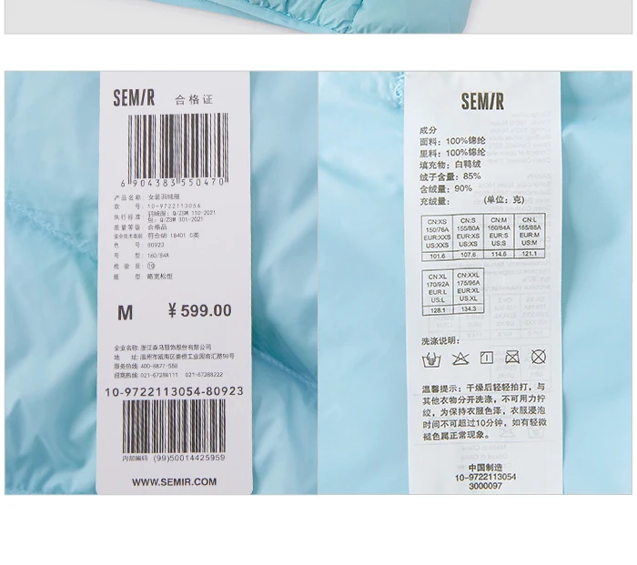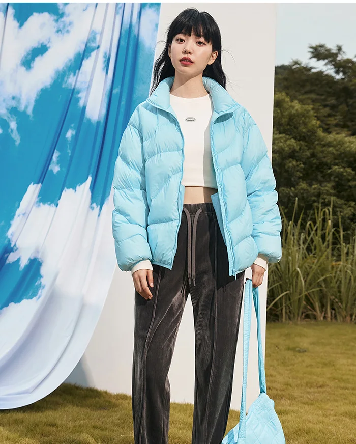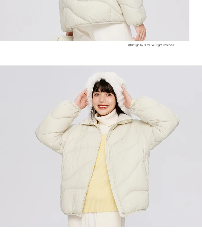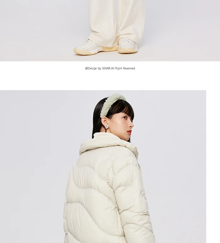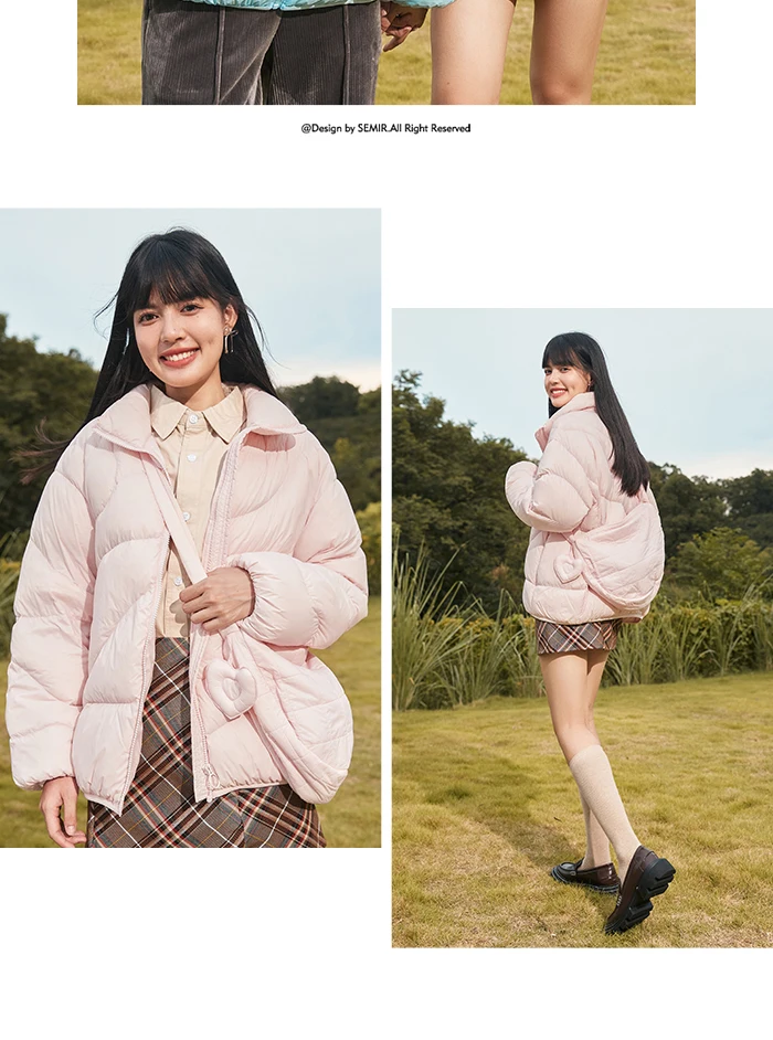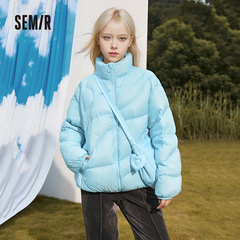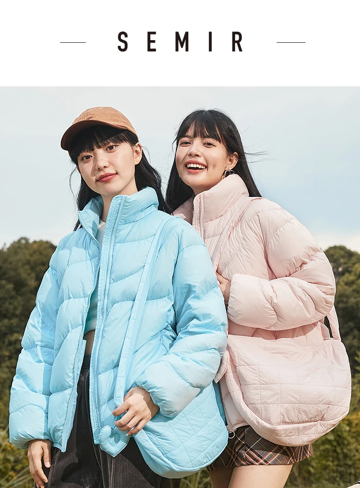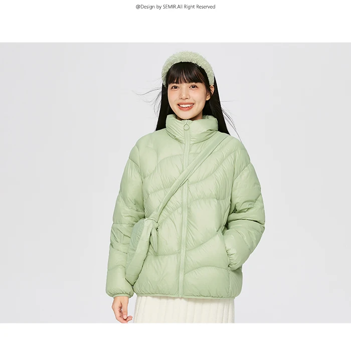 Semir Down Jacket Women Solid Color Design Sense 2022 Winter New Three-Proof Loose Stand-Up Collar Coat Ladies All-Match