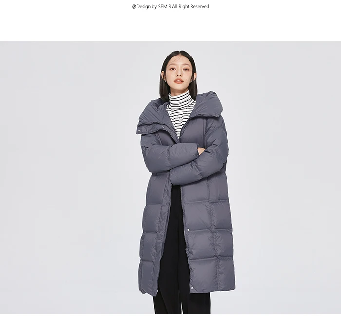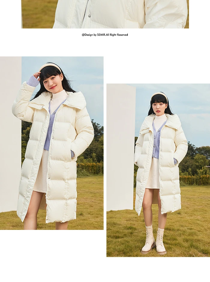 Semir Long Down Jacket Women Waterproof Hooded Coat 2023 Winter New Loose Girls’ Jacket Multi-Color Thick Windbrake Down Coat