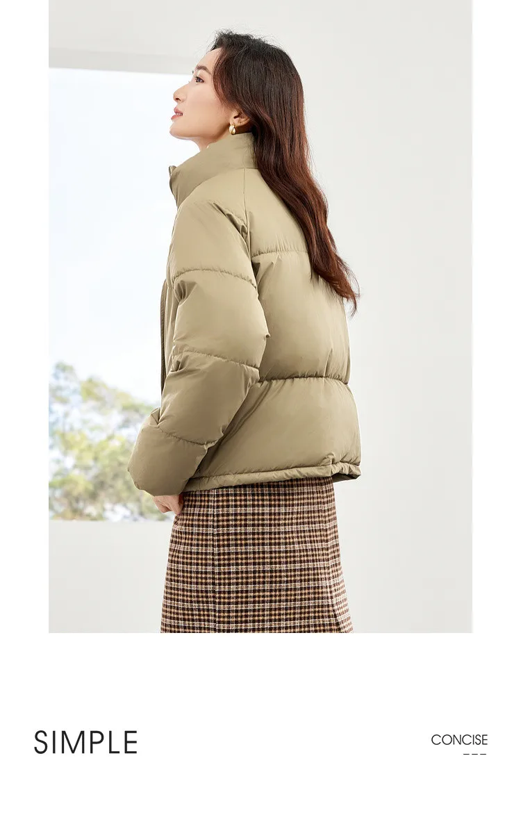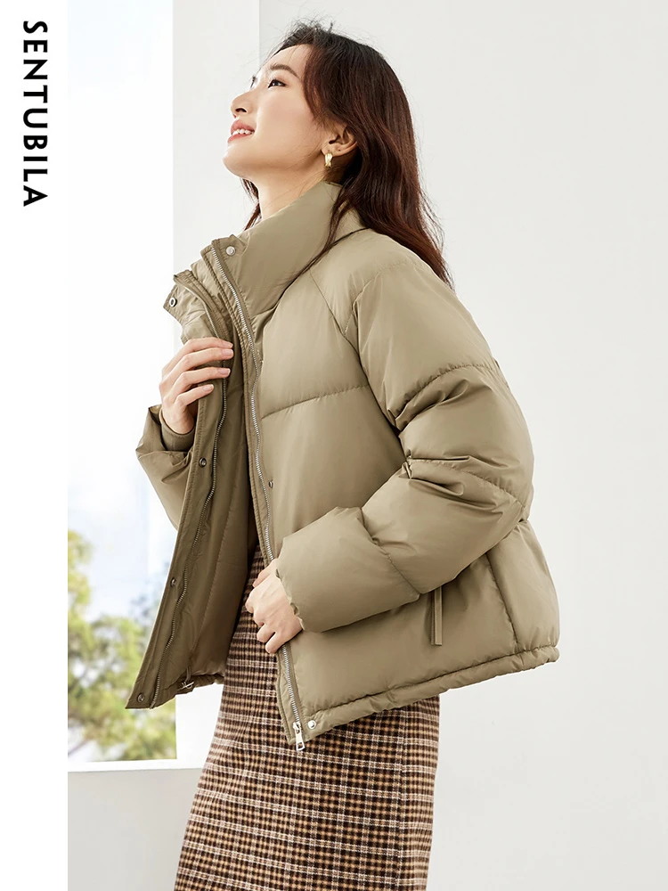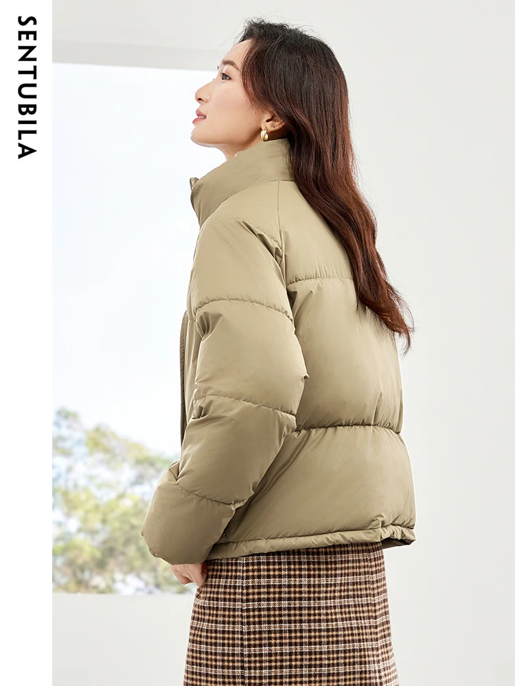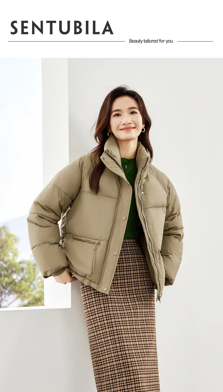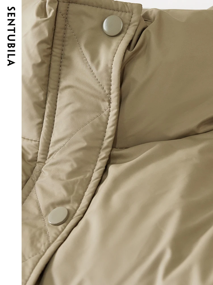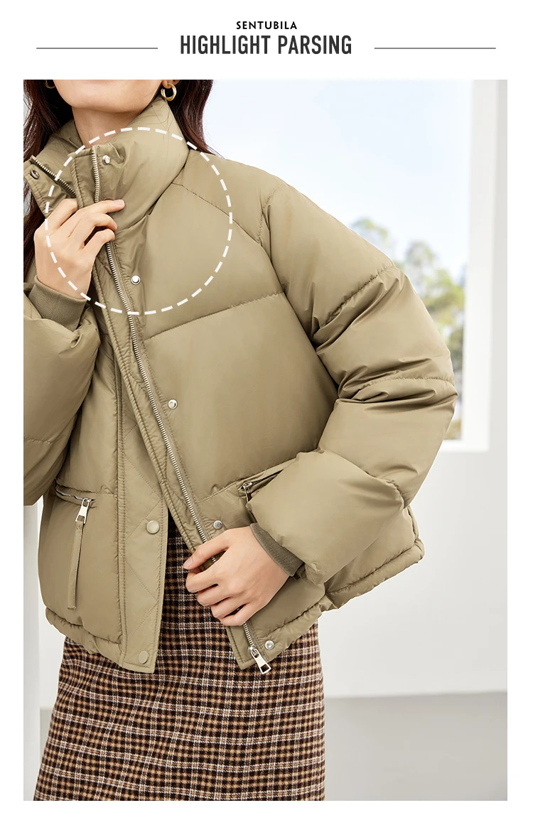 SENTUBILA Fashion Winter Short Parkas Puff Jackets Women Autumn Padding Jacket 2024 Stand Collar Classic Cotton Coat W34M50214