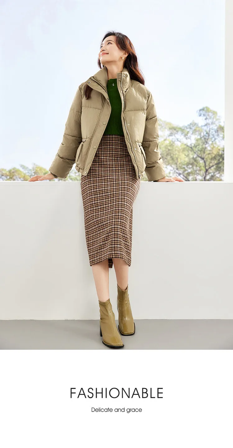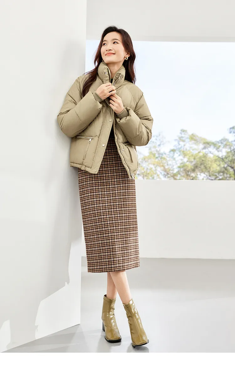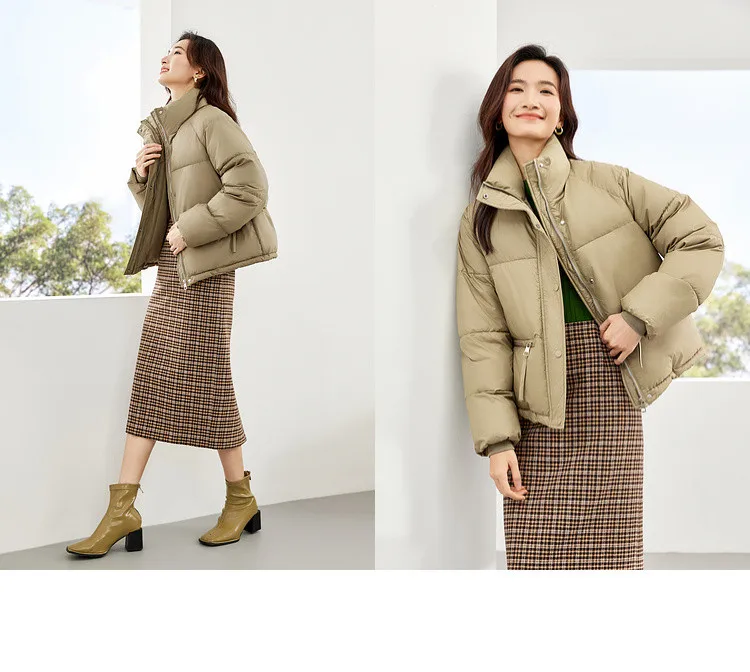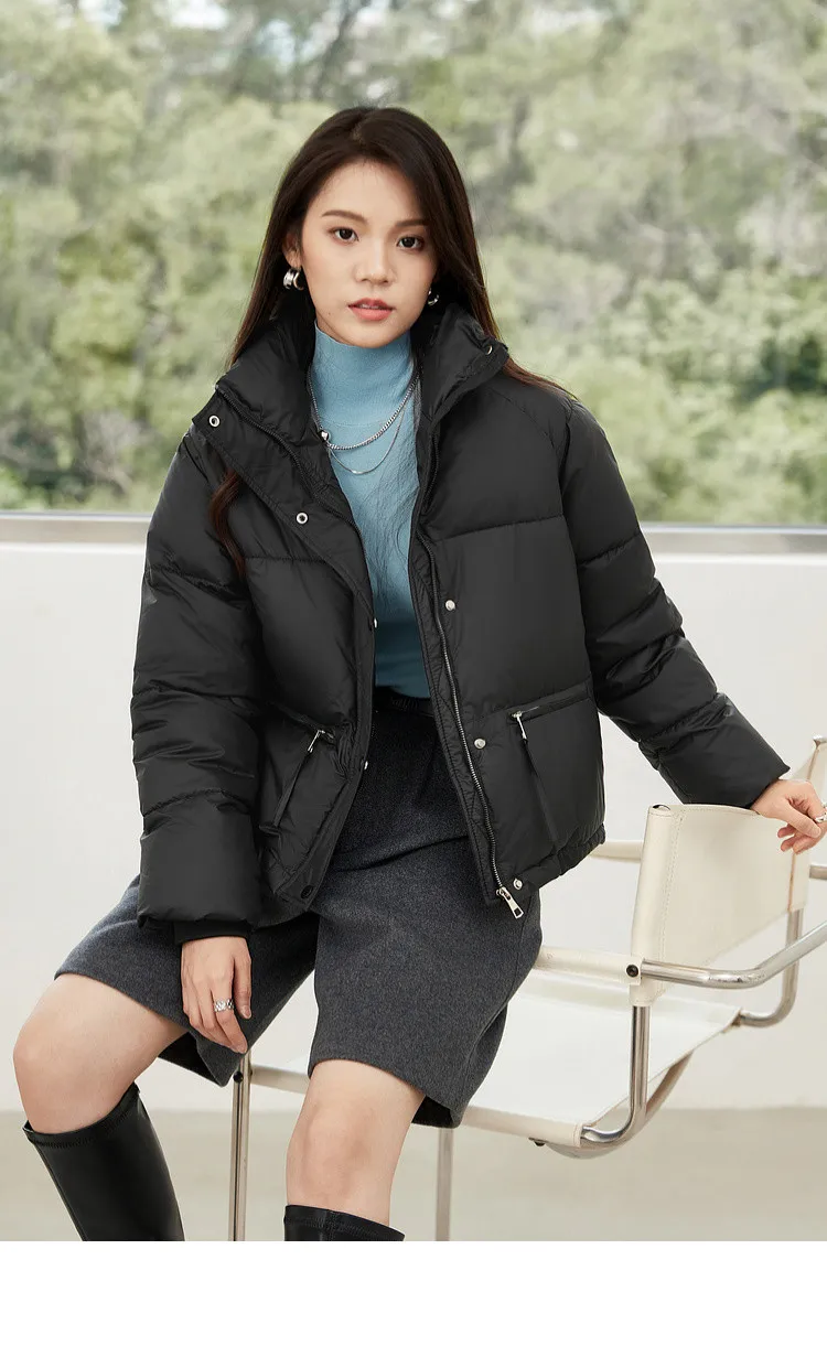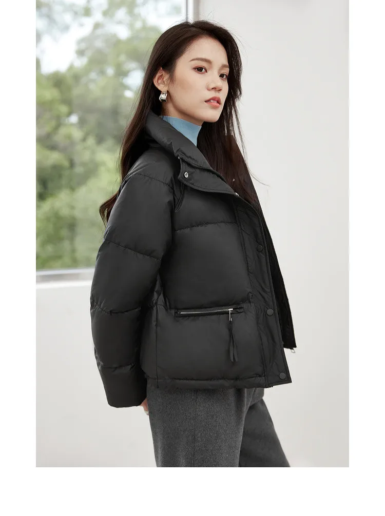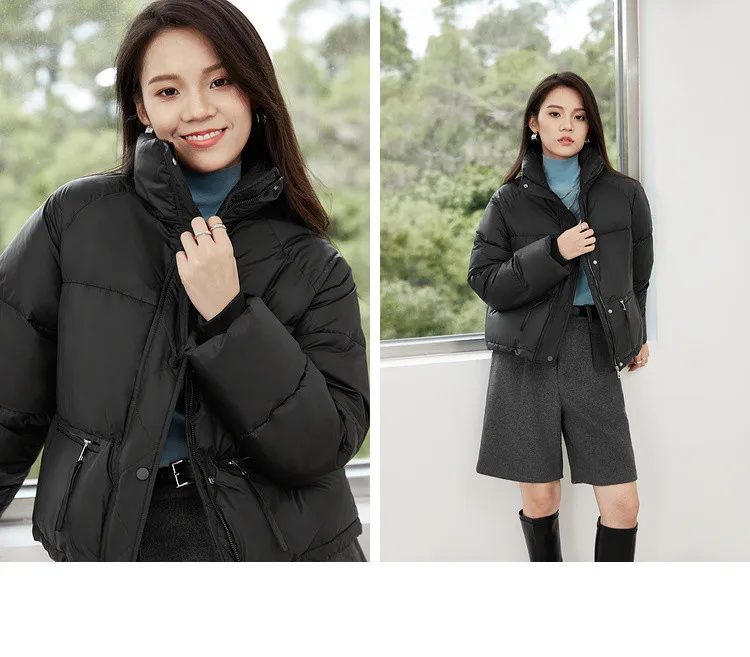 SENTUBILA Fashion Winter Short Parkas Puff Jackets Women Autumn Padding Jacket 2024 Stand Collar Classic Cotton Coat W34M50214