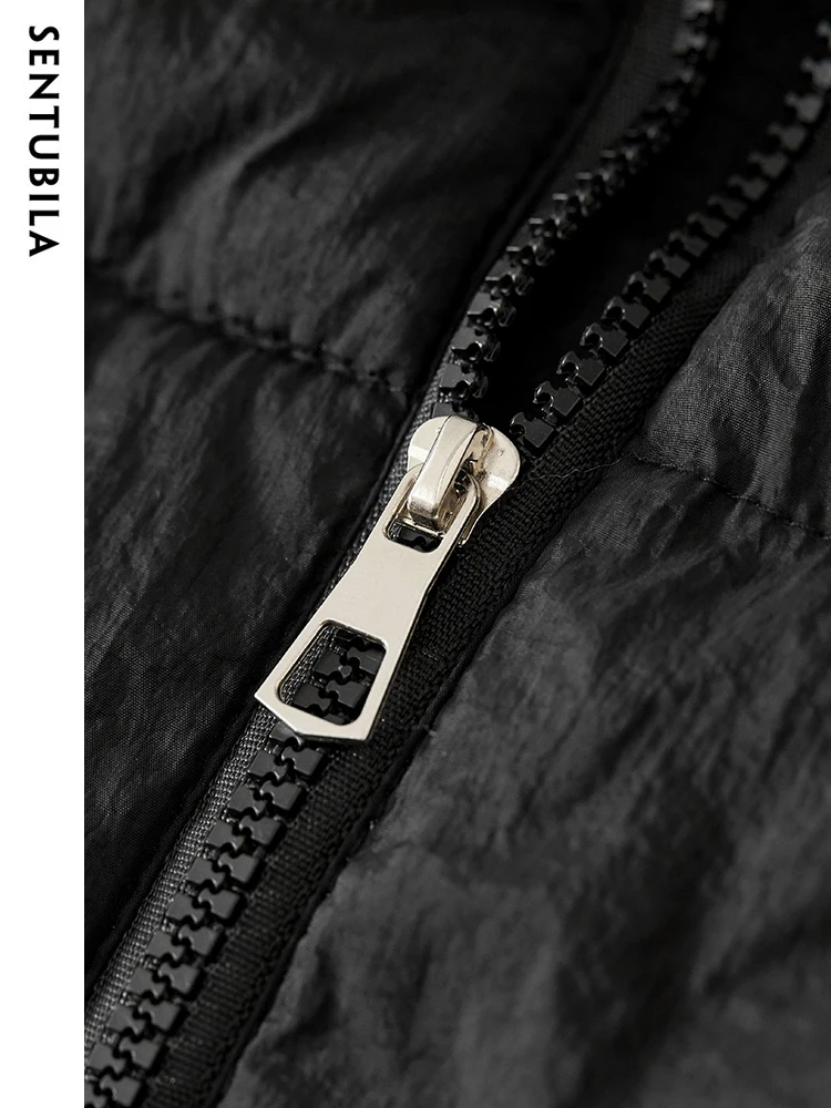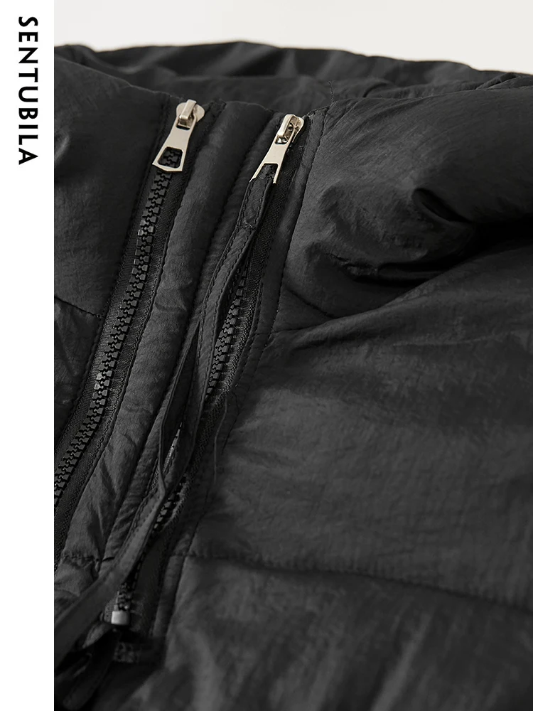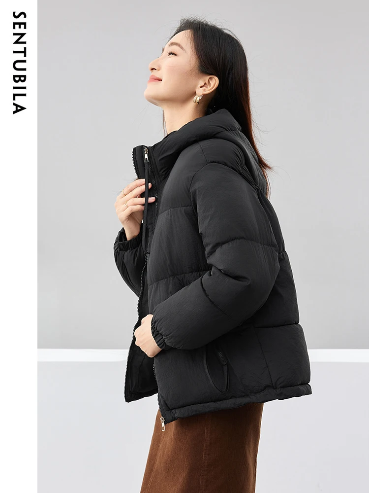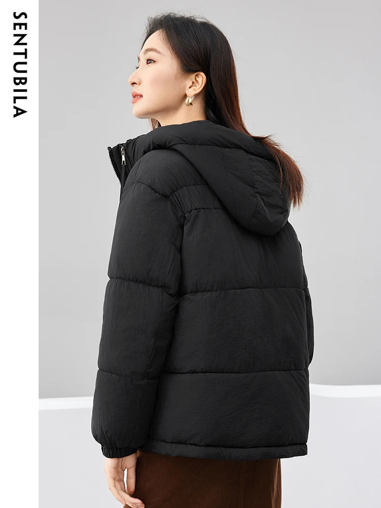 SENTUBILA Thick Warm Hooded Short Parkas Jackets Women 2024 Winter Casual Zipper Crop Padding Jacket Solid Coat Tops W34M52624