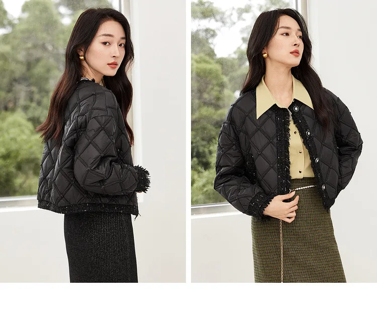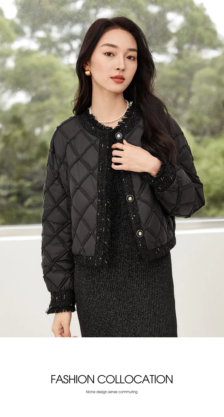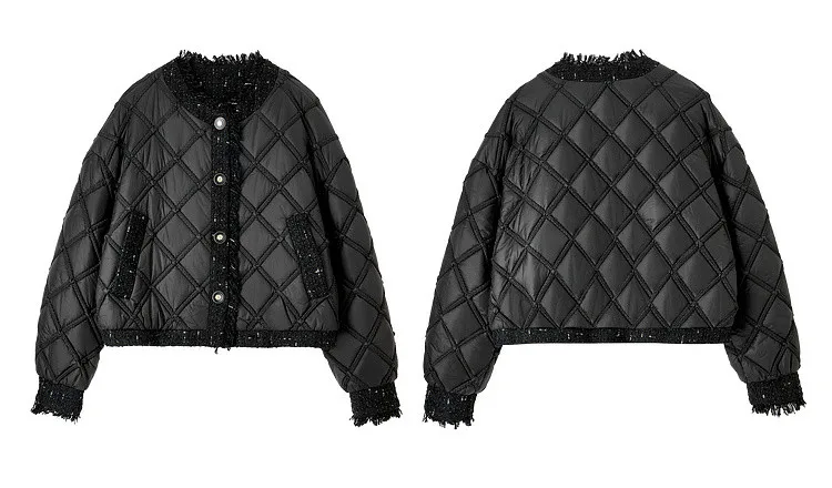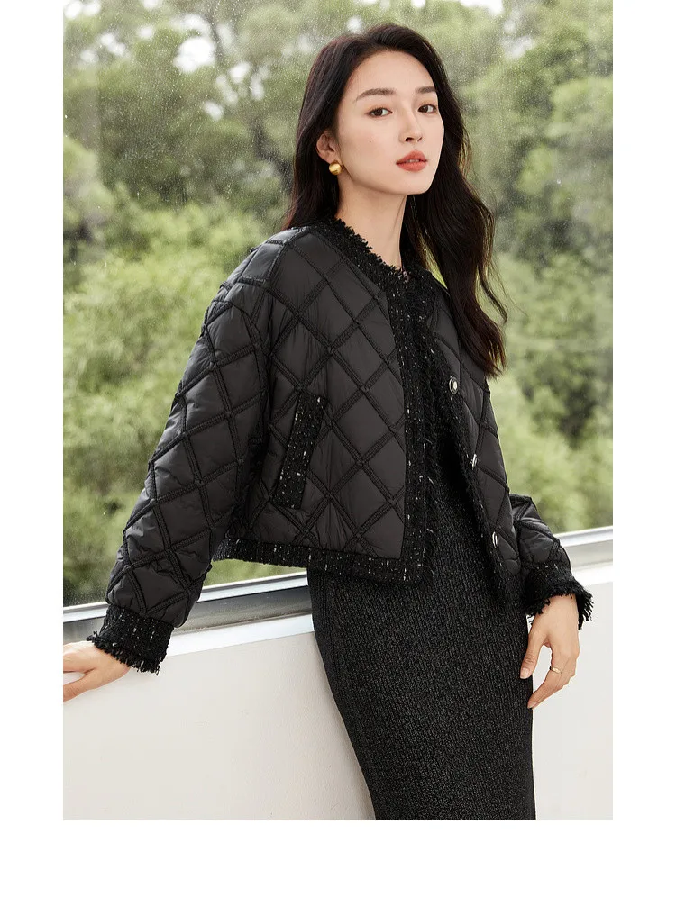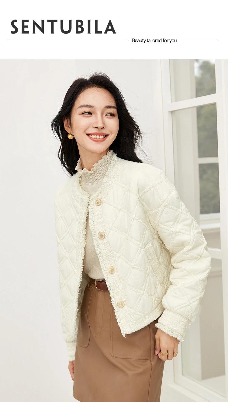 SENTUBILA Winter Tassel Black Parkas Jackets for Women 2024 Patchwork Crop Cotton Padded Jacket Button Warm Outwear W34M51352