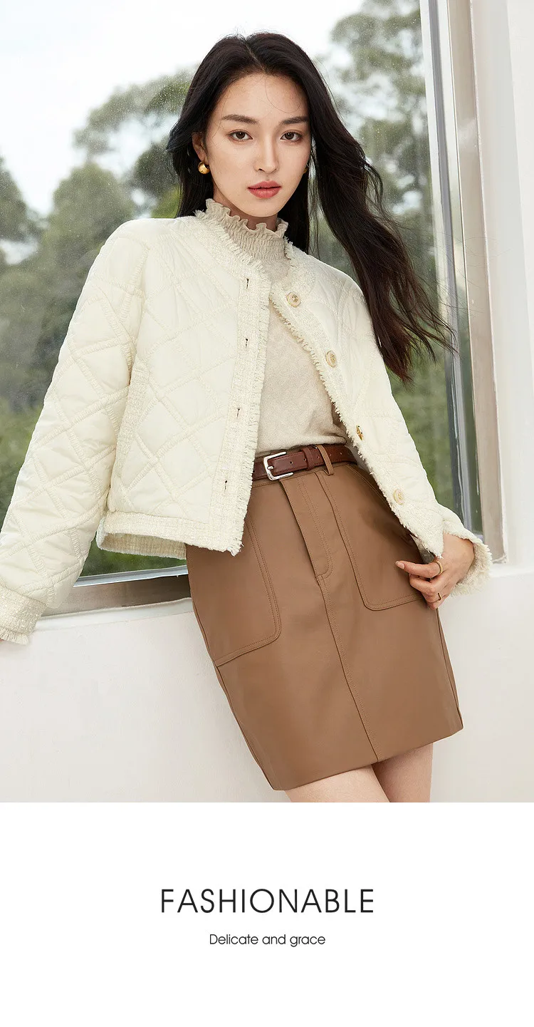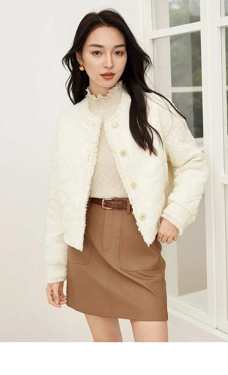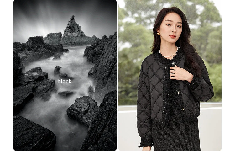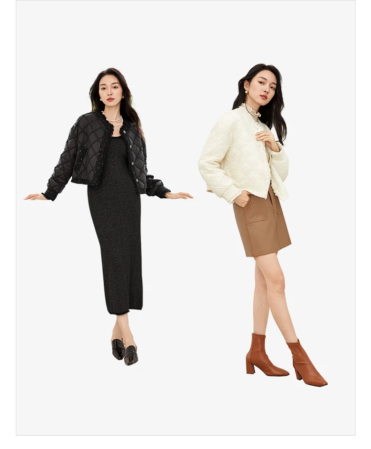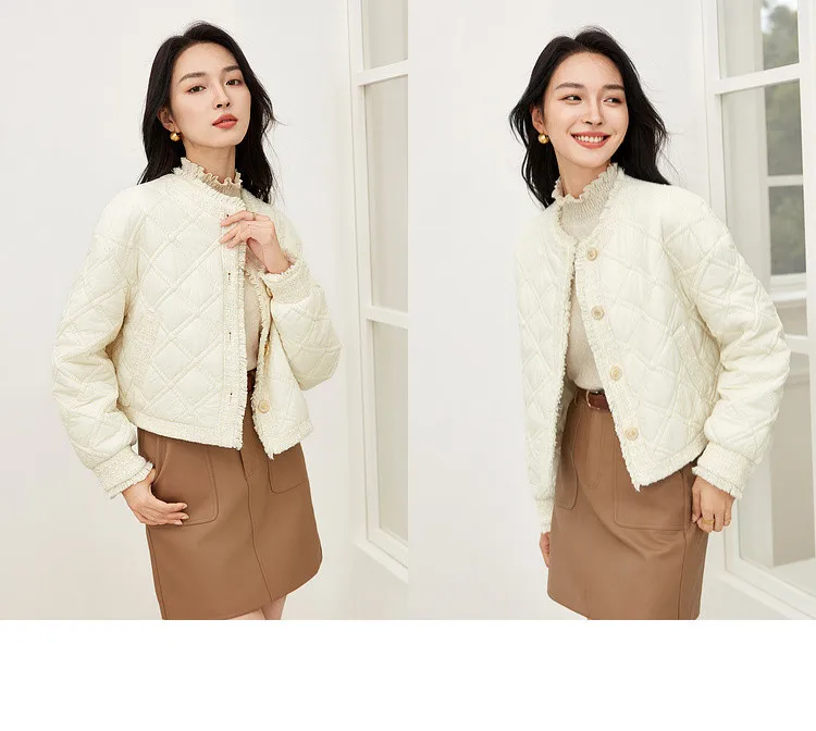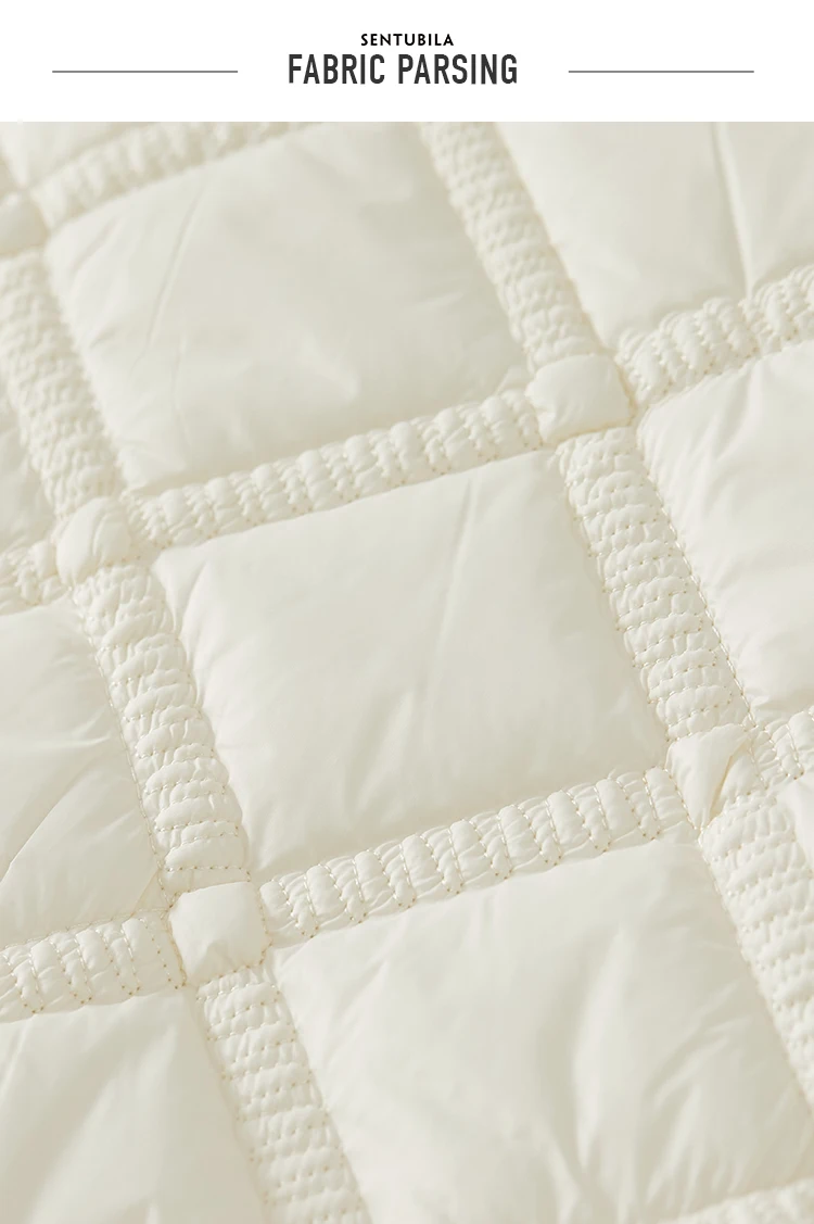 SENTUBILA Winter Tassel Black Parkas Jackets for Women 2024 Patchwork Crop Cotton Padded Jacket Button Warm Outwear W34M51352