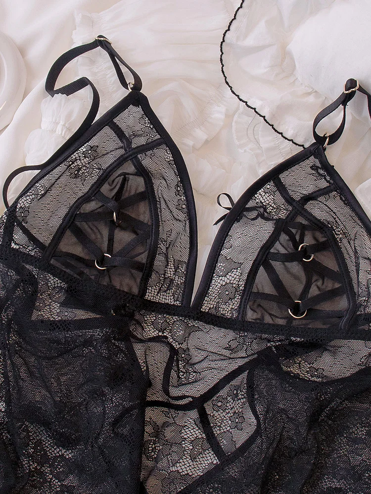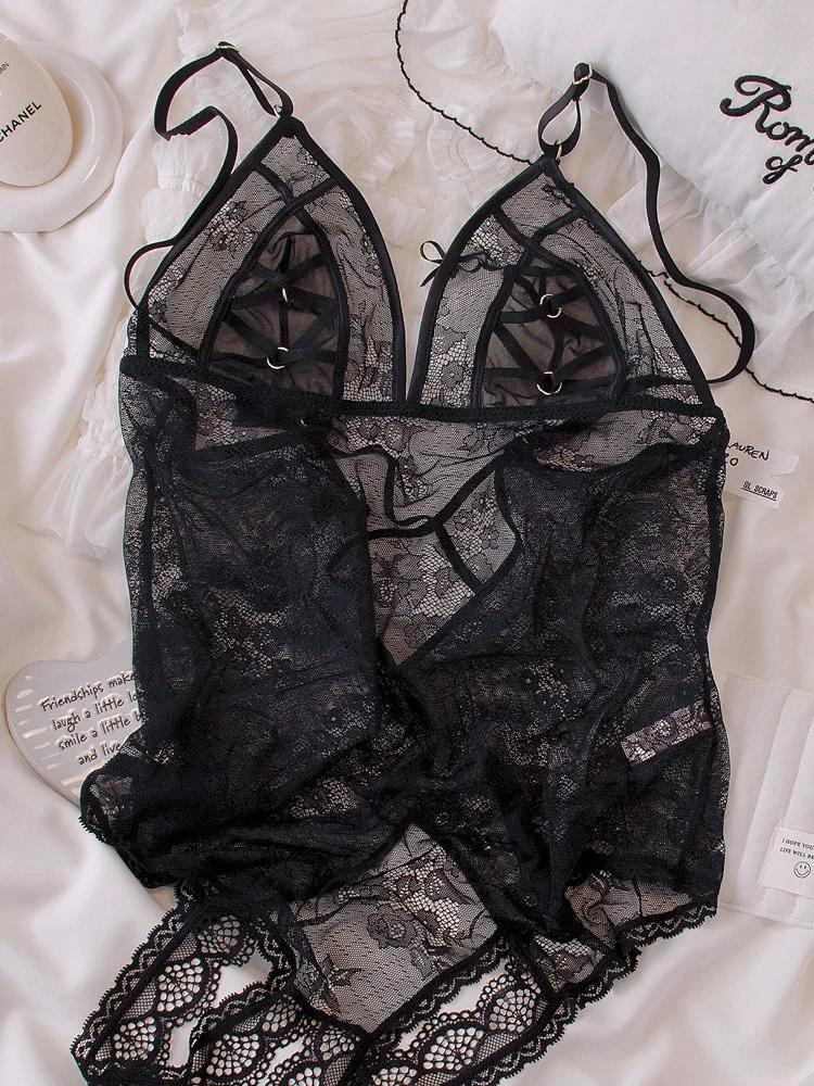 Sexy beautiful back pure desire bodysuit women lace halter one-piece pajamas female lingerie