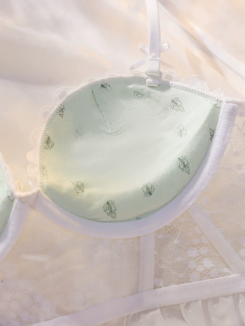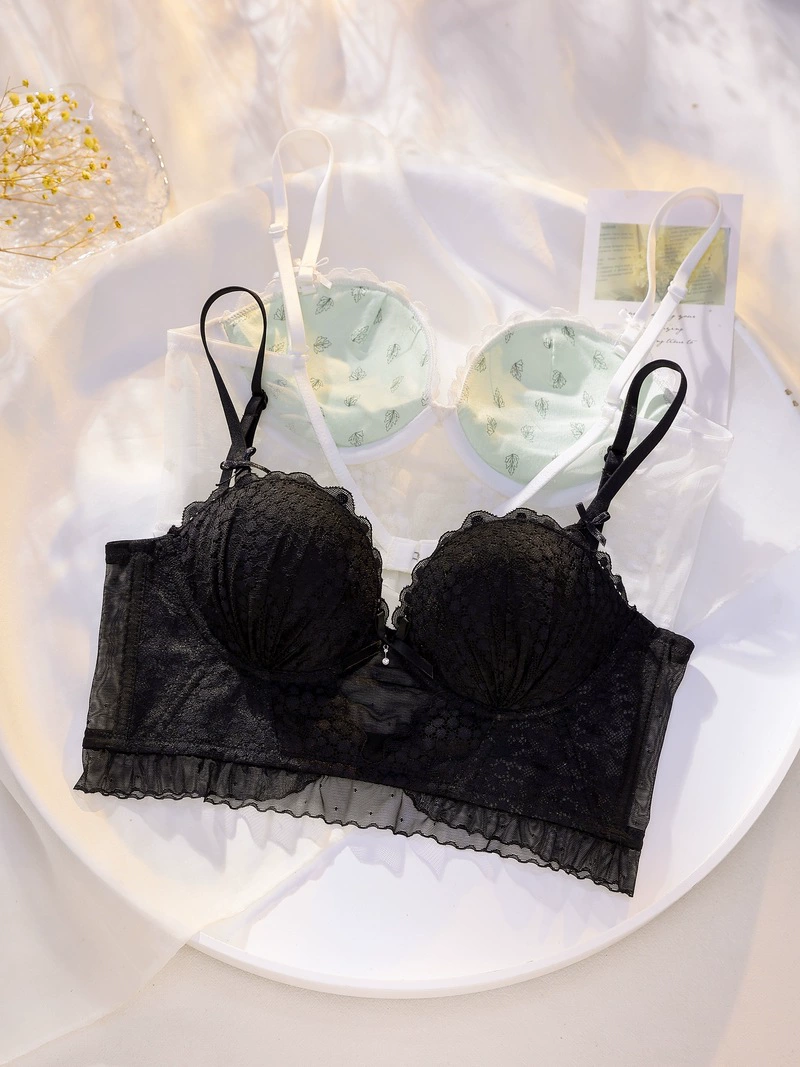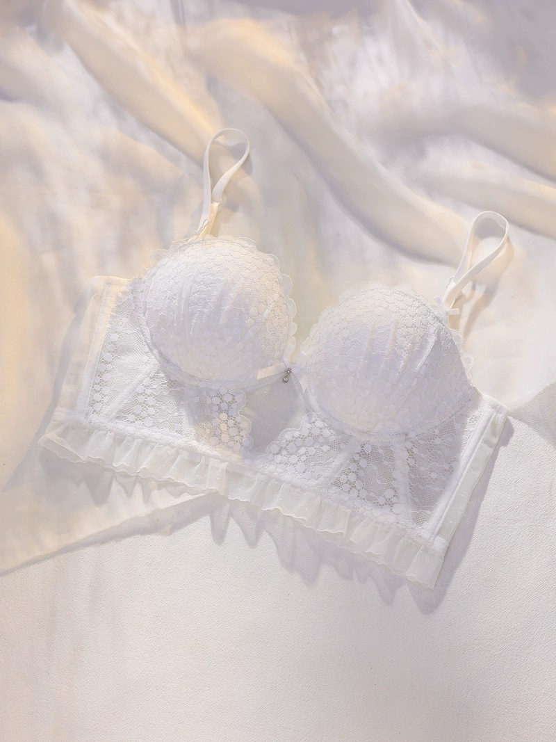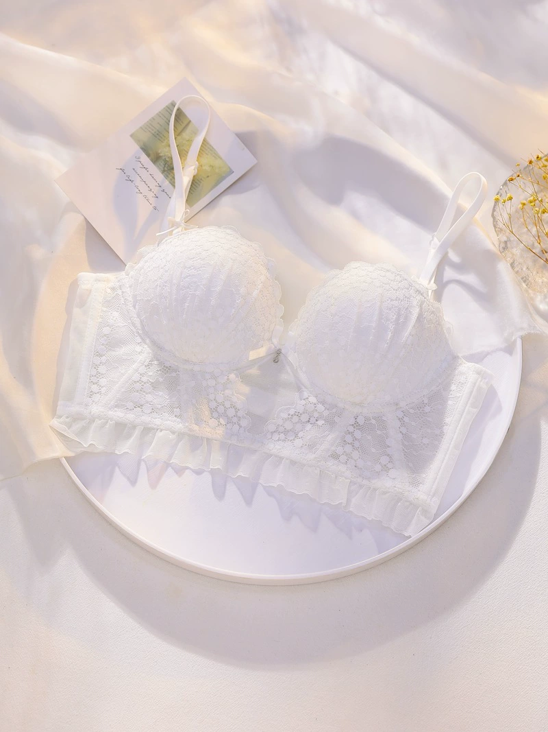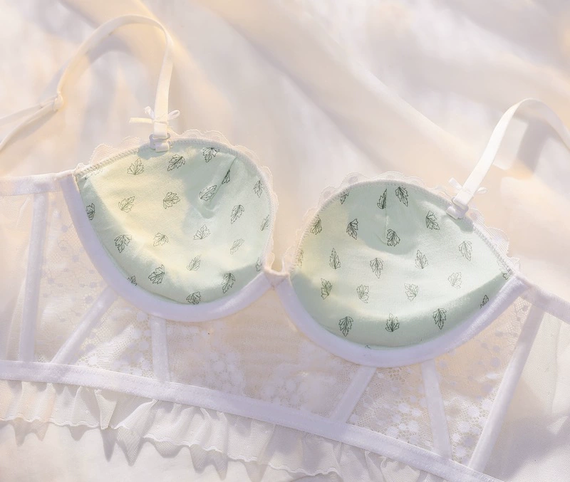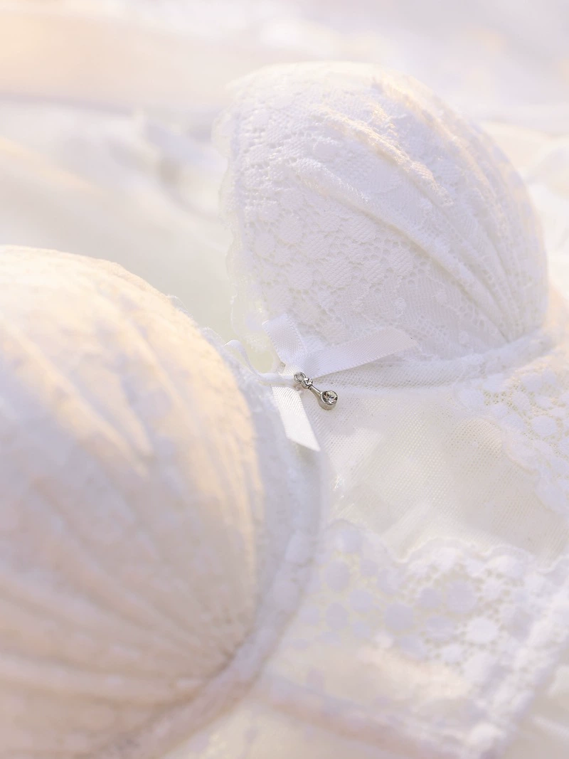 Sexy big U beautiful back underwear wormwood warm cup comfortable lingerie with panty suit small chest gathered girl bra white