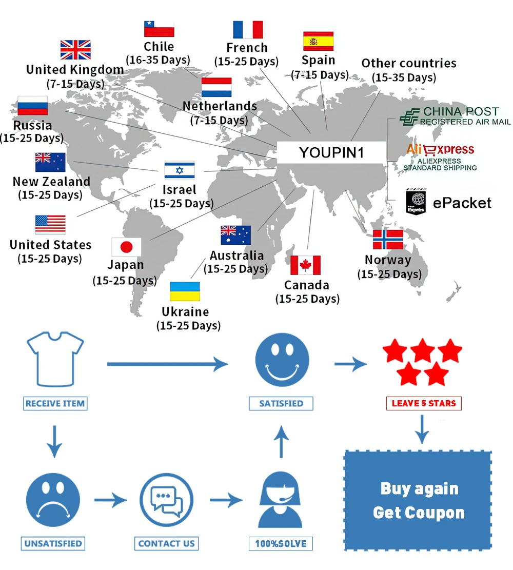• If you did not receive the product within the guaranteed time( 45 days not including 2-5 day processing) you can request a refund or a reshipment.