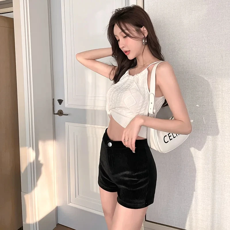 Sexy Black PU Fashion Casual Summer Shorts Women Clothing Faux Leather Goth High Waisted Womens Shorts Y2k Hot Woman Short Pants
