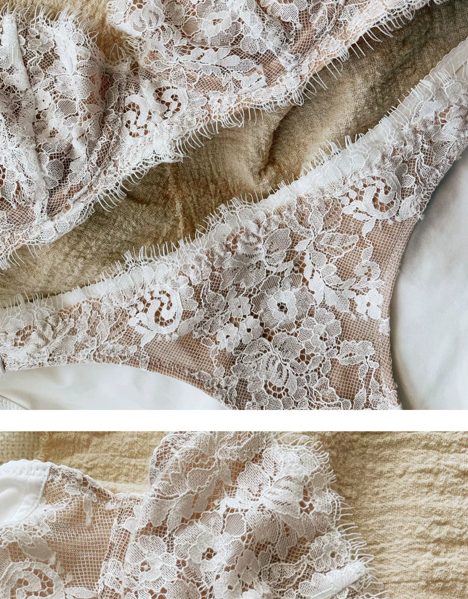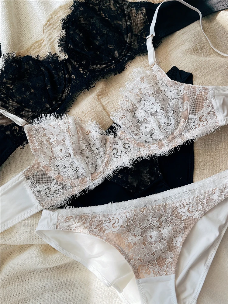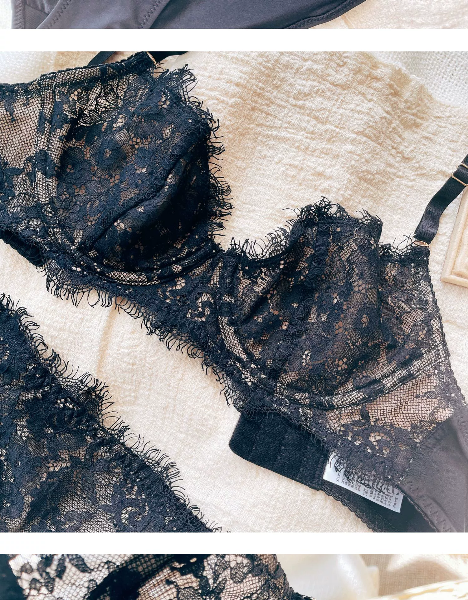 sexy gathering lingerie set steel ring upper support underwear set bra ultra-thin eyelashes lace girl soft big breasts bralette
