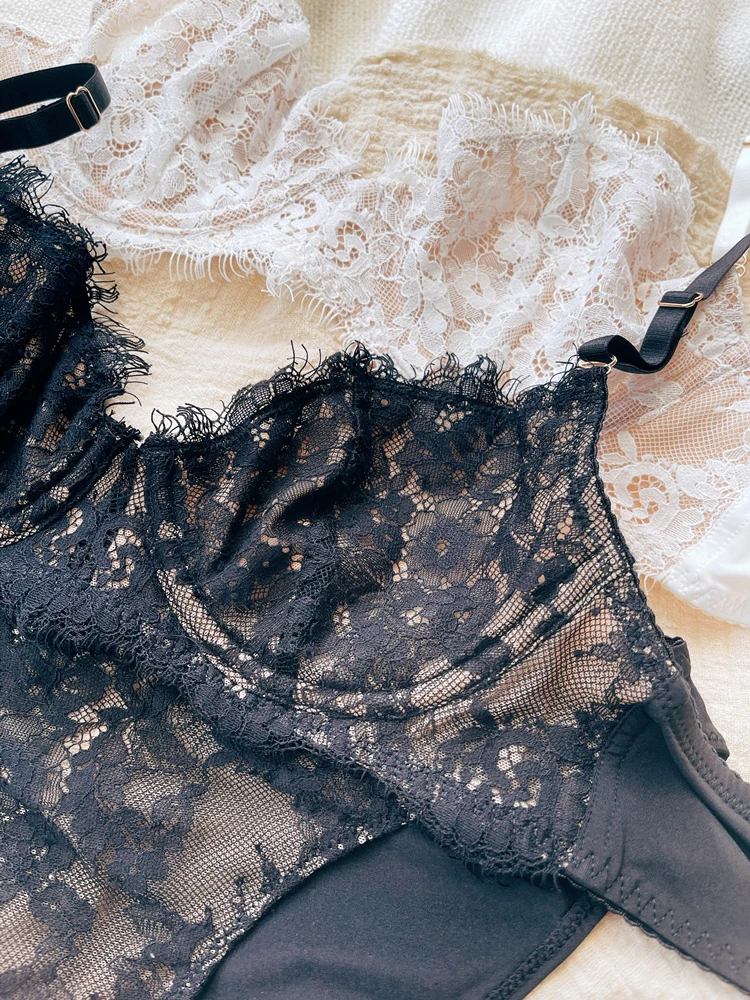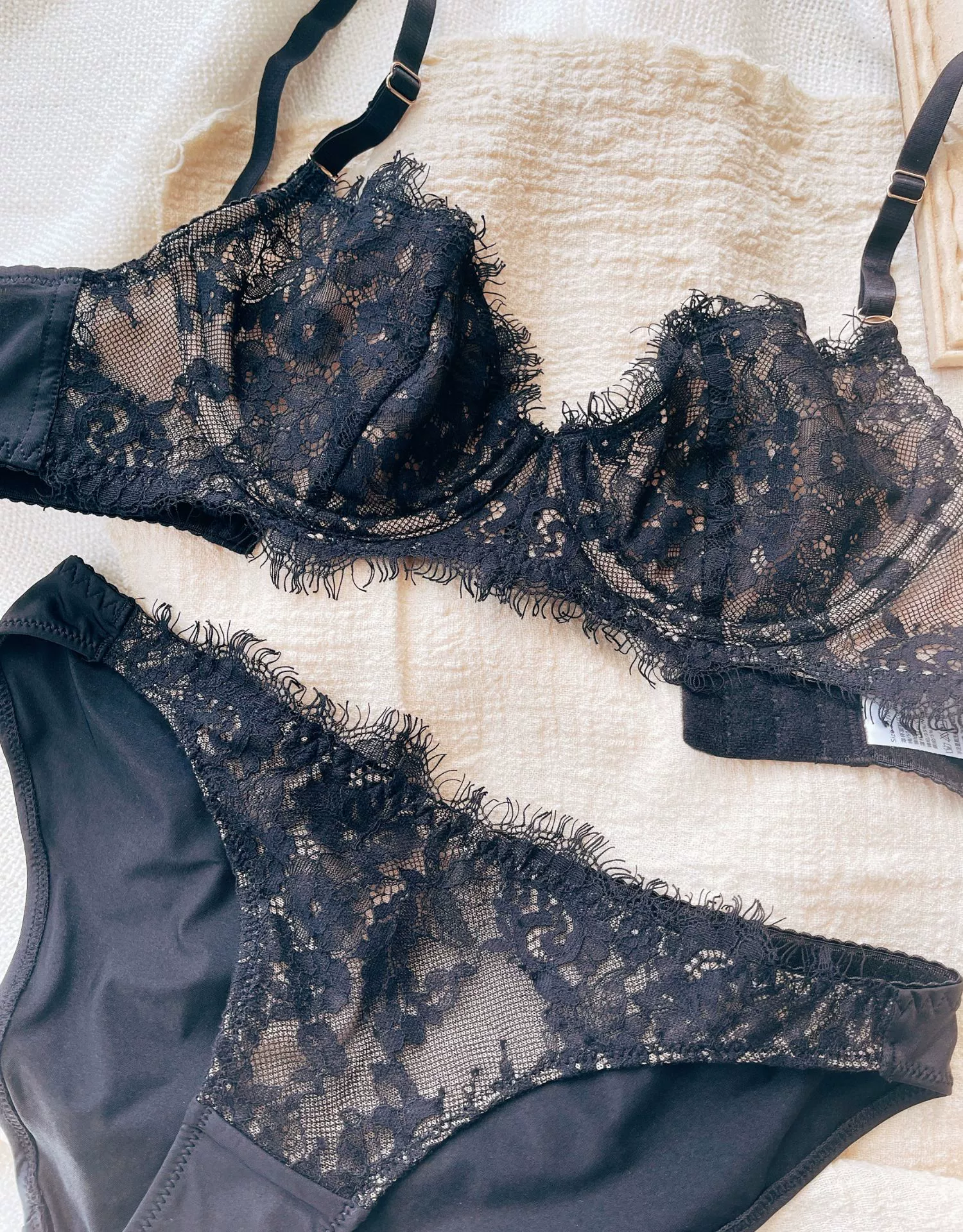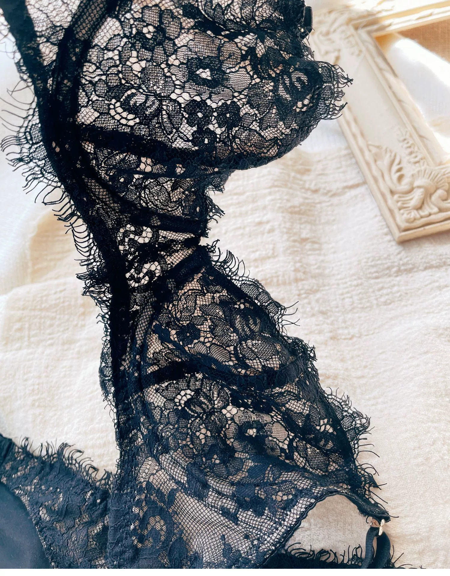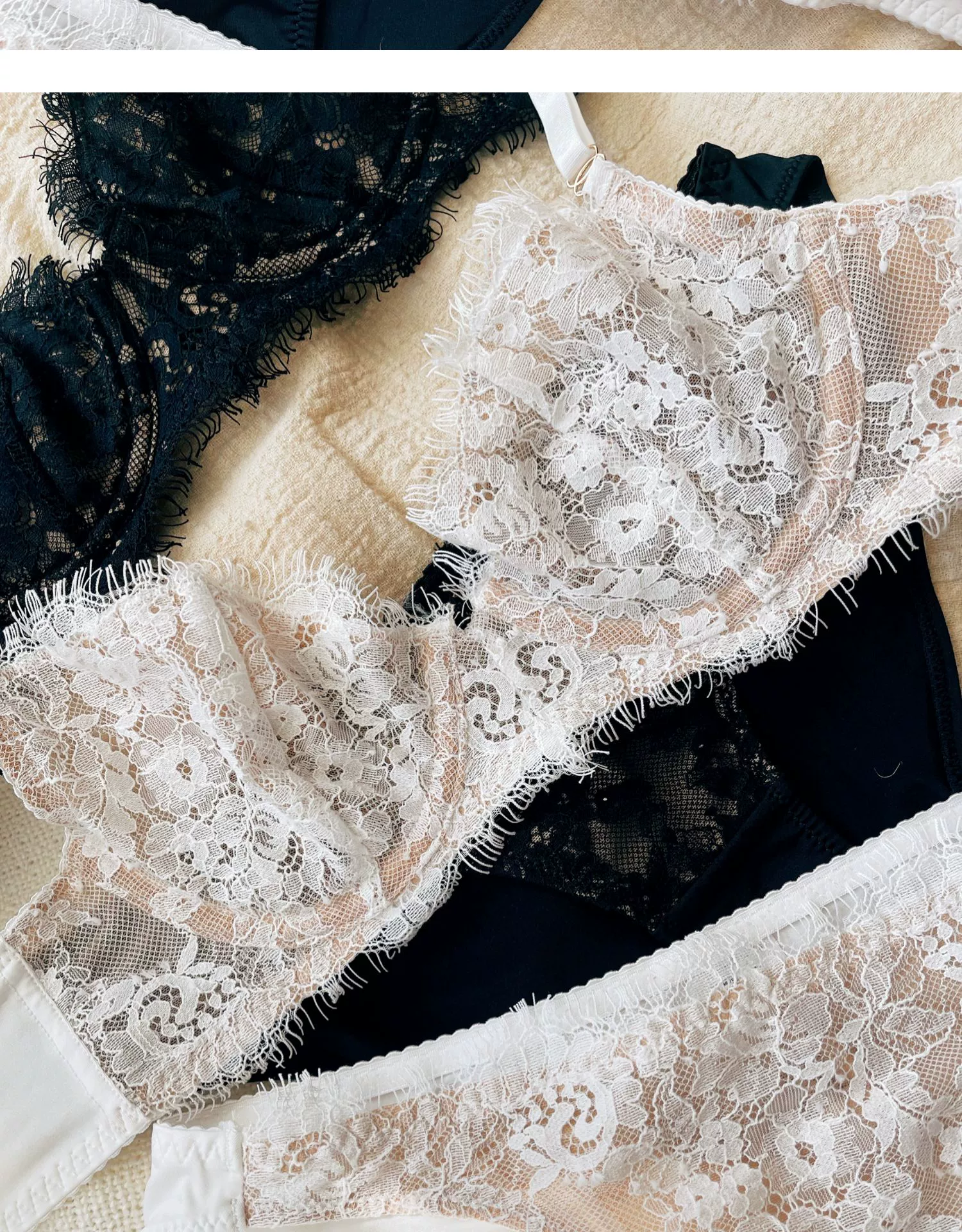 sexy gathering lingerie set steel ring upper support underwear set bra ultra-thin eyelashes lace girl soft big breasts bralette