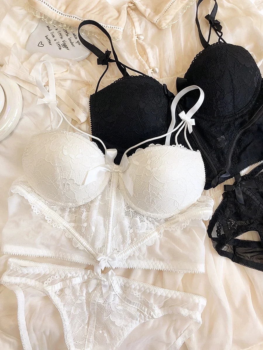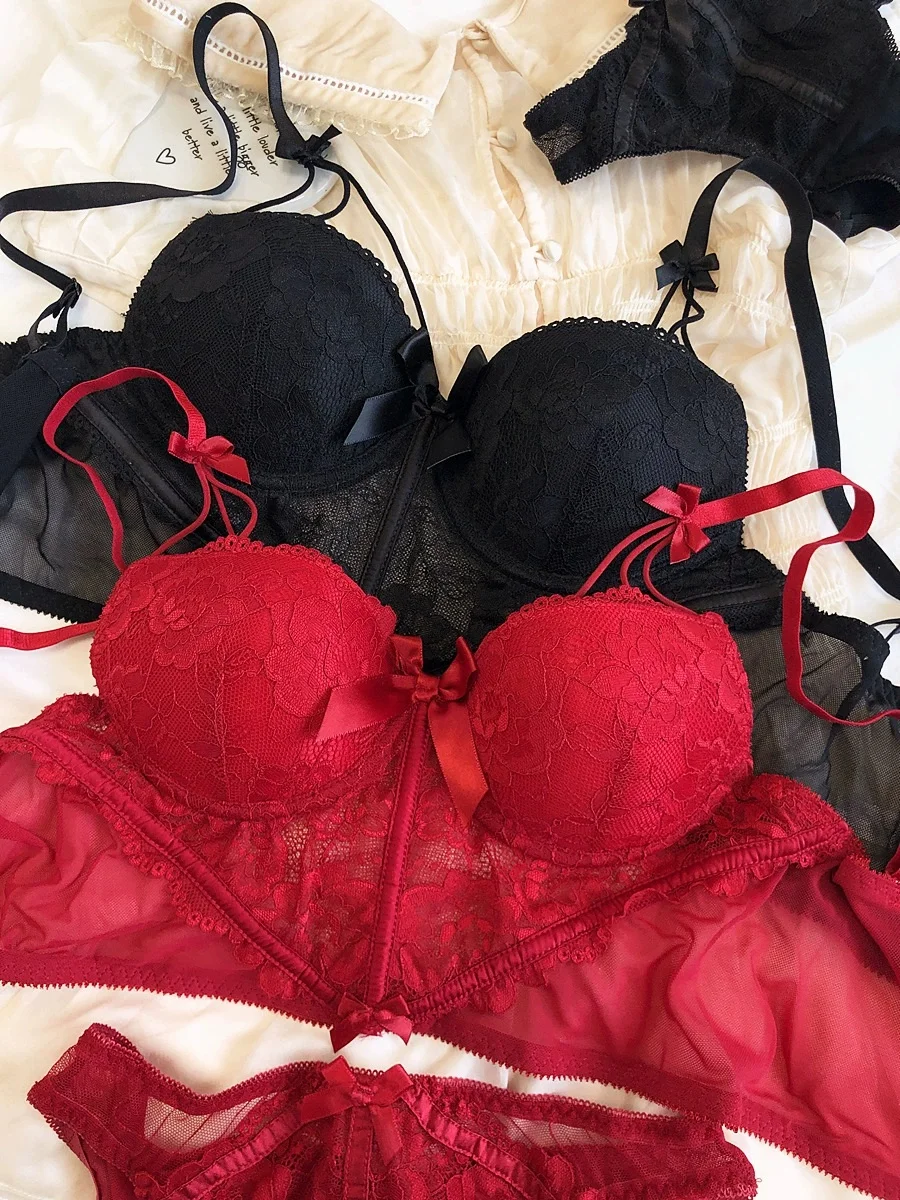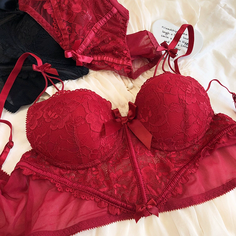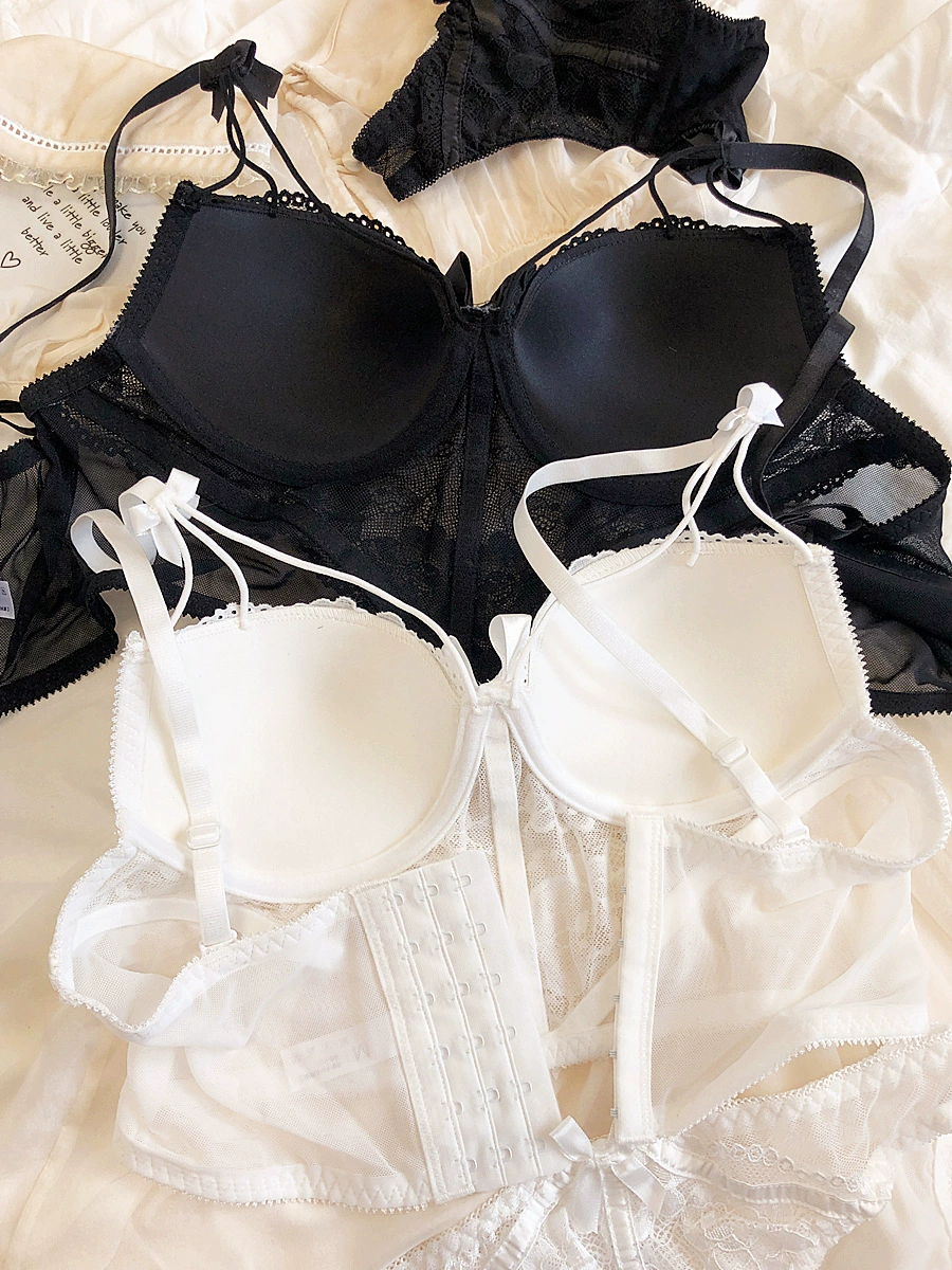 Sexy lengthened vest type underwear set soft steel ring on thin under thick gathering show big bra pure desire lace lingerie
