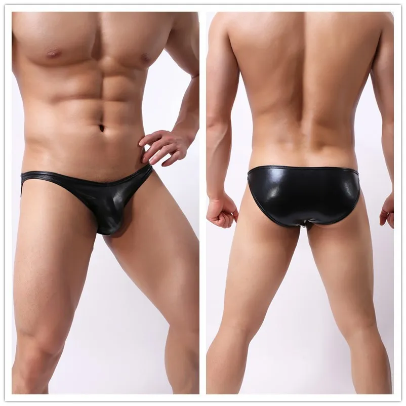 Sexy Men’s underwear Male Personality patent leather PU Low-Rise U convex briefs Man comfortable imitation leather underpants