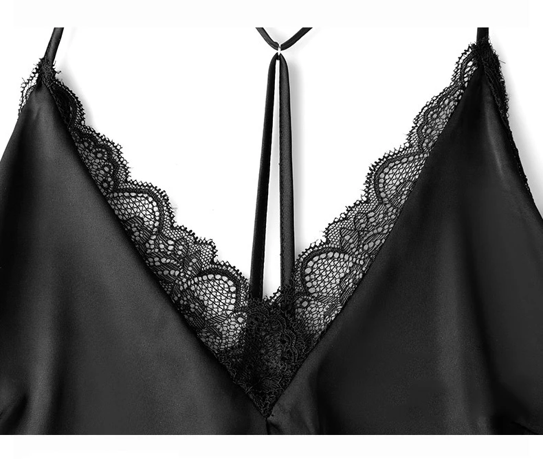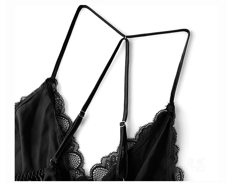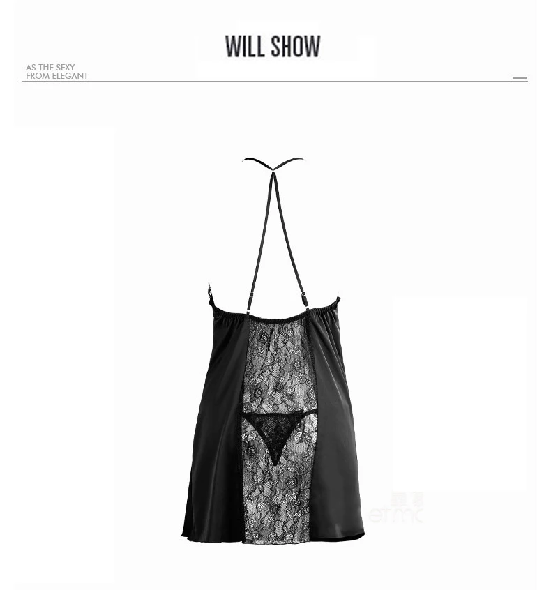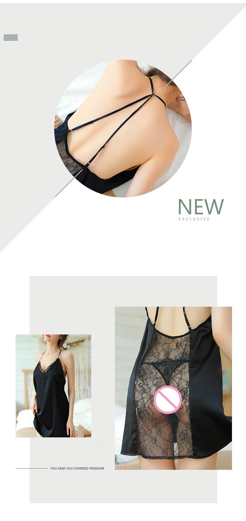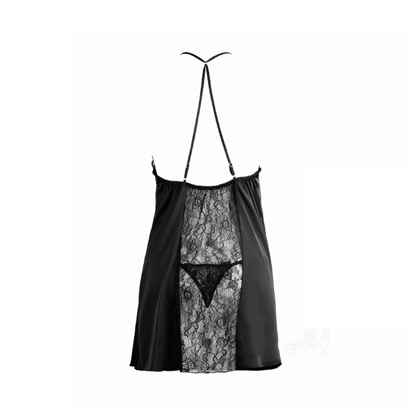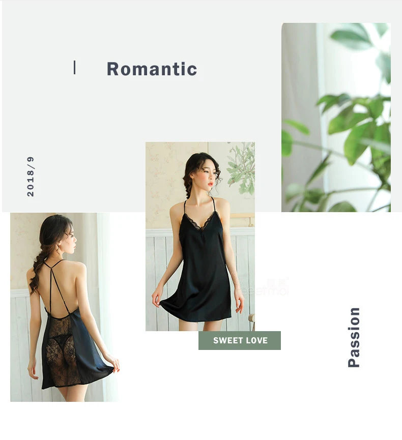 Sexy mousse underwear women’s deep V sling milk simulation silk nightdress passion set supplies perspective lace pajamas sloth