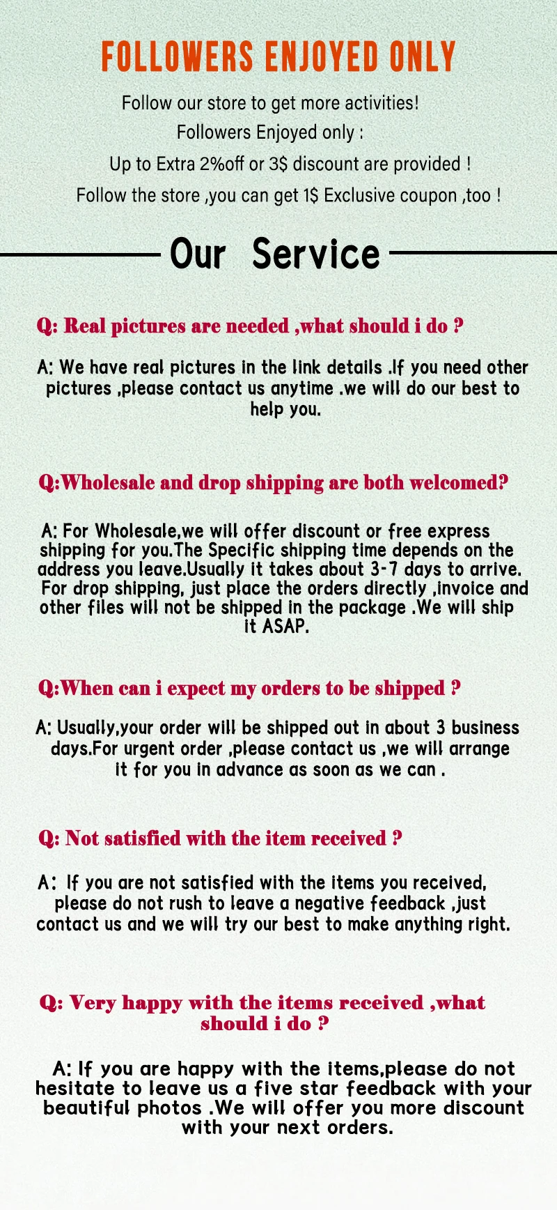Note: 1 inch=2.54 cm Size mearsured by ourselves ,so sometimes it has 1-3cm mistakes. Please check the size carefully before you buy ;if you are not sure about size,please contact us first .Thanks!