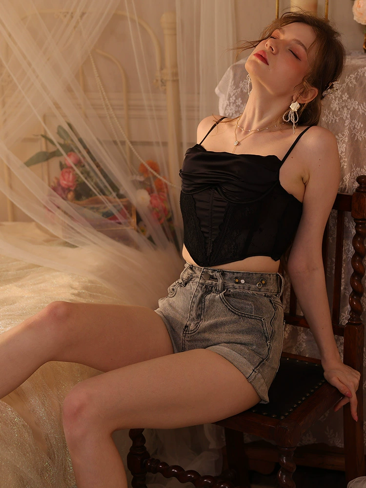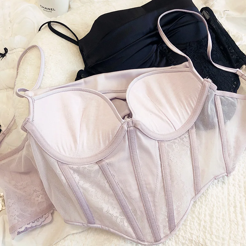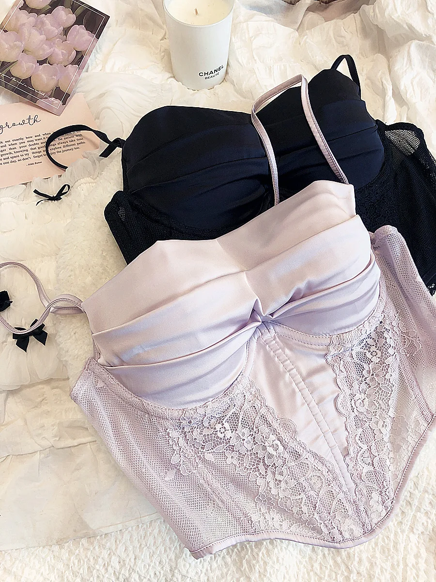 Sexy satin vest underwear with steel ring gathered thin can be worn outside fishbone inside hanging lingerie