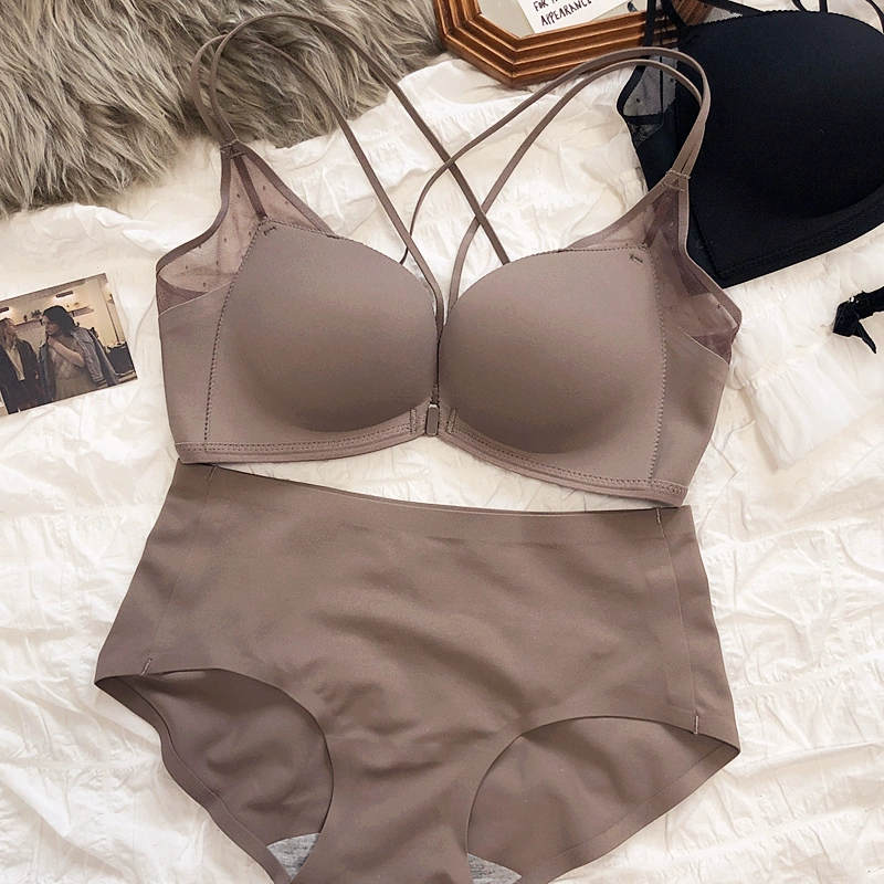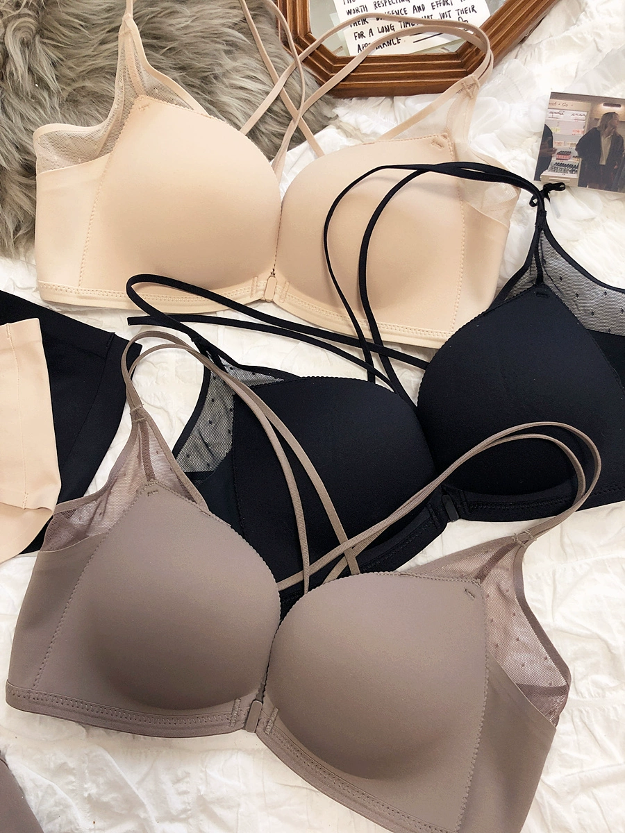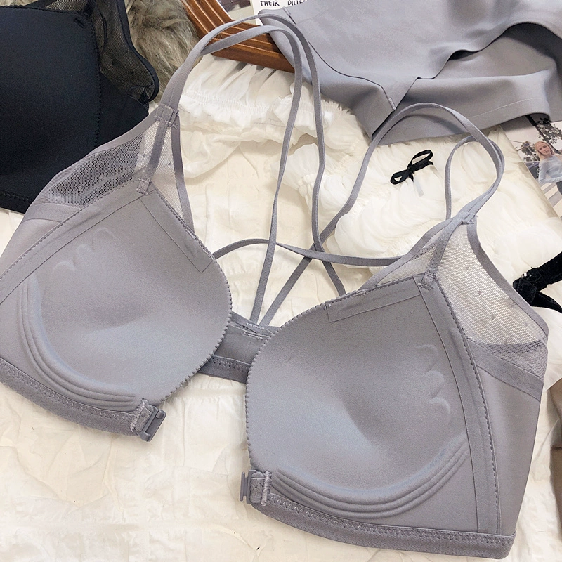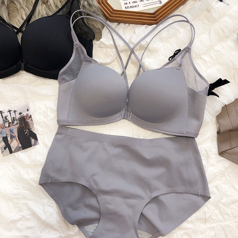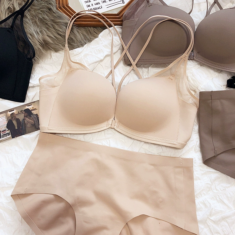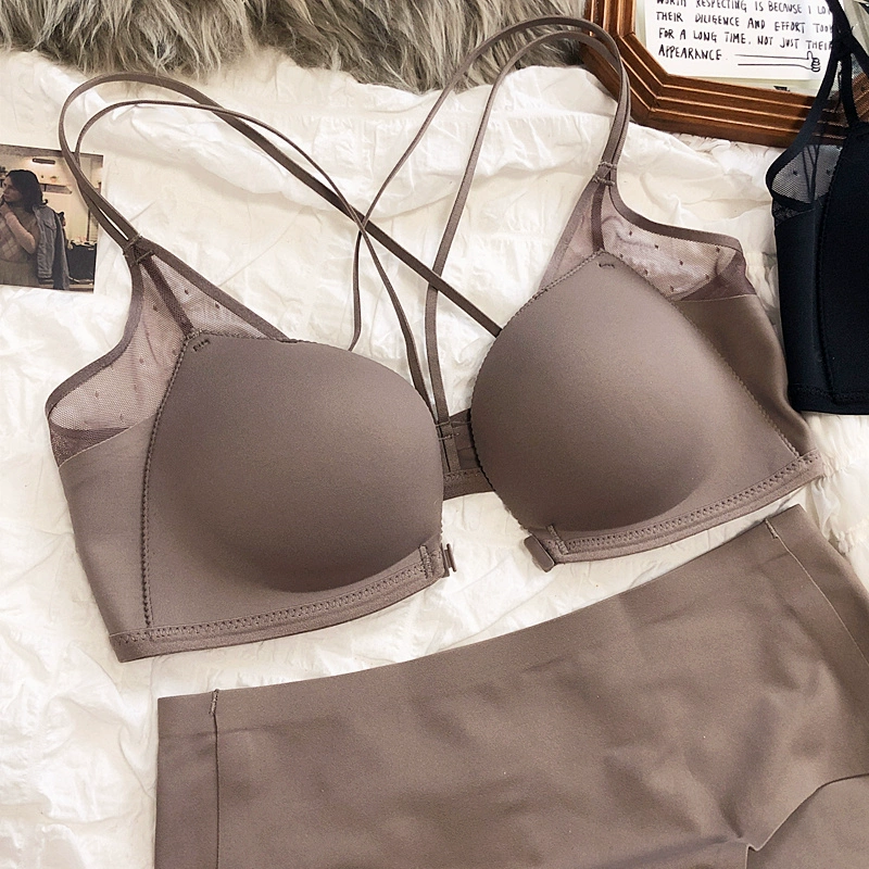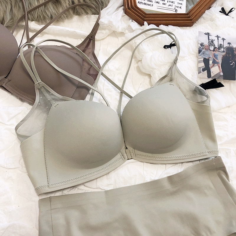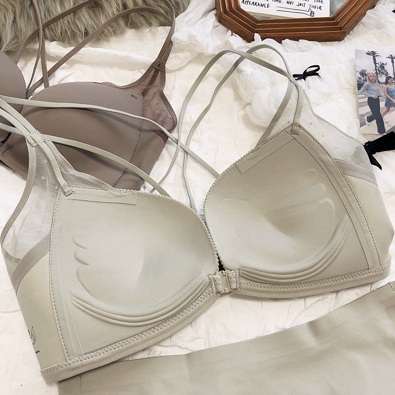 Sexy small breasts gathered on the thin under the thick underwear set bra simple wirefree beautiful back front buckle lingerie