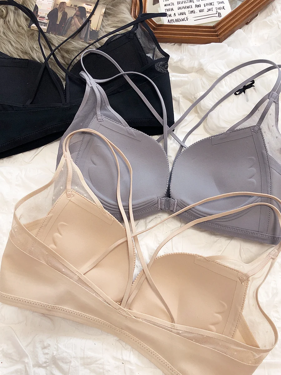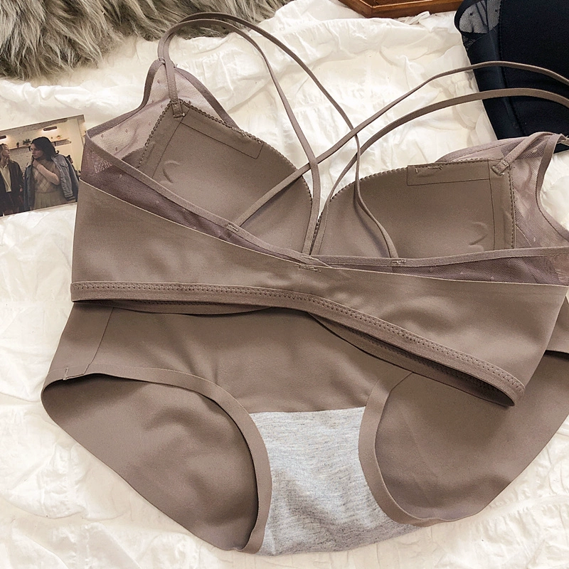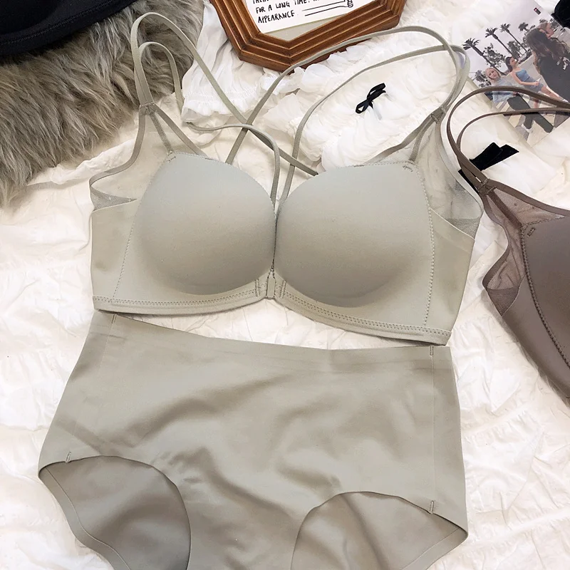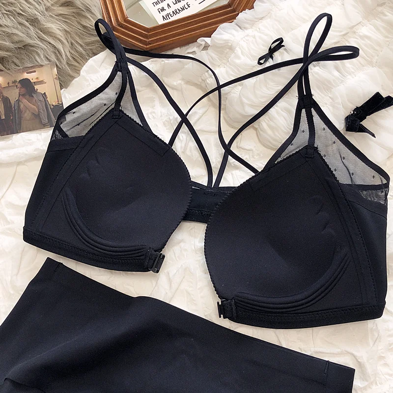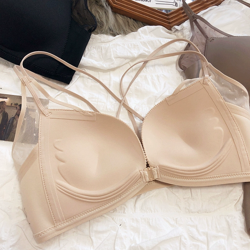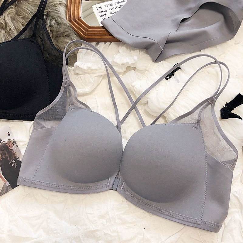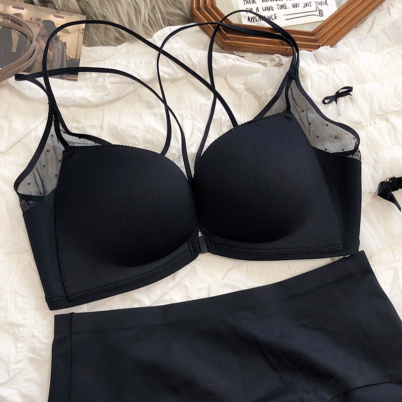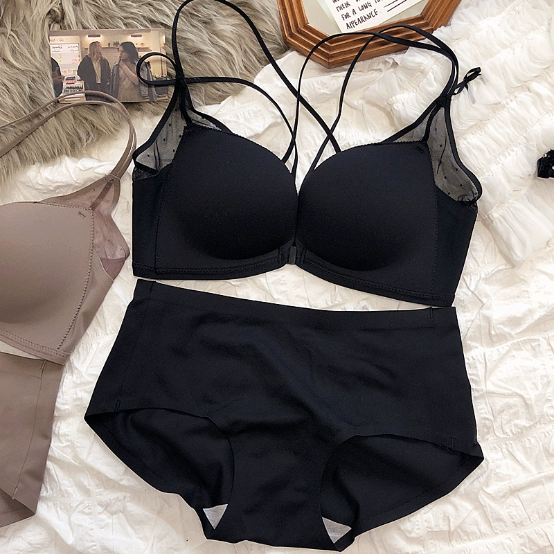 Sexy small breasts gathered on the thin under the thick underwear set bra simple wirefree beautiful back front buckle lingerie