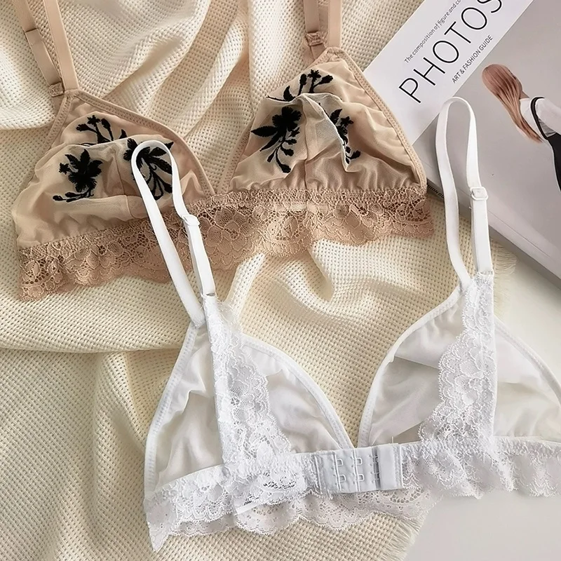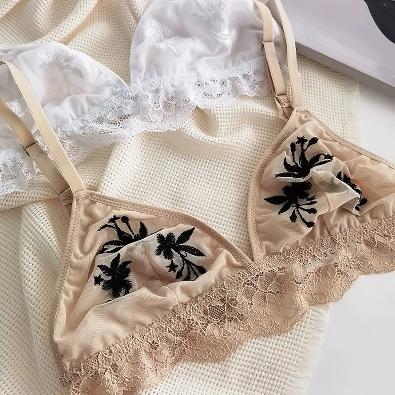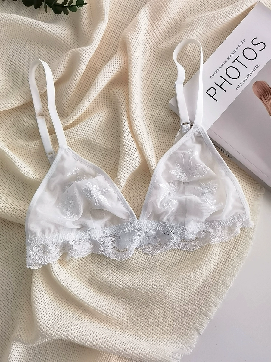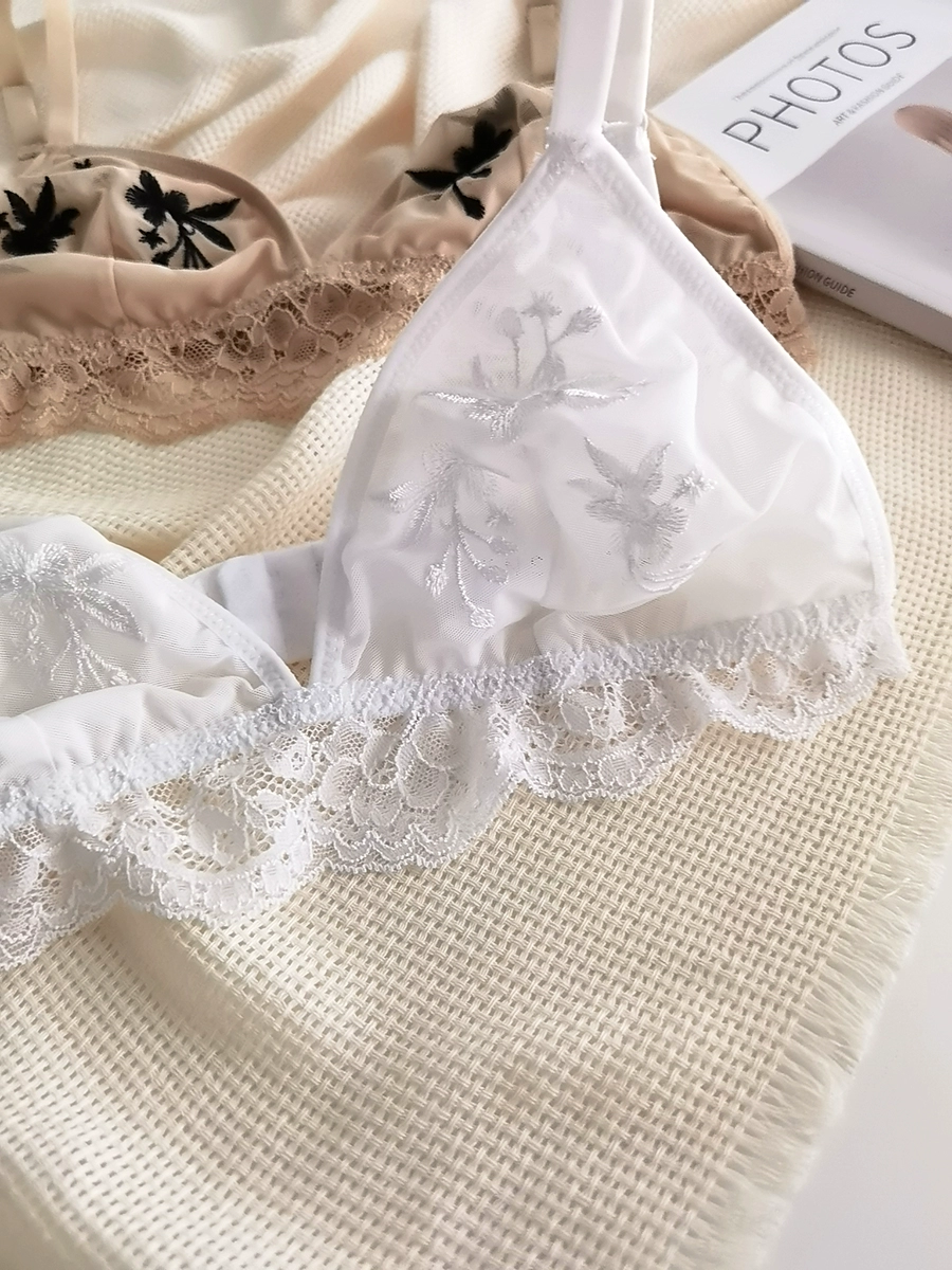 Sexy ultra-thin underwear mesh embroidered bra back thin white comfortable women lace lingerie