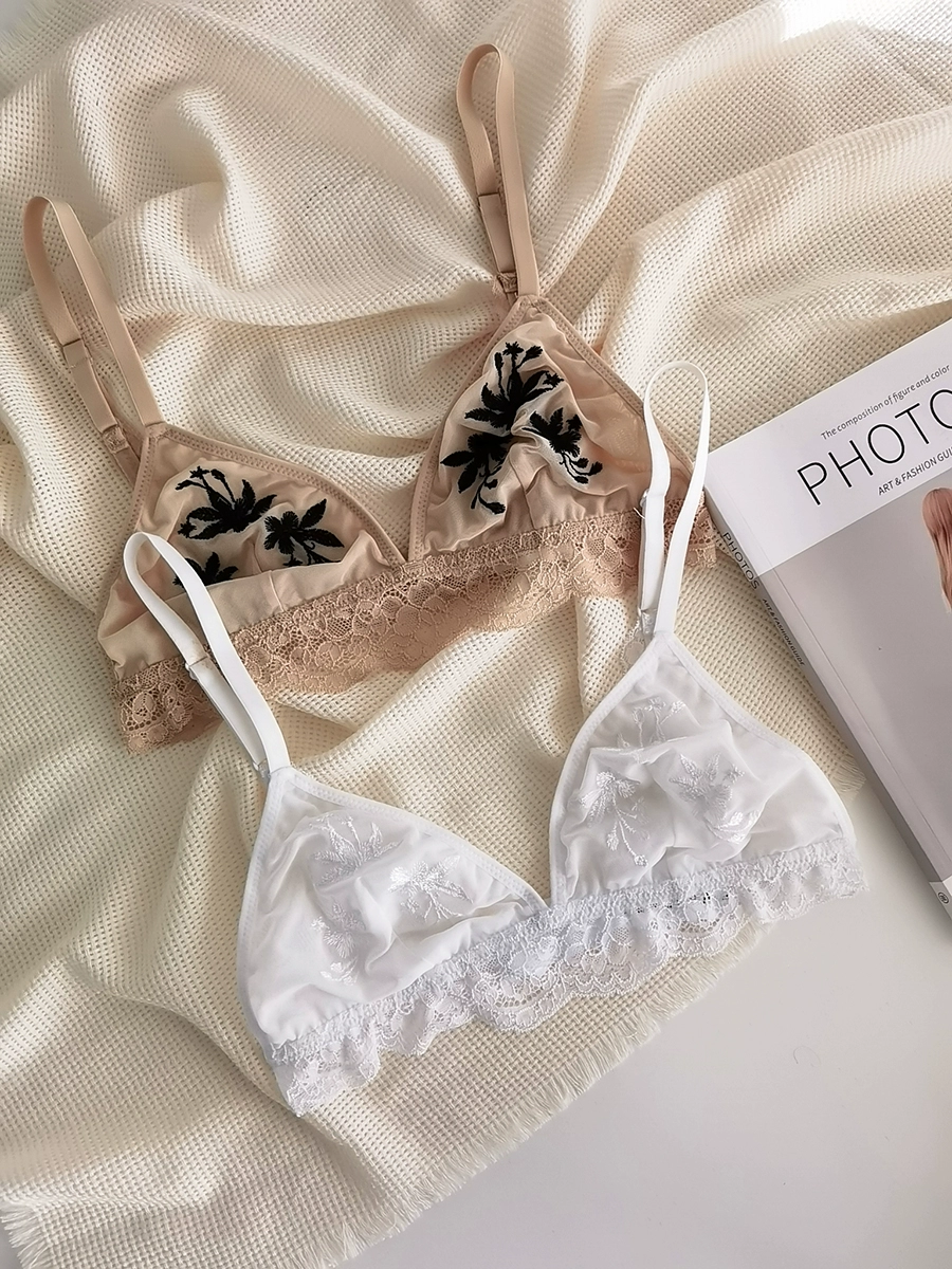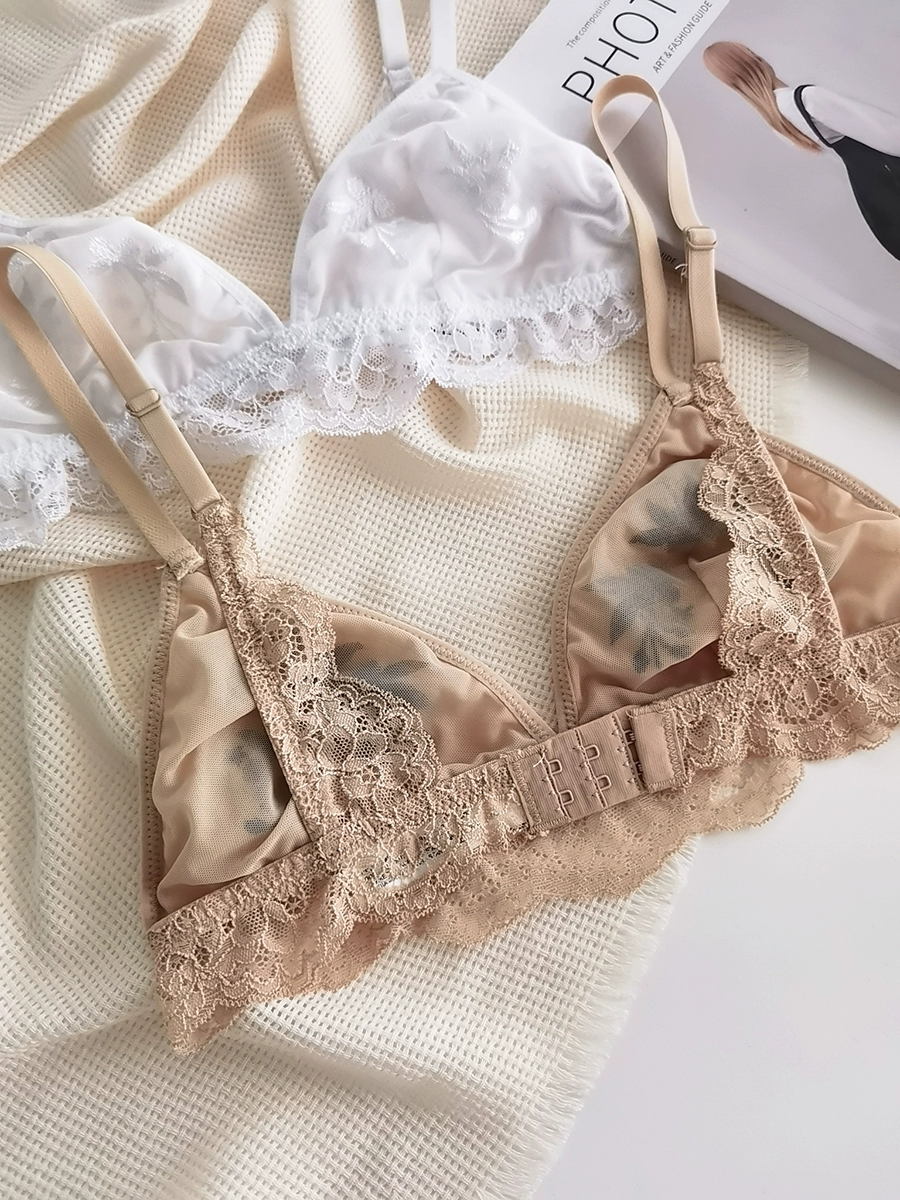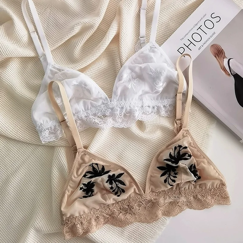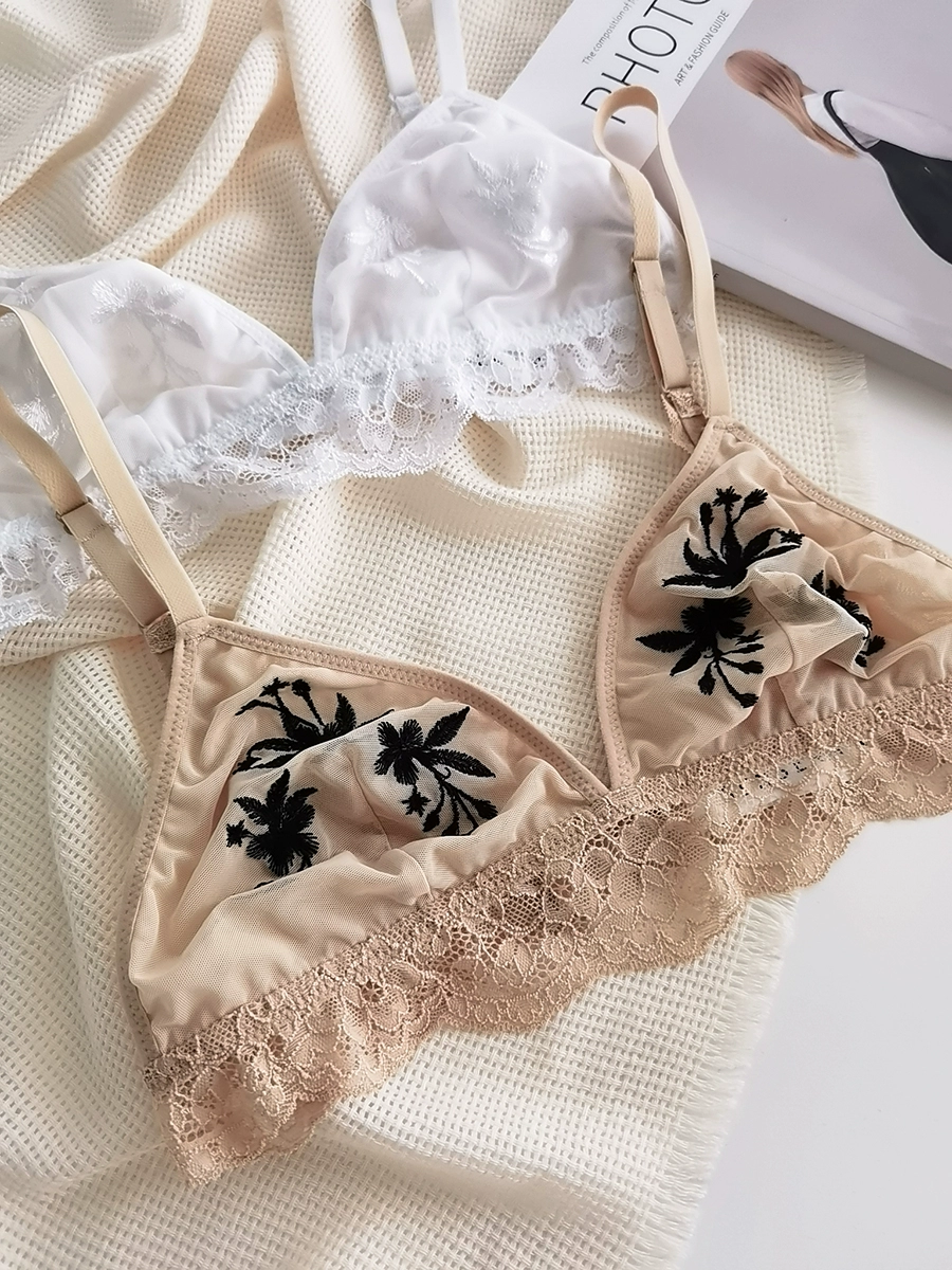 Sexy ultra-thin underwear mesh embroidered bra back thin white comfortable women lace lingerie