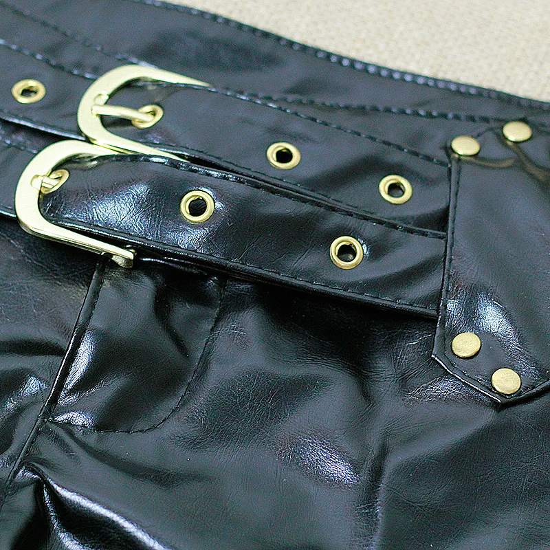 Sexy Women Shiny Faux Leather Hot Shorts Double Sashes Low Rise Waist Micro MINI Shorts With Zipper Open Exotic Culb Wear F33