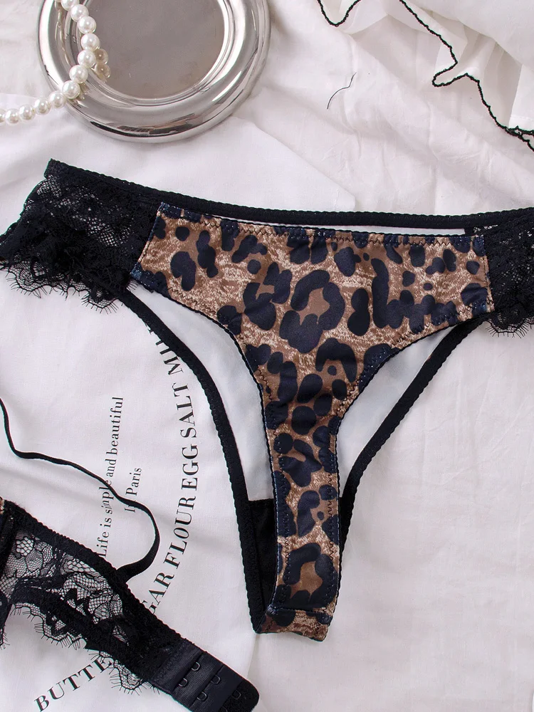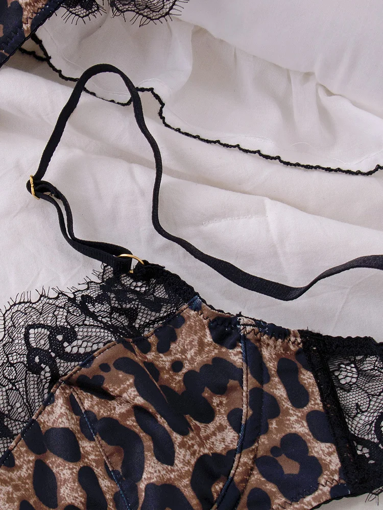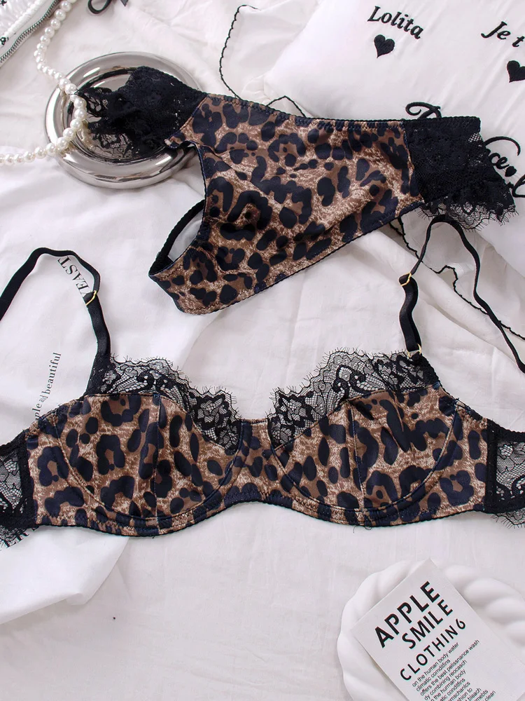 Sexy women ultra-thin underwear large chest push up lace mesh girls leopard print bra set ladies large size lingerie